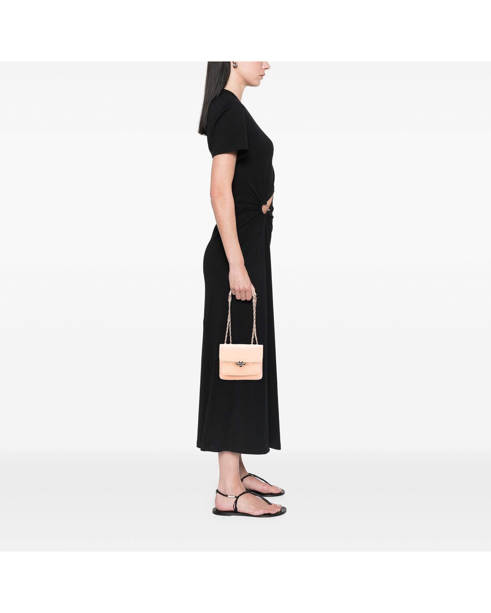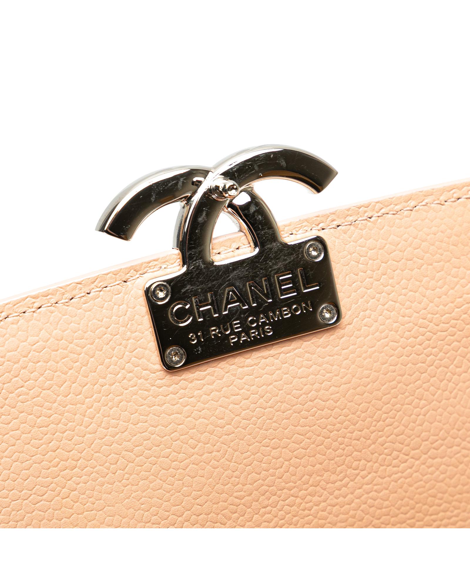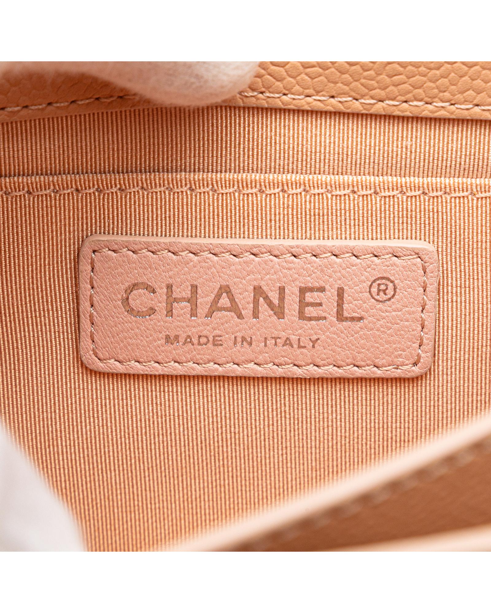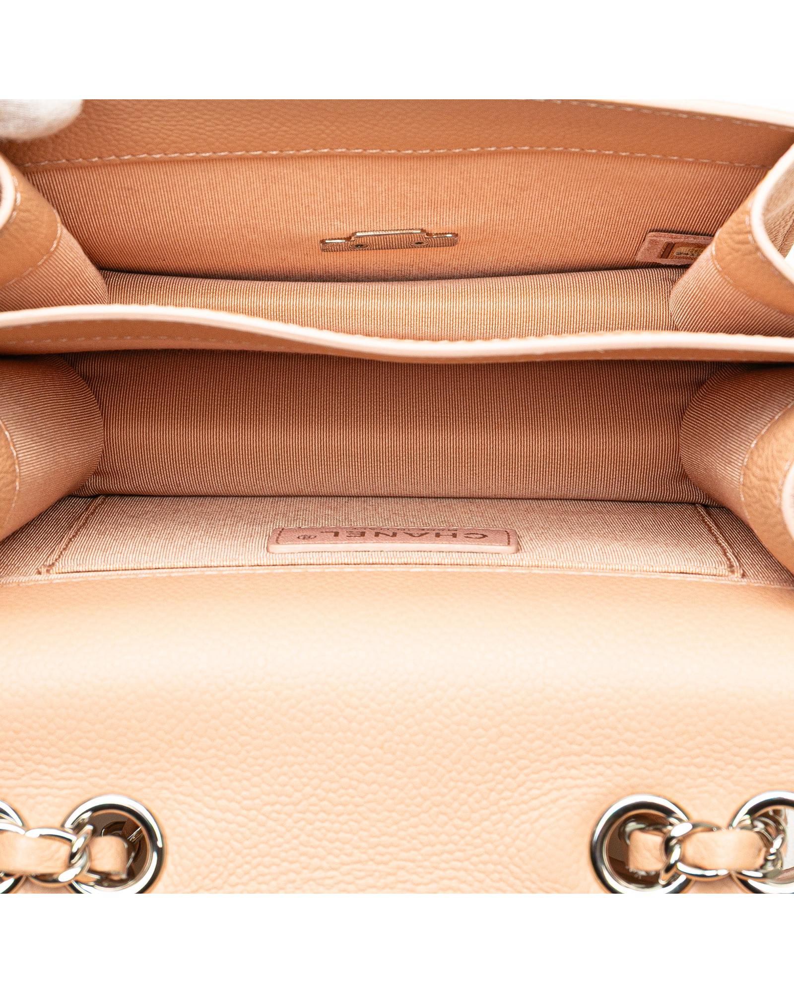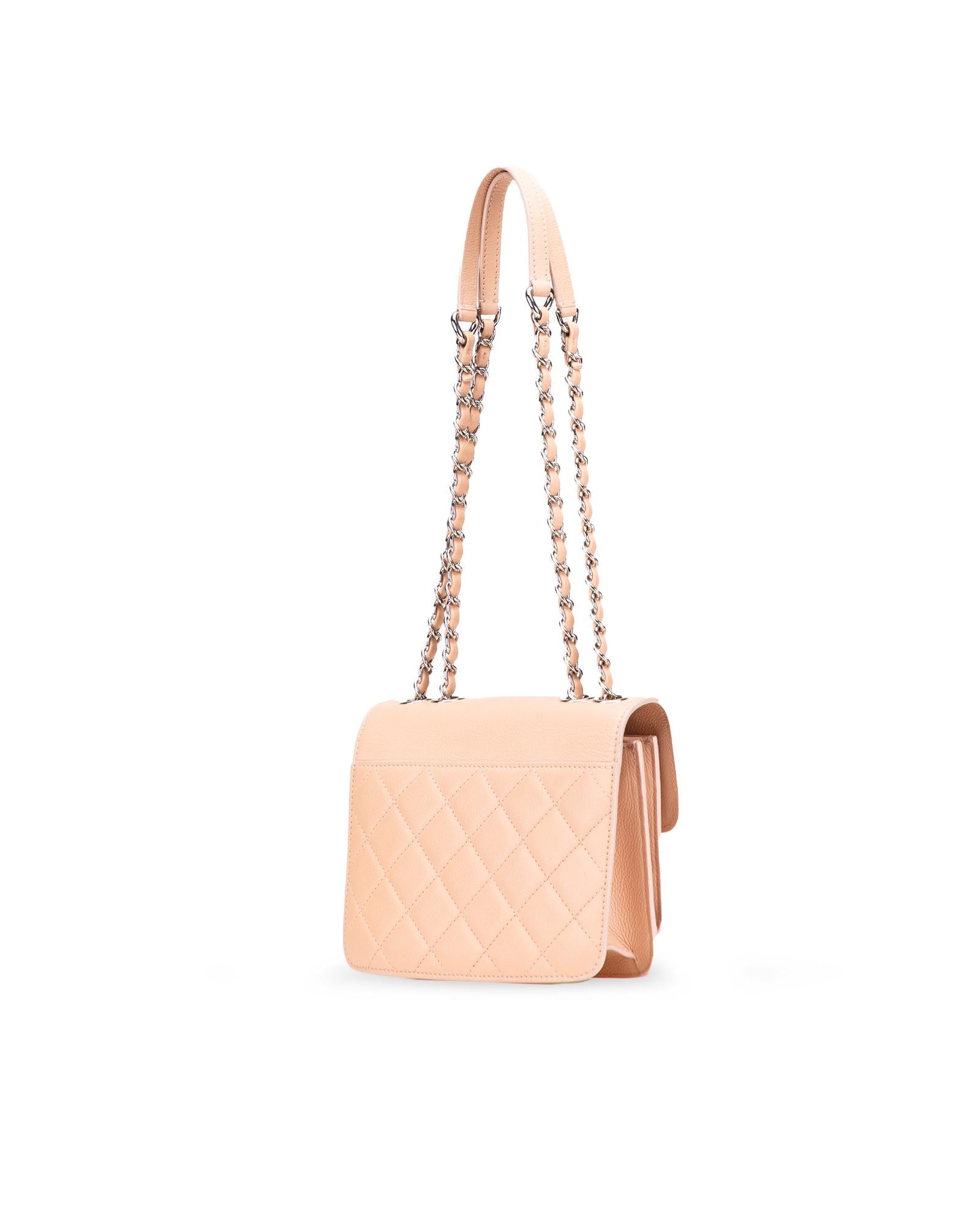 This shoulder bag features a quilted Caviar leather body leather woven chain straps with flat leather shoulder guards a front flap with metal lock closure and an interior slip pocket.Brand: Chanel Vintage