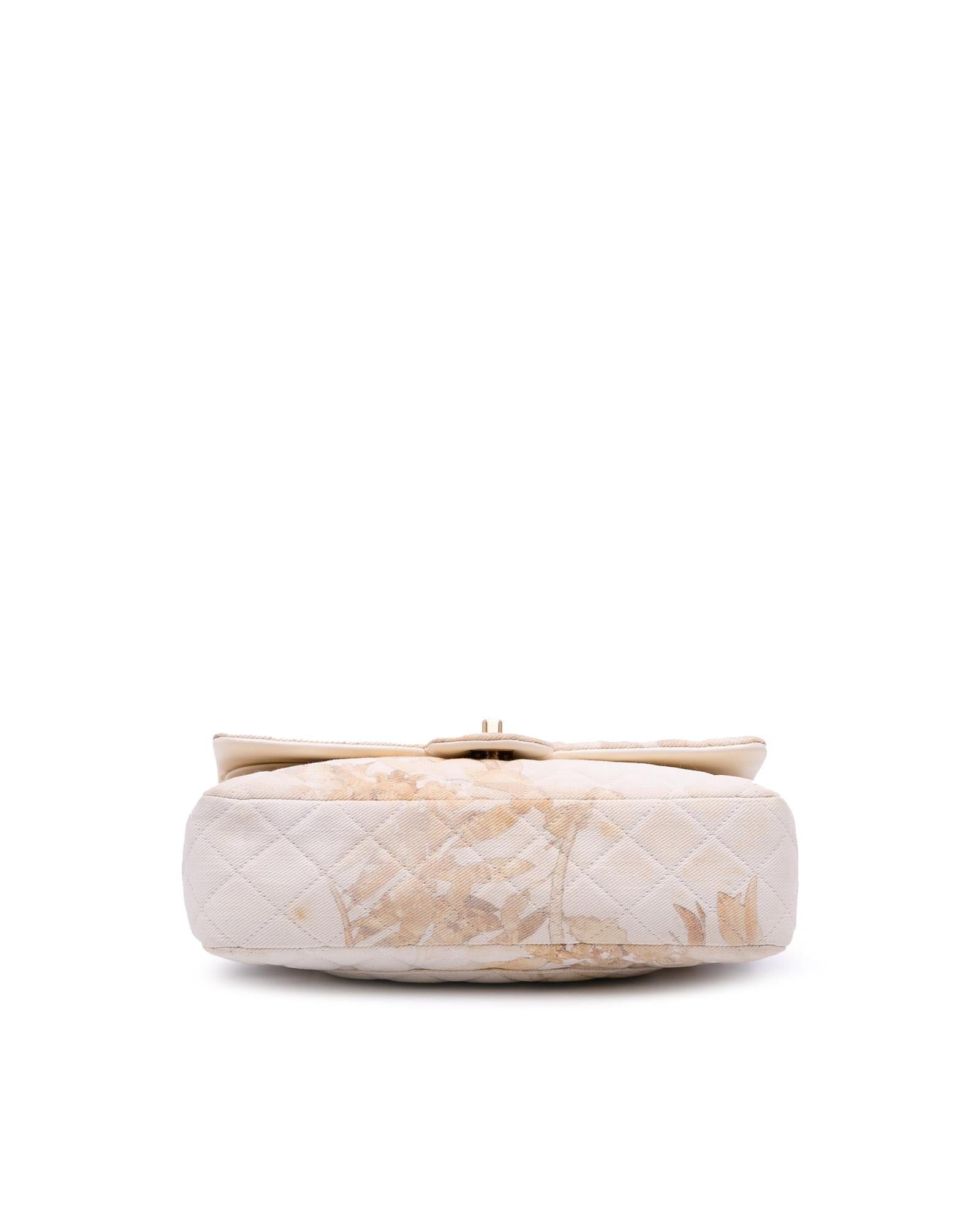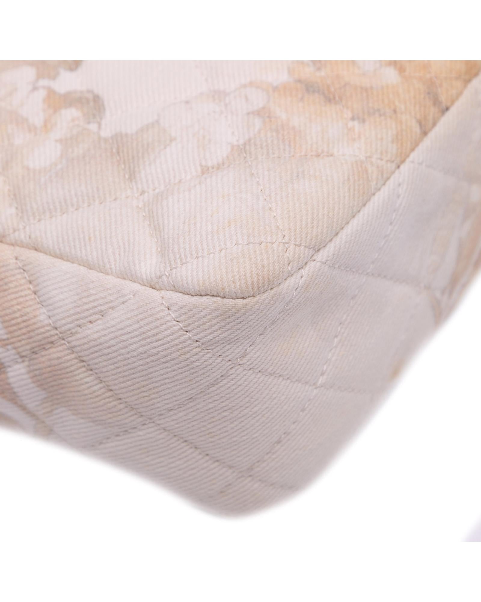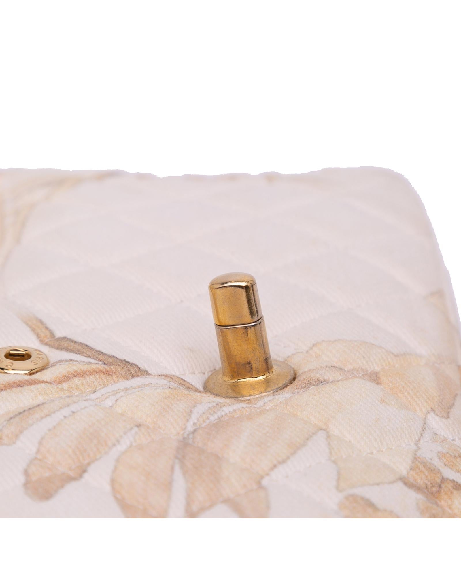 This shoulder bag features a floral printed denim body leather-woven chain shoulder straps double flaps with CC turn-lock closure an exterior back slip pocket and interior zip and slip pockets.Brand: Chanel Vintage