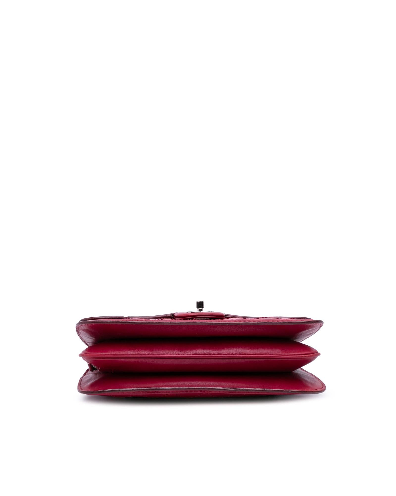 This crossbody bag features a quilted leather body a leather woven chain straps with leather guard a front flap with a CC twist lock closure an exterior back slip pocket and an interior zip pocket.Brand: Chanel Vintage