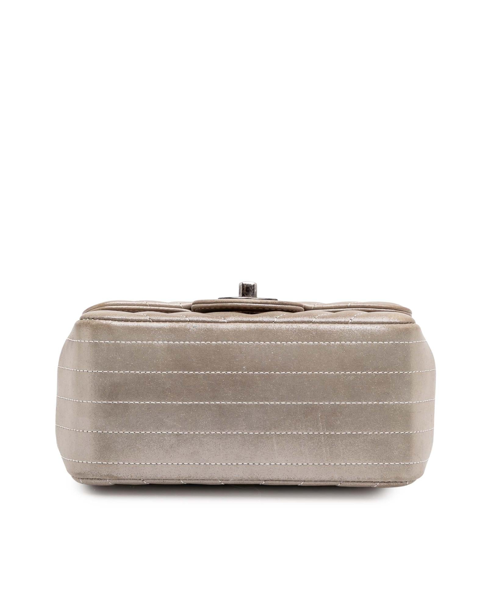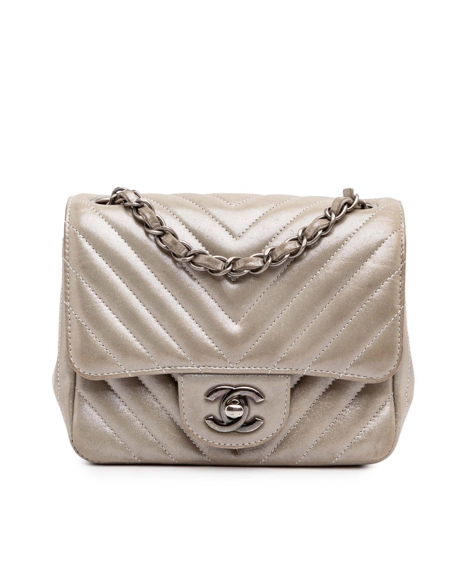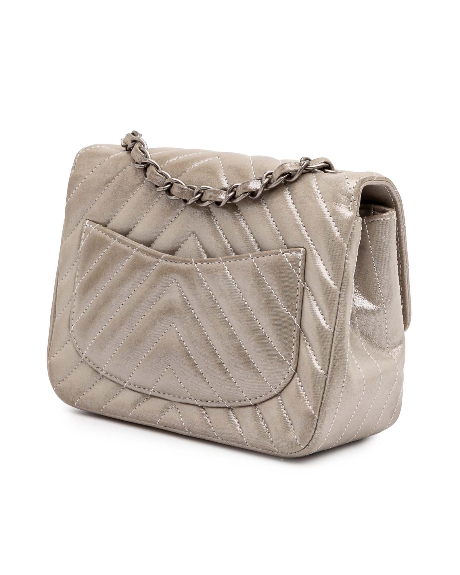 The Mini Chevron Classic Flap features a quilted leather body a leather woven chain strap a front flap with CC turn-lock closure an exterior back slip pocket and interior zip and slip pockets.Brand: Chanel Vintage