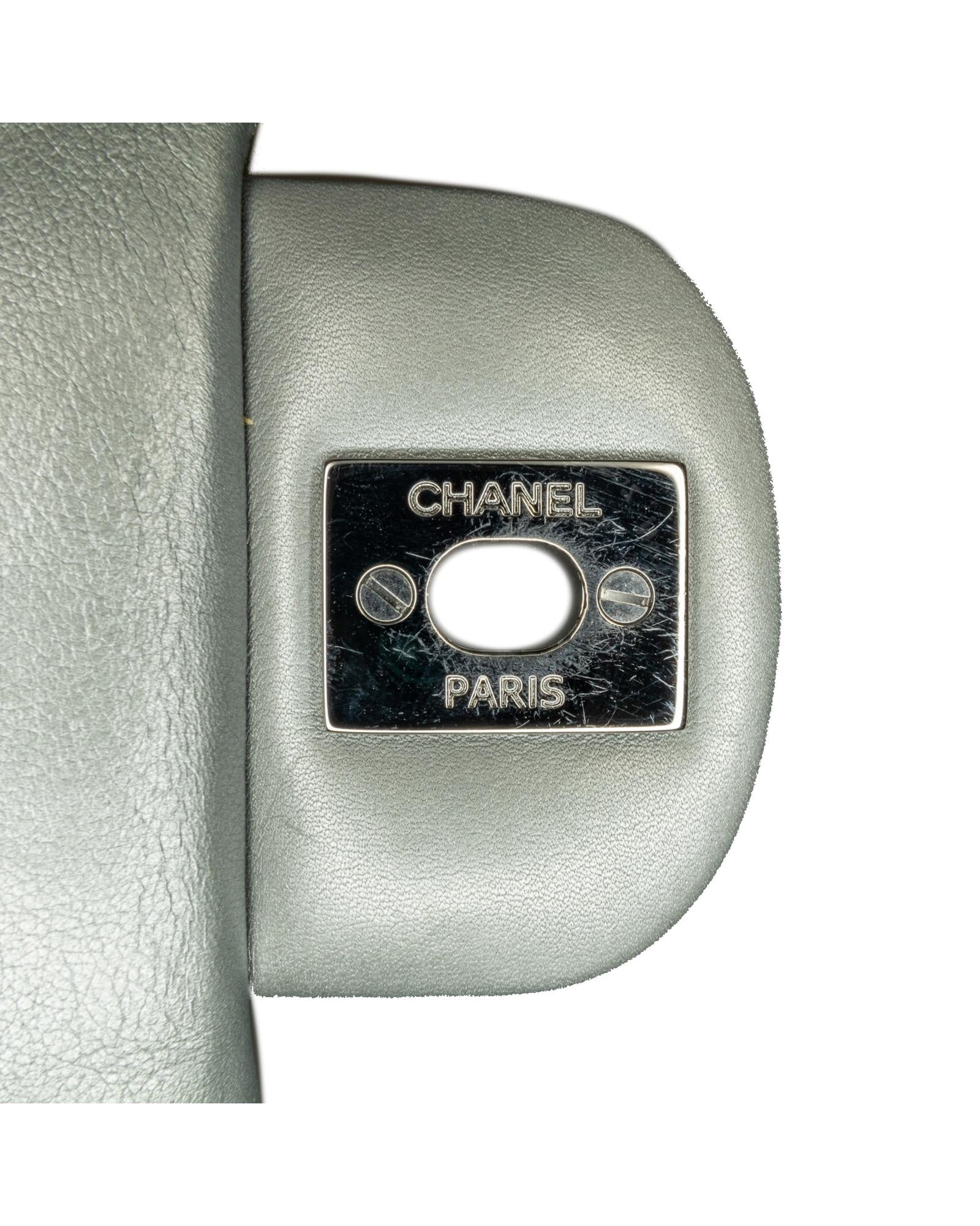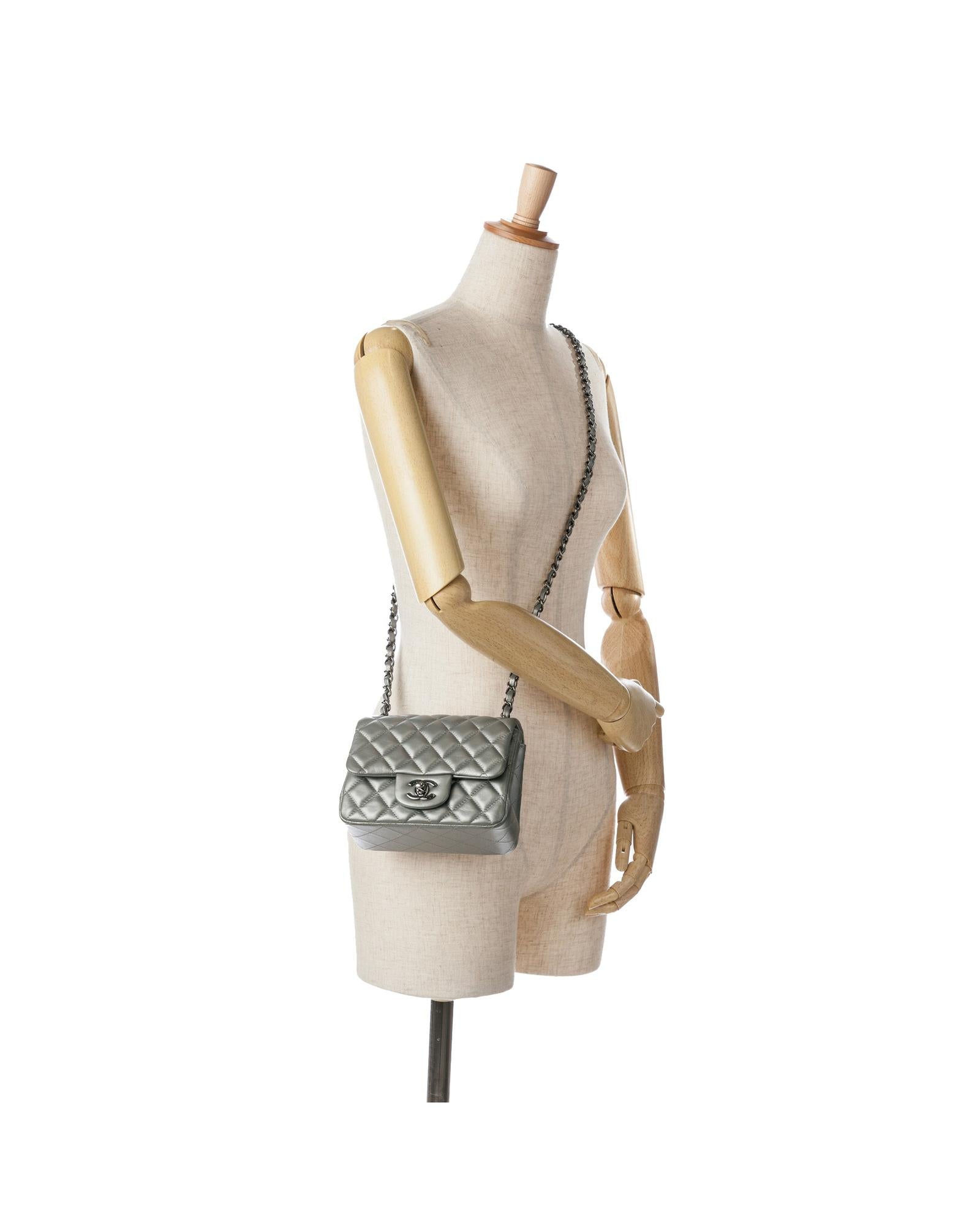 This crossbody features a quilted calfskin leather body a leather woven chain link shoulder strap a front flap with turn-lock closure an exterior back slip pocket and interior zip and slip pockets.Brand: Chanel Vintage