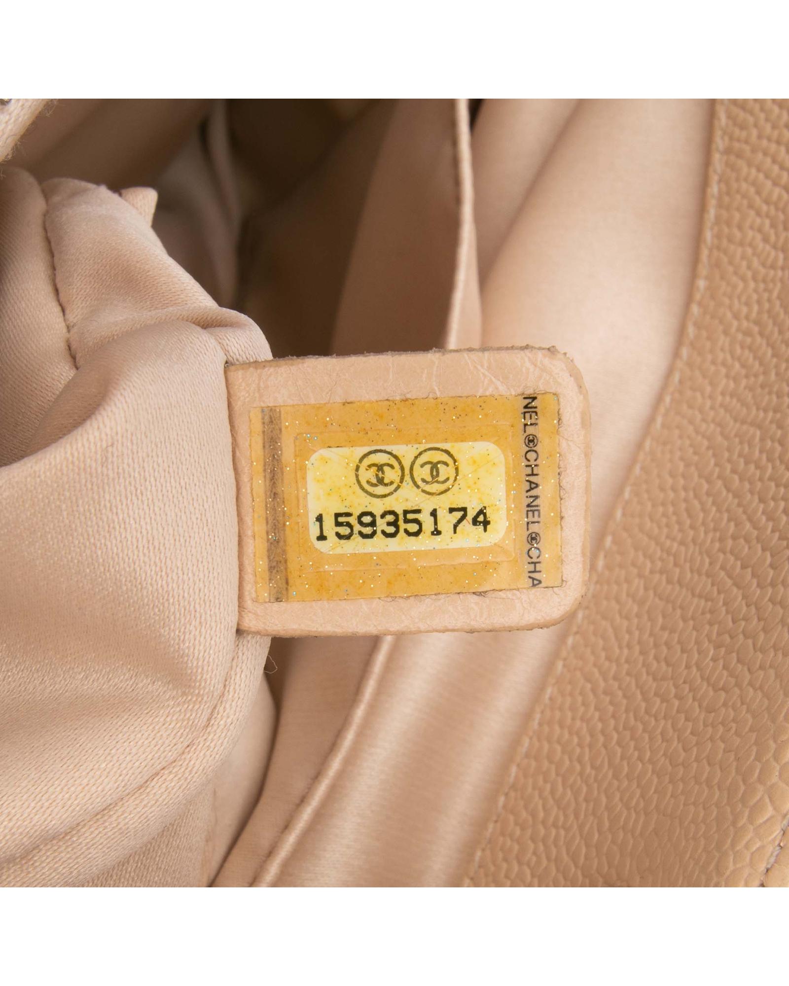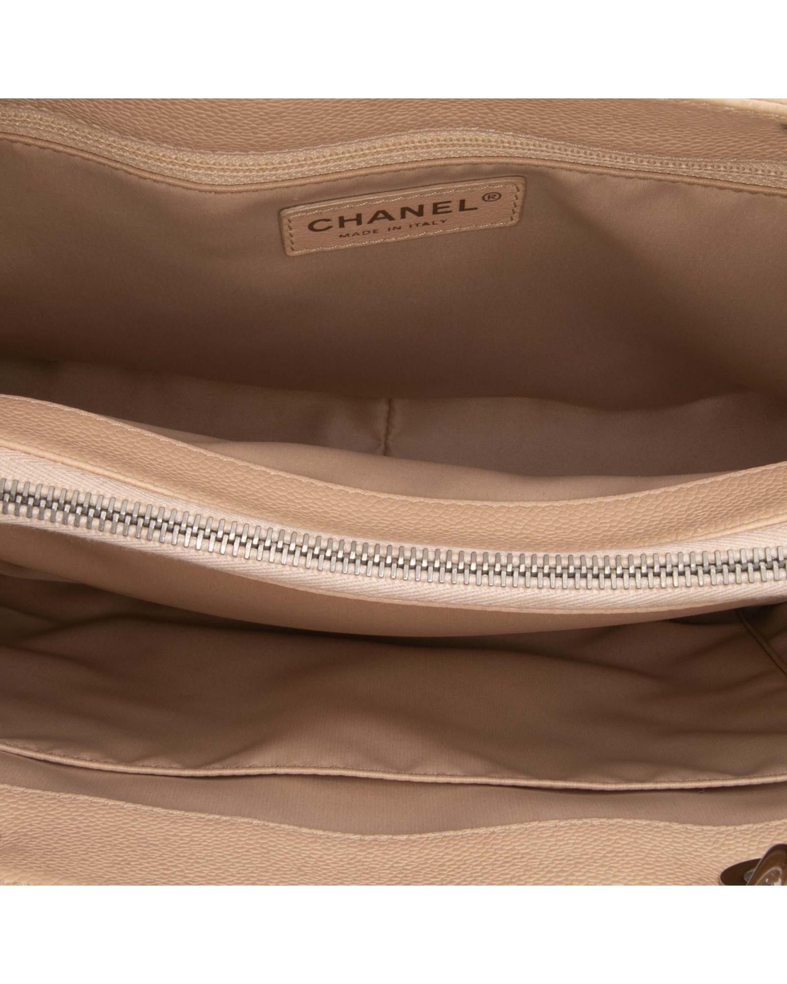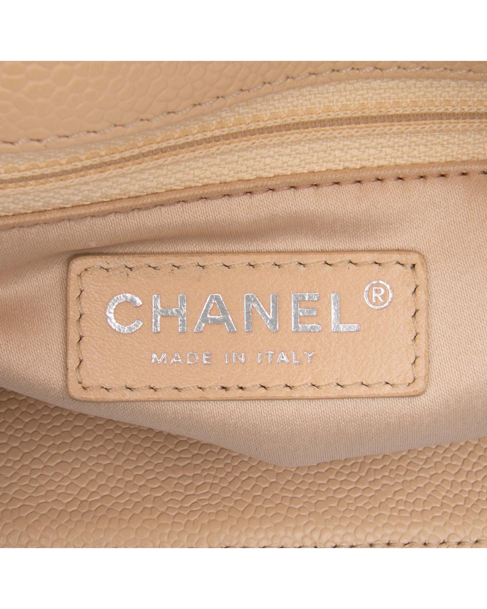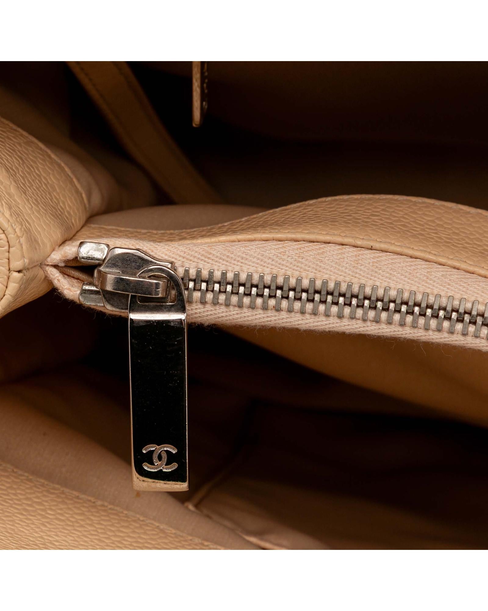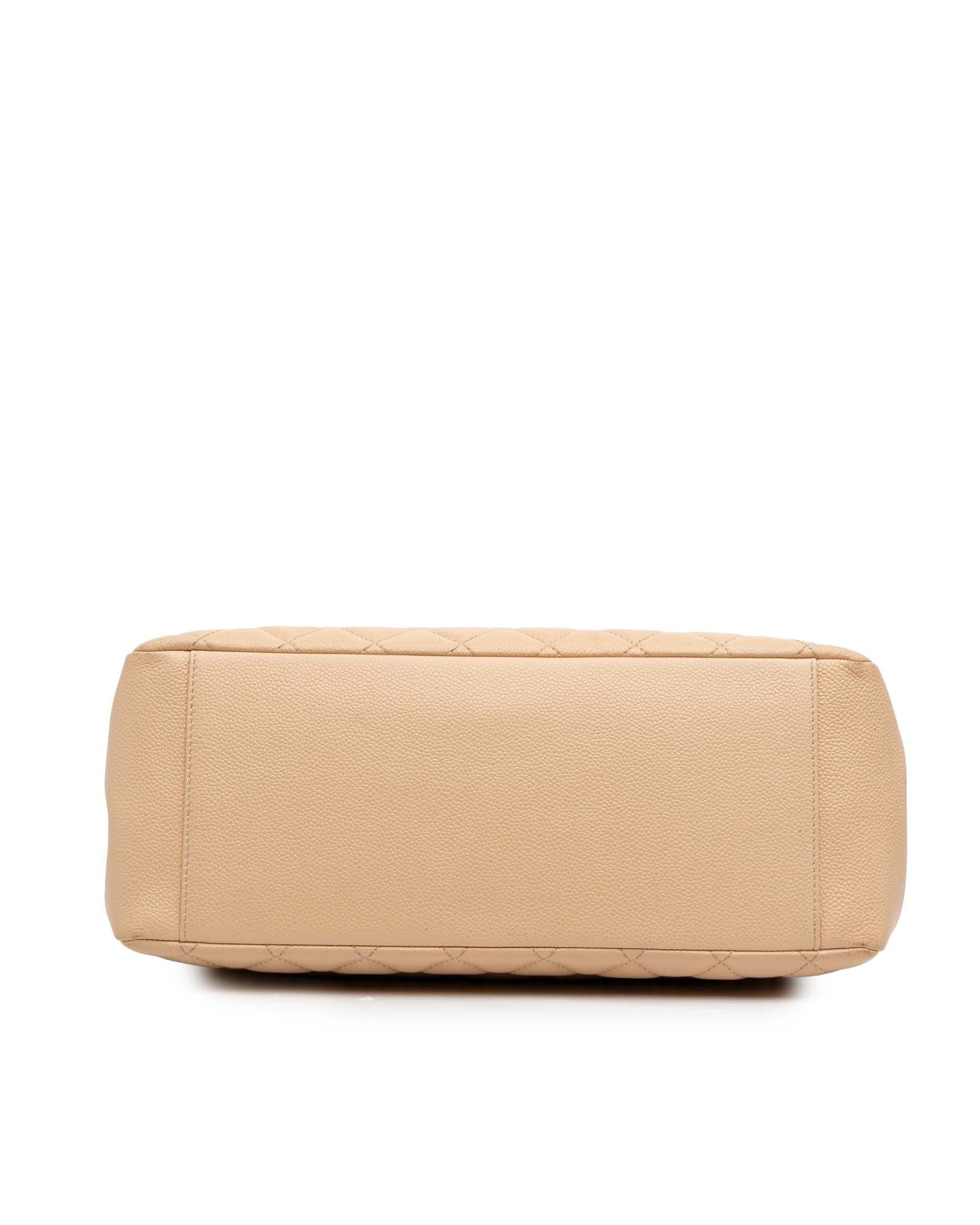 The Grand Shopping Tote features a quilted caviar leather body leather woven chain shoulder straps an open top an exterior slip pocket and interior zip and slip pockets.Brand: Chanel Vintage