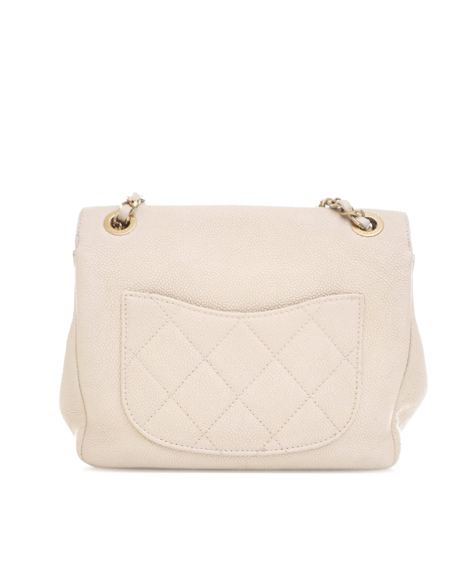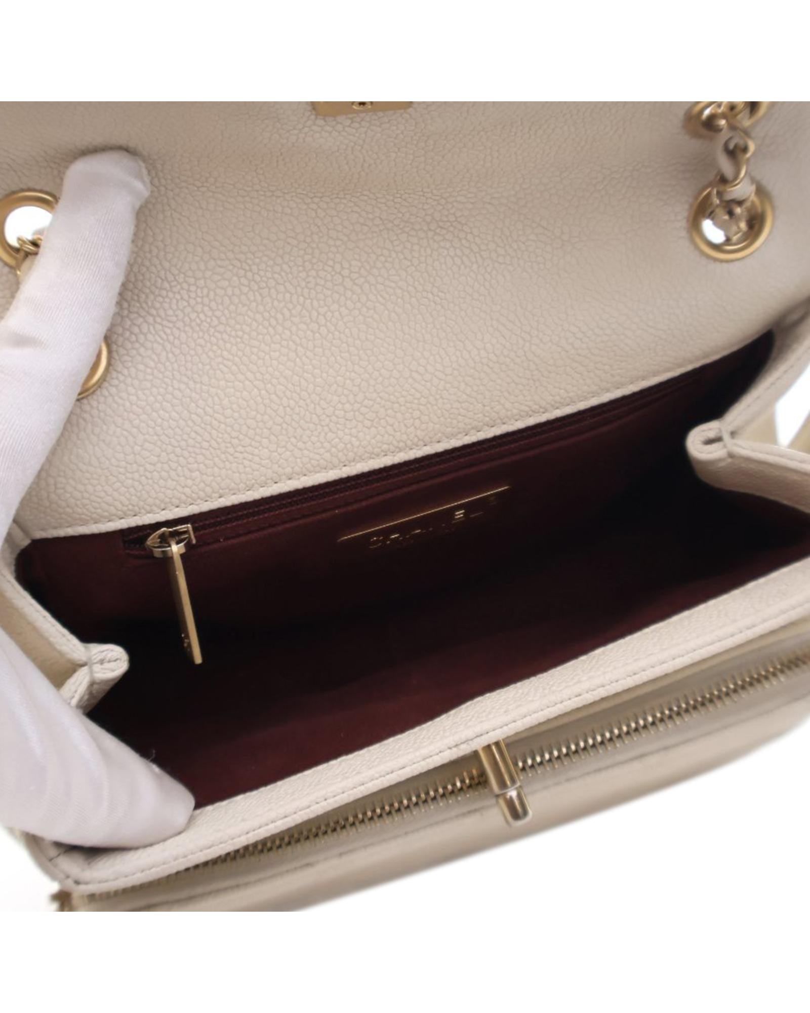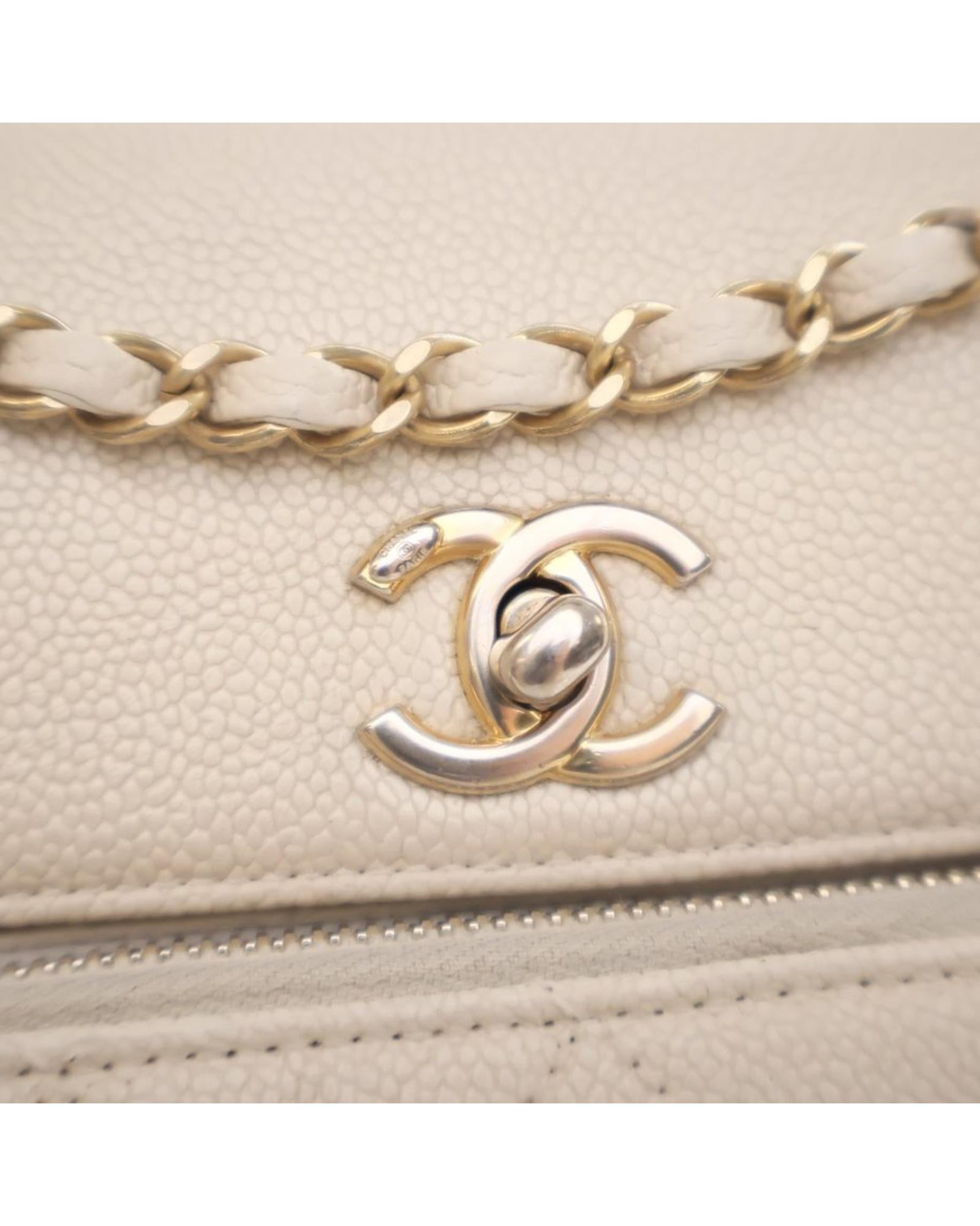 This crossbody bag features a quilted caviar leather body a leather-woven chain strap with leather shoulder guard a top flap with CC turn lock closure an exterior front zip pocket an exterior back slip pocket and an interior zip pocket.Brand: Chanel Vintage