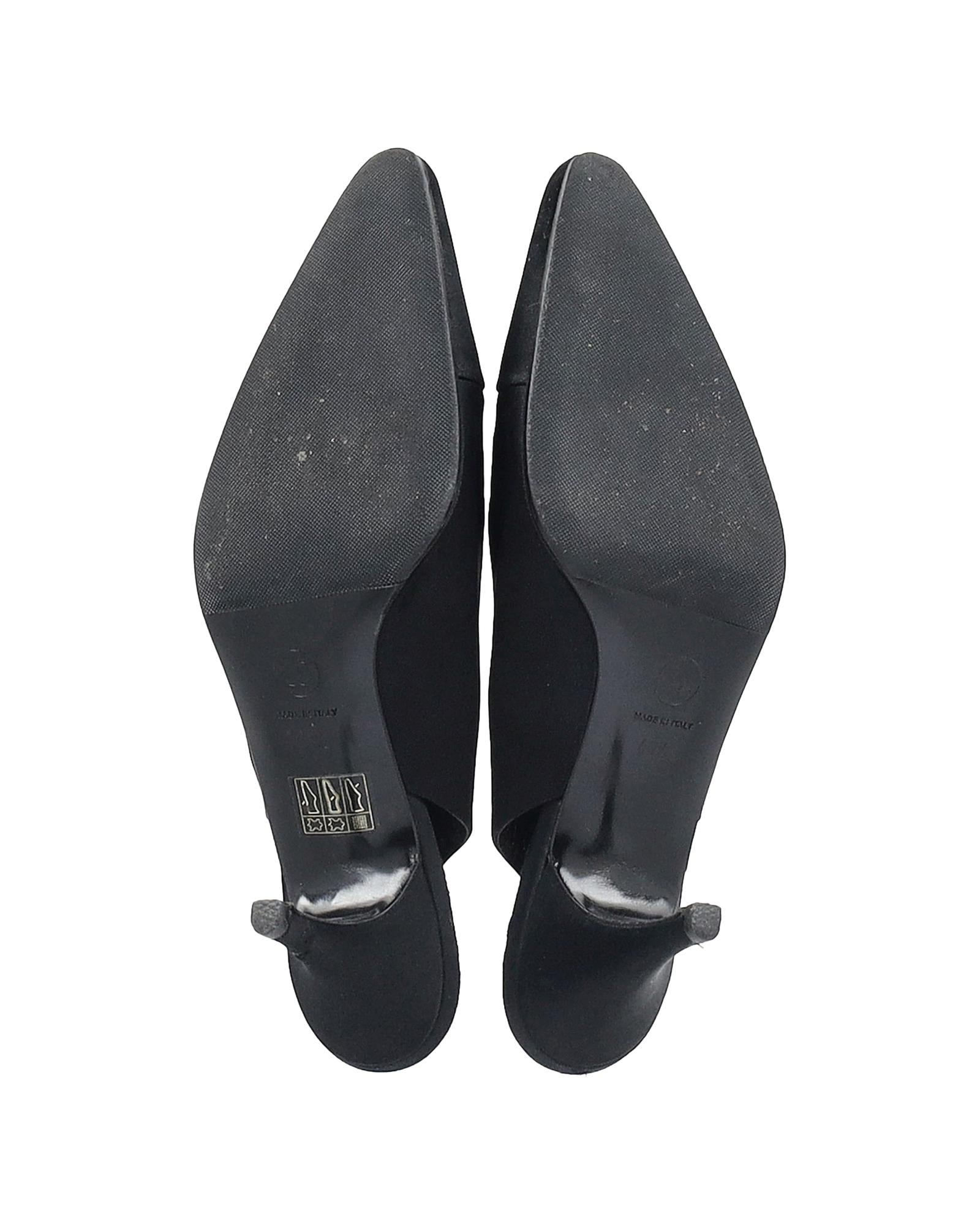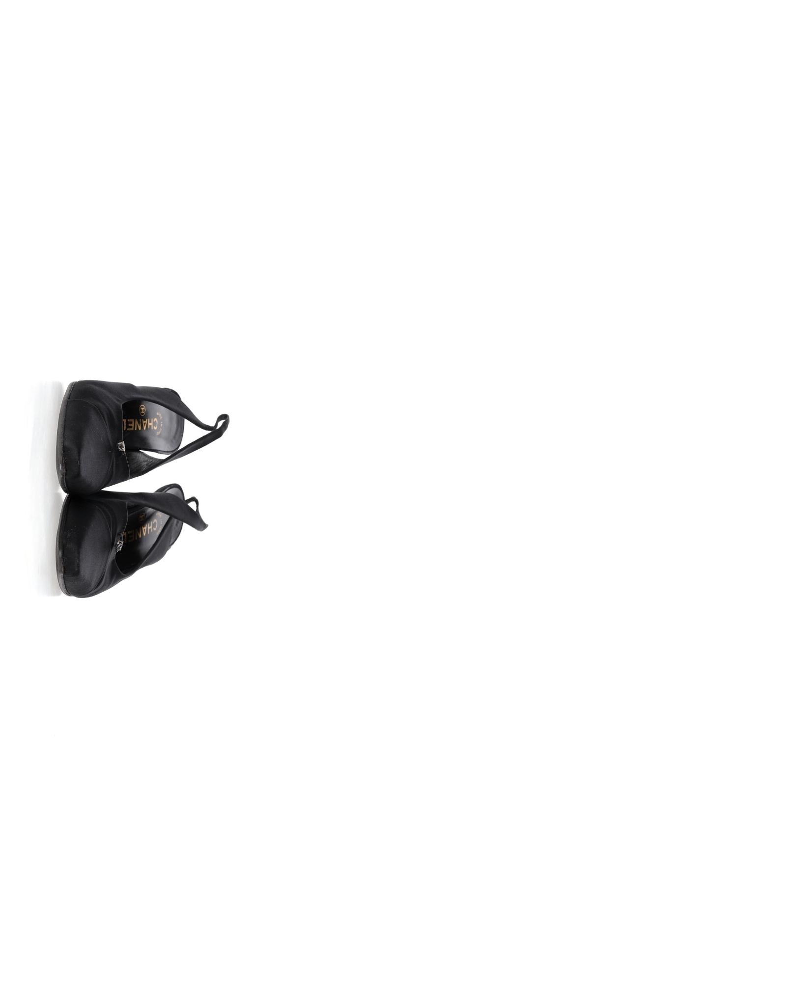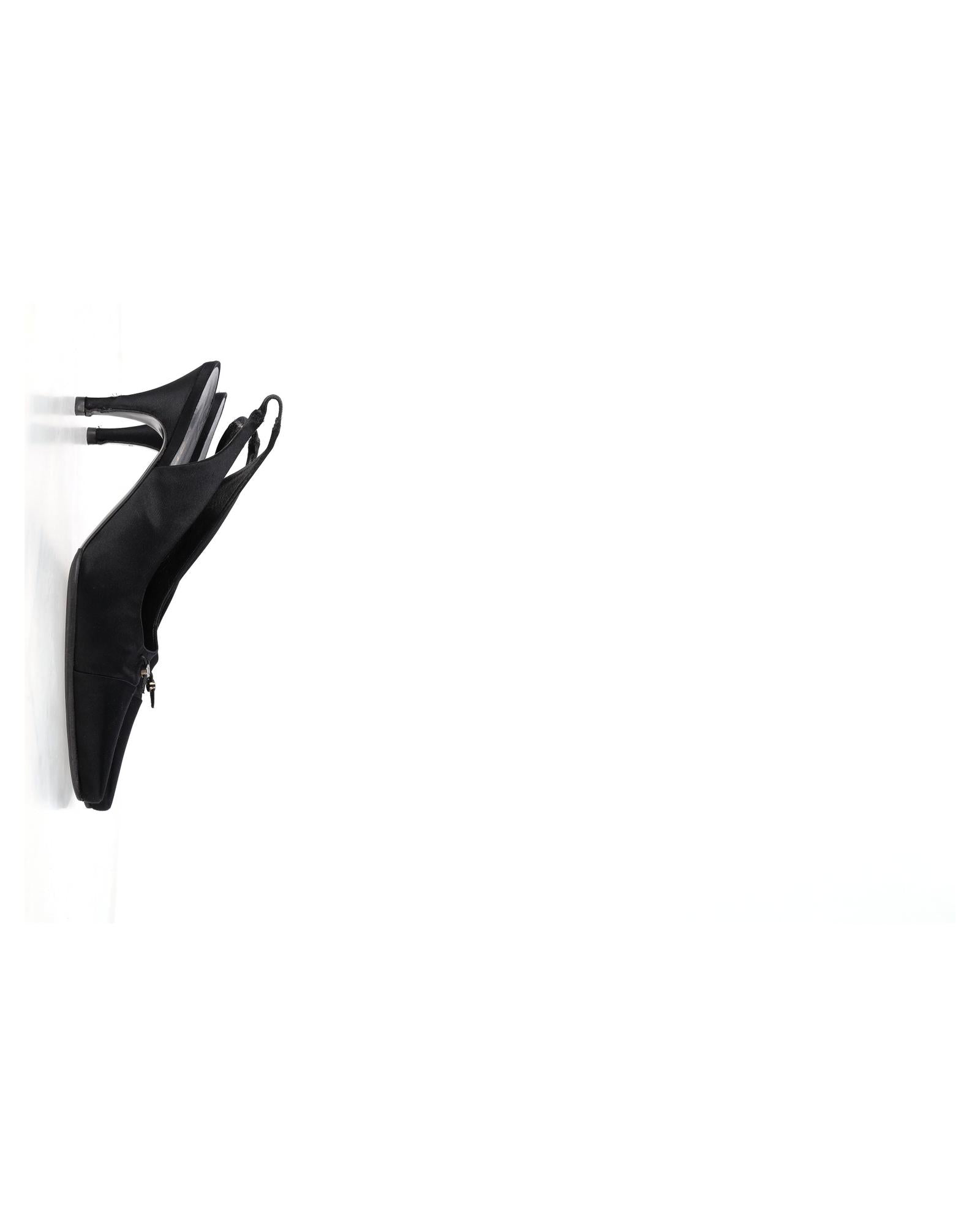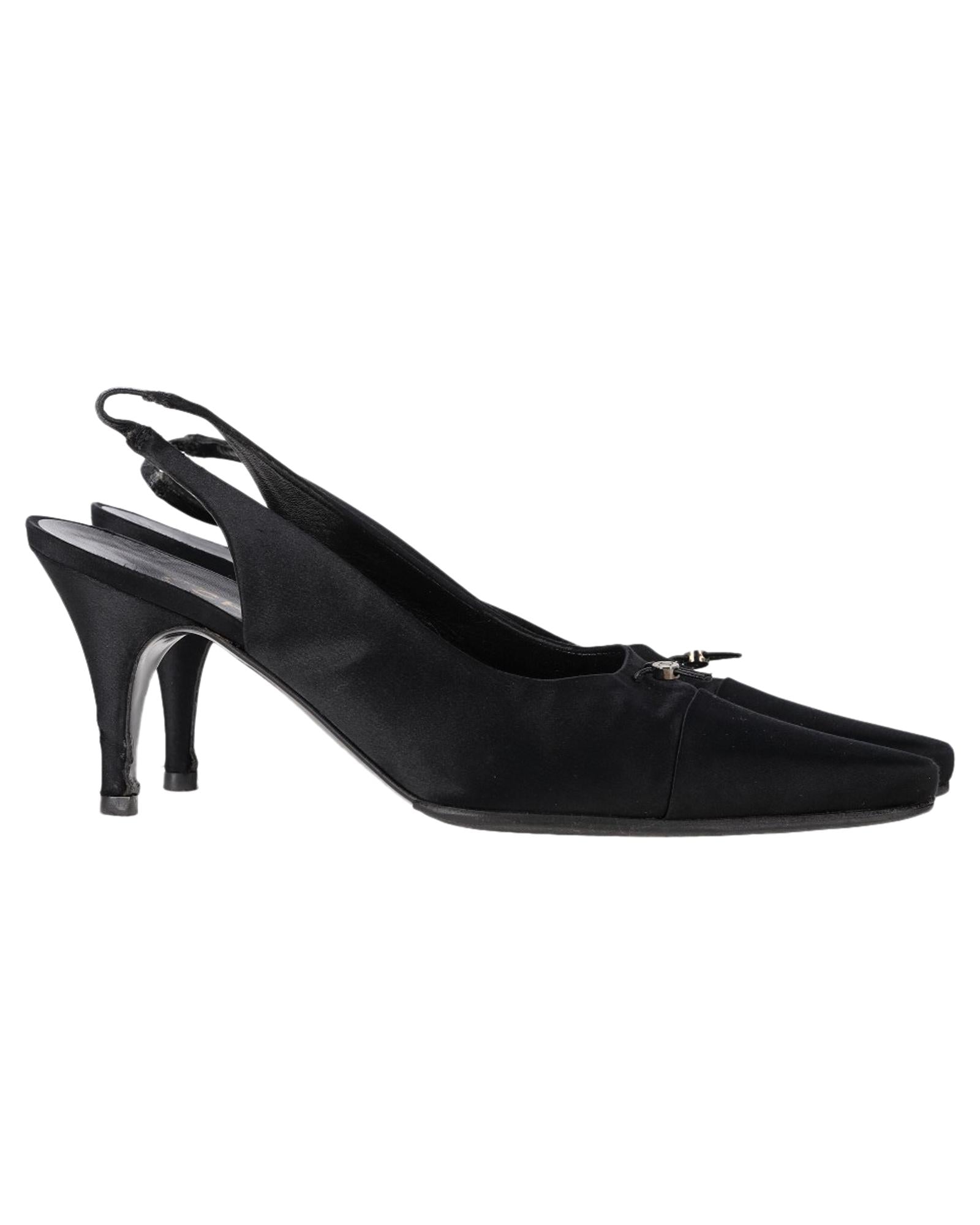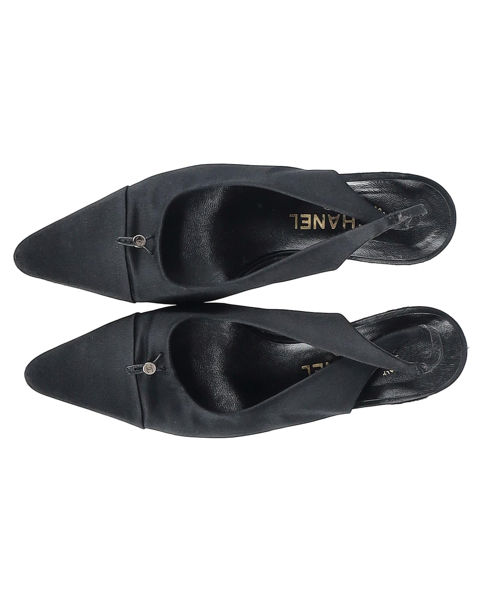 - Chanel CC Pointed Kitten Heel Slingback Pumps in Black Satin
