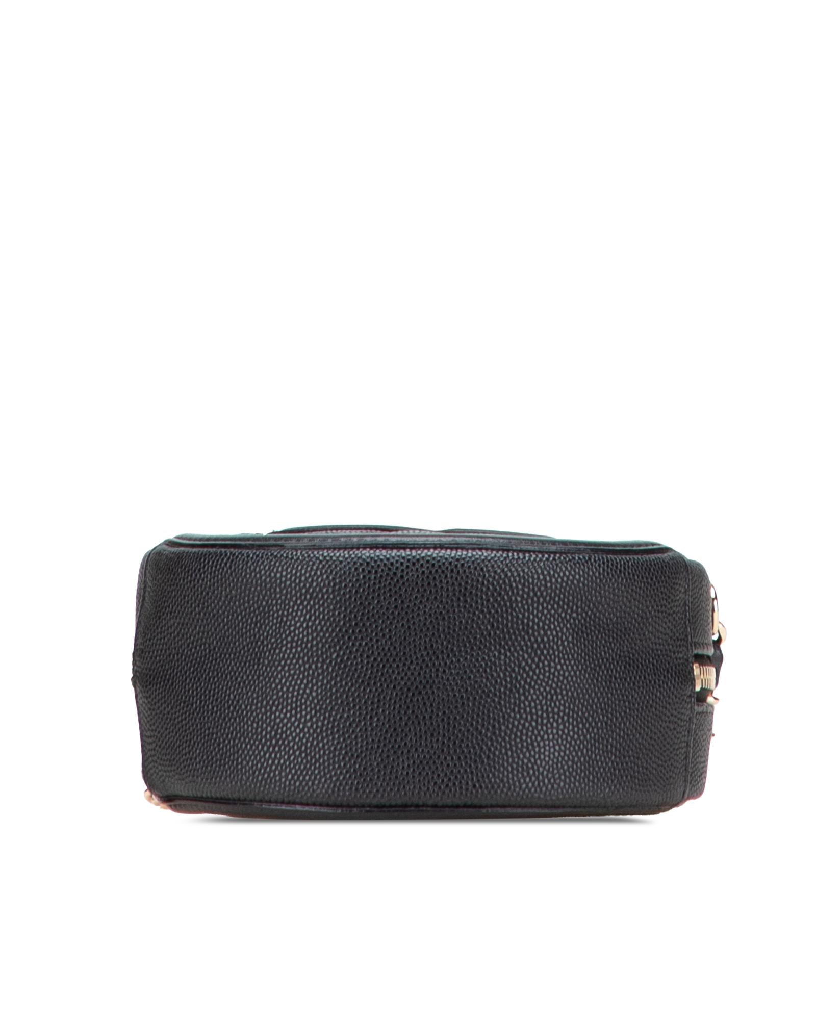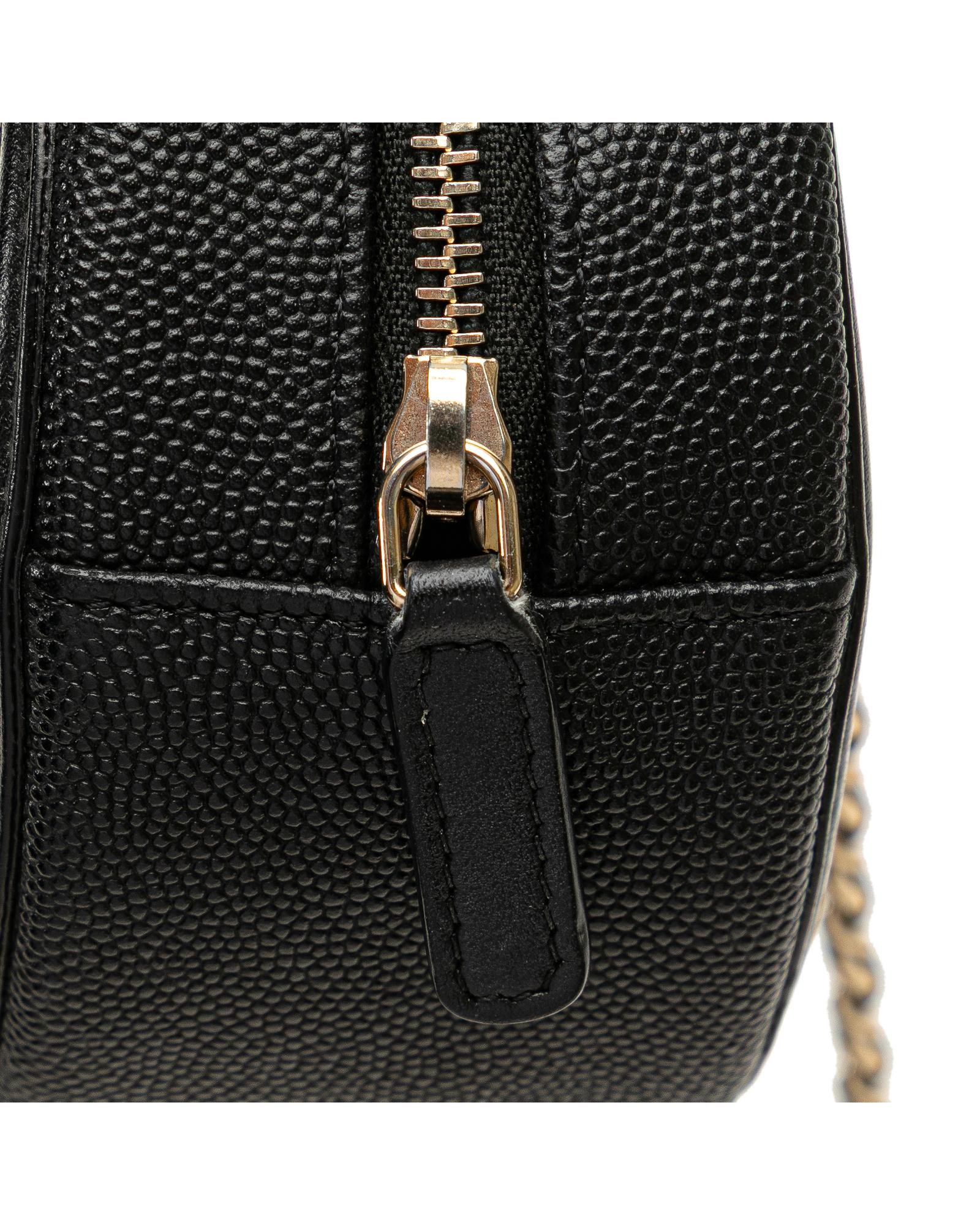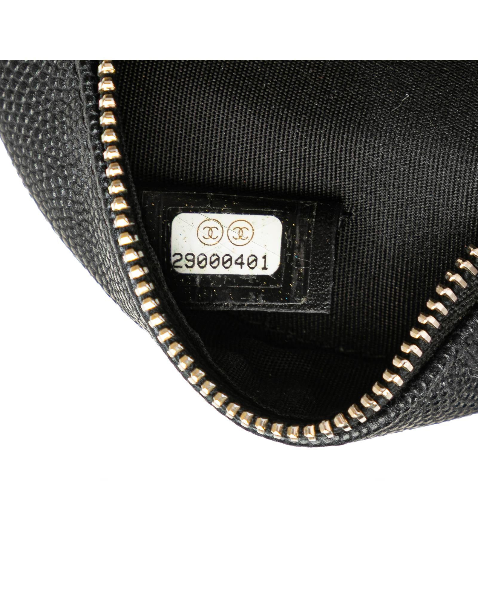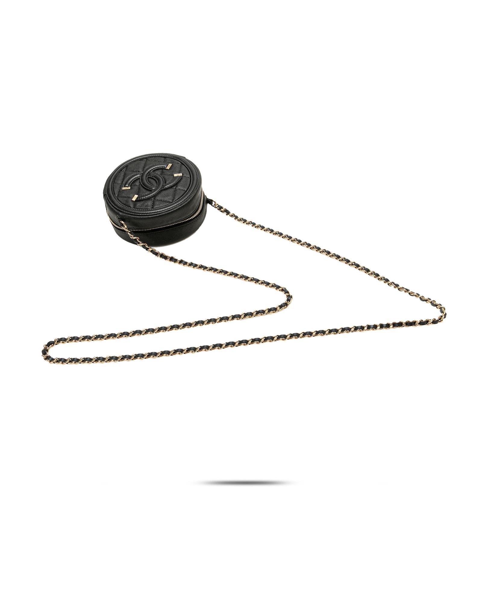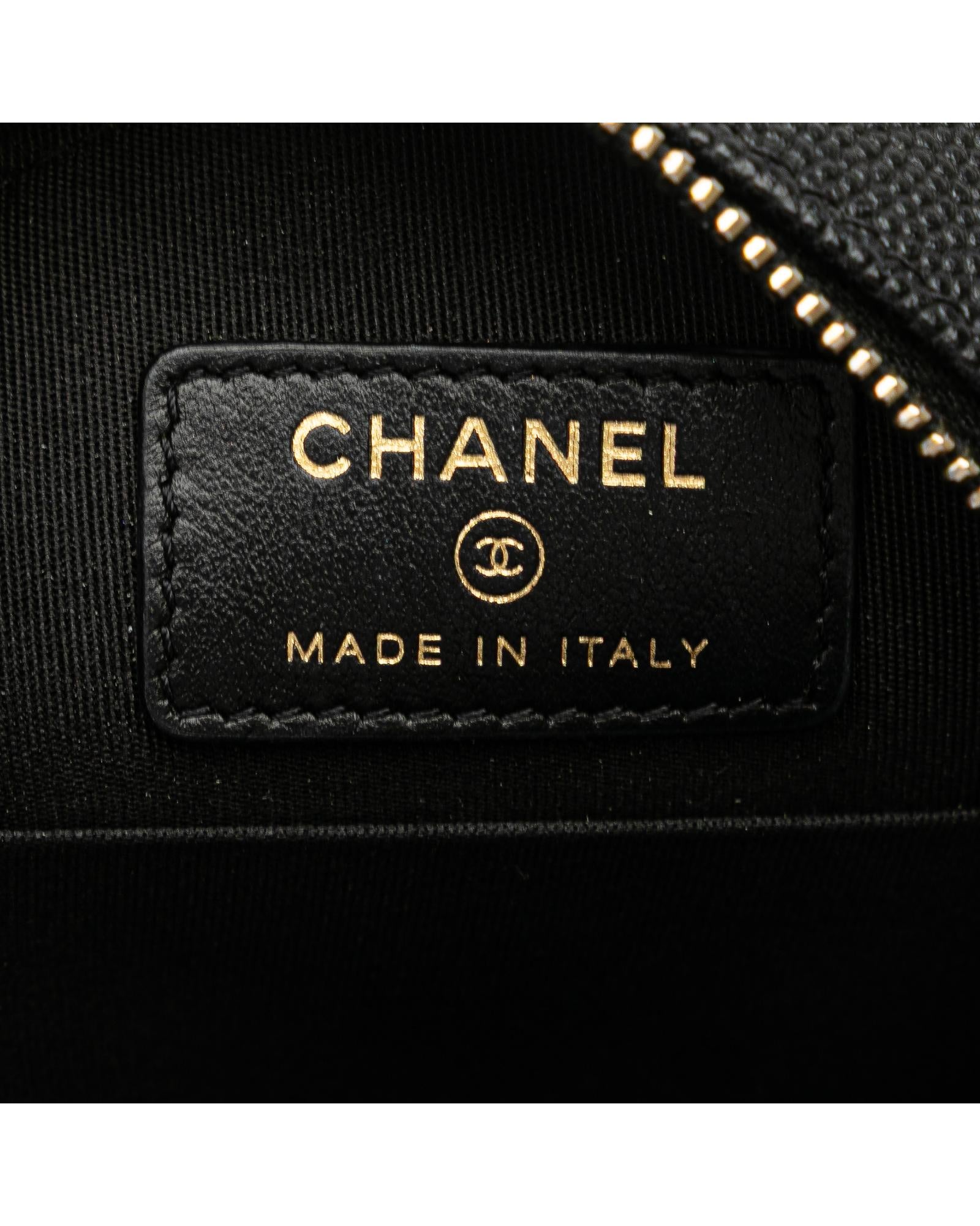 The Filigree features a quilted caviar leather body a leather woven chain strap a top zip closure and interior slip pockets.Brand: Chanel Vintage