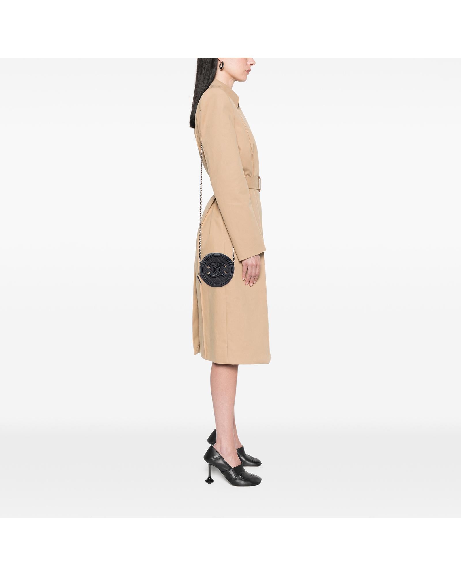 Pre-owned Round Shoulder Bag with Chain Accent and Quilted Detailing