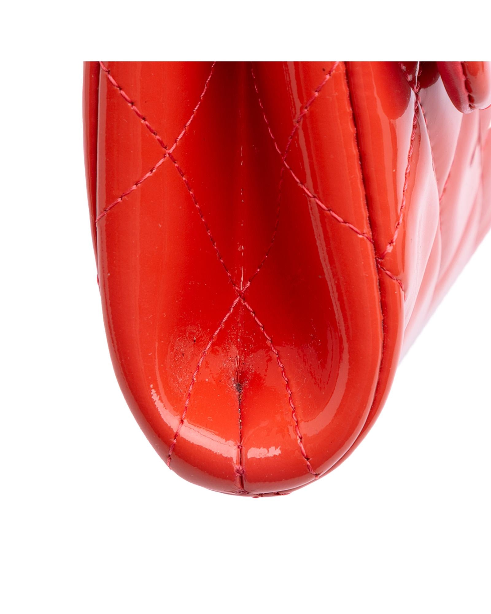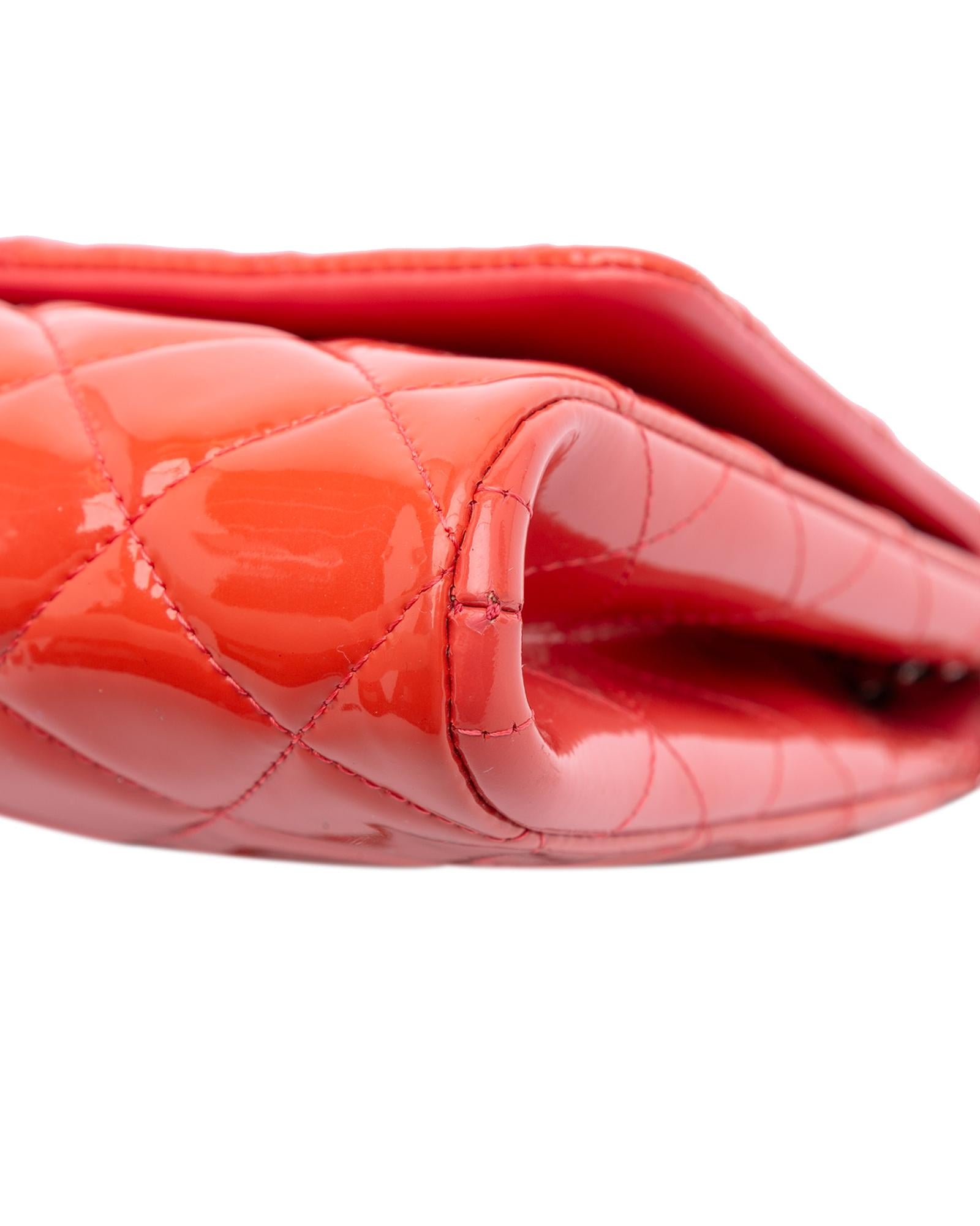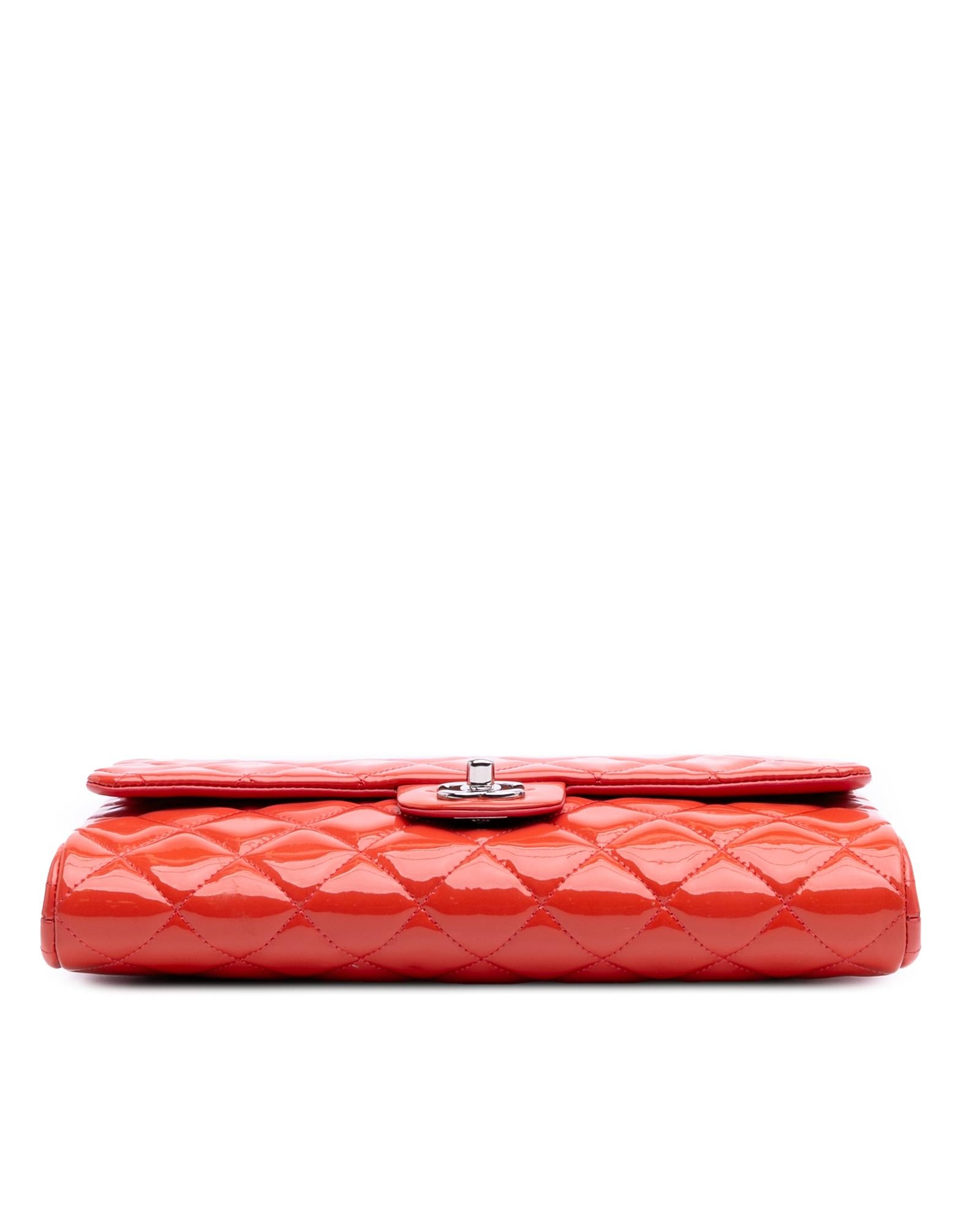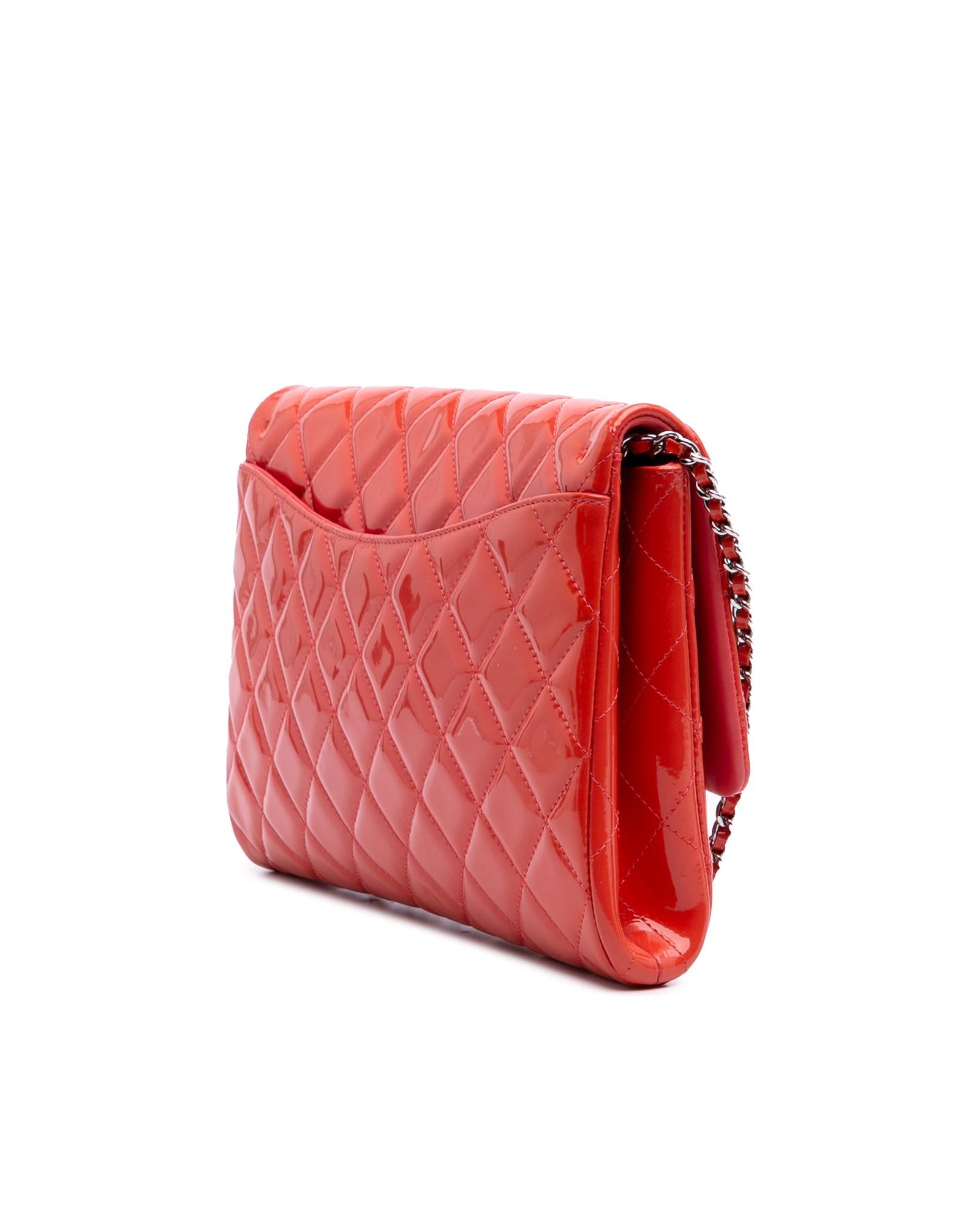 This shoulder bag features a quilted patent leather body a woven leather chain strap a front flap with CC turn-lock closure an exterior back slip pocket and an interior slip pocket.Brand: Chanel Vintage