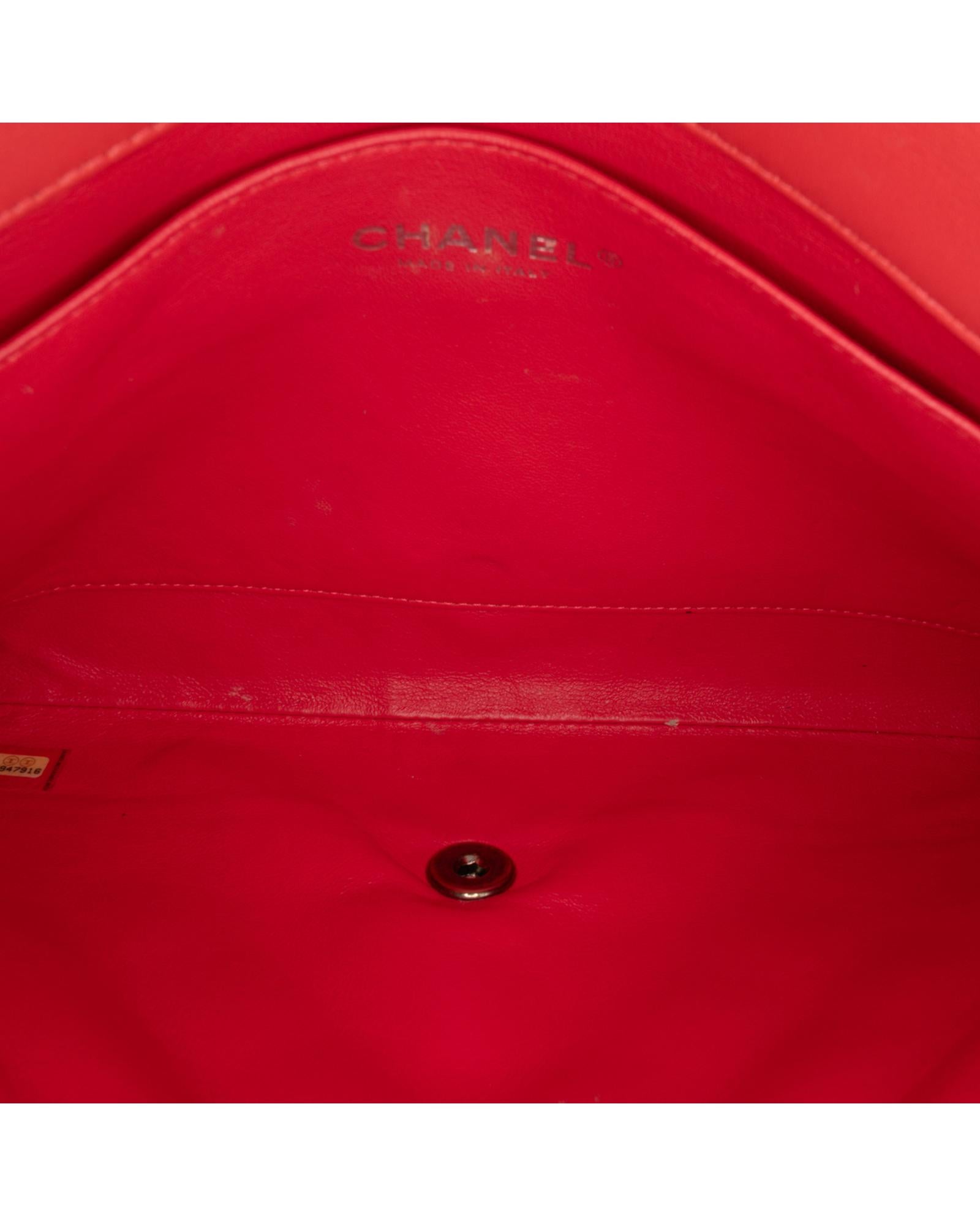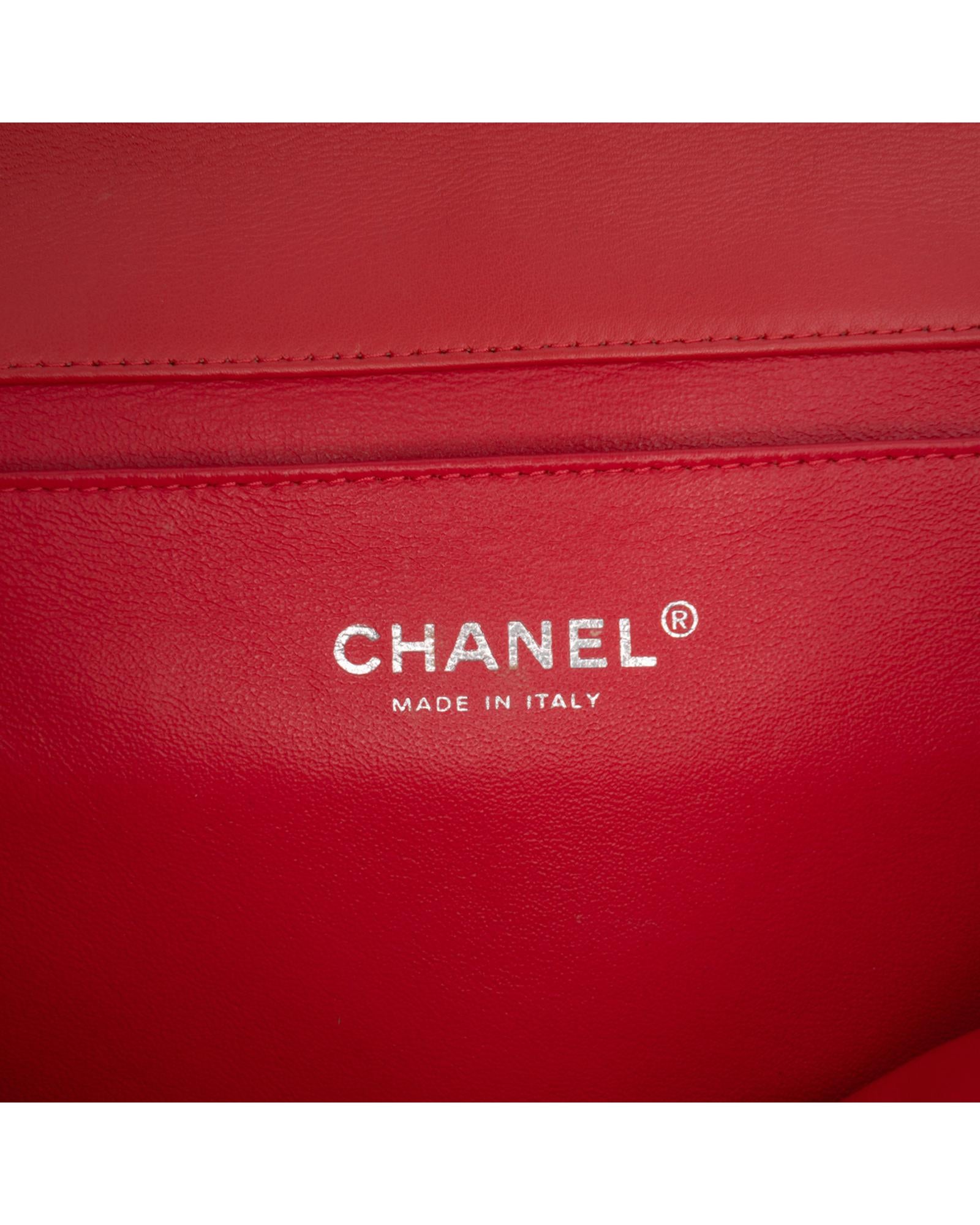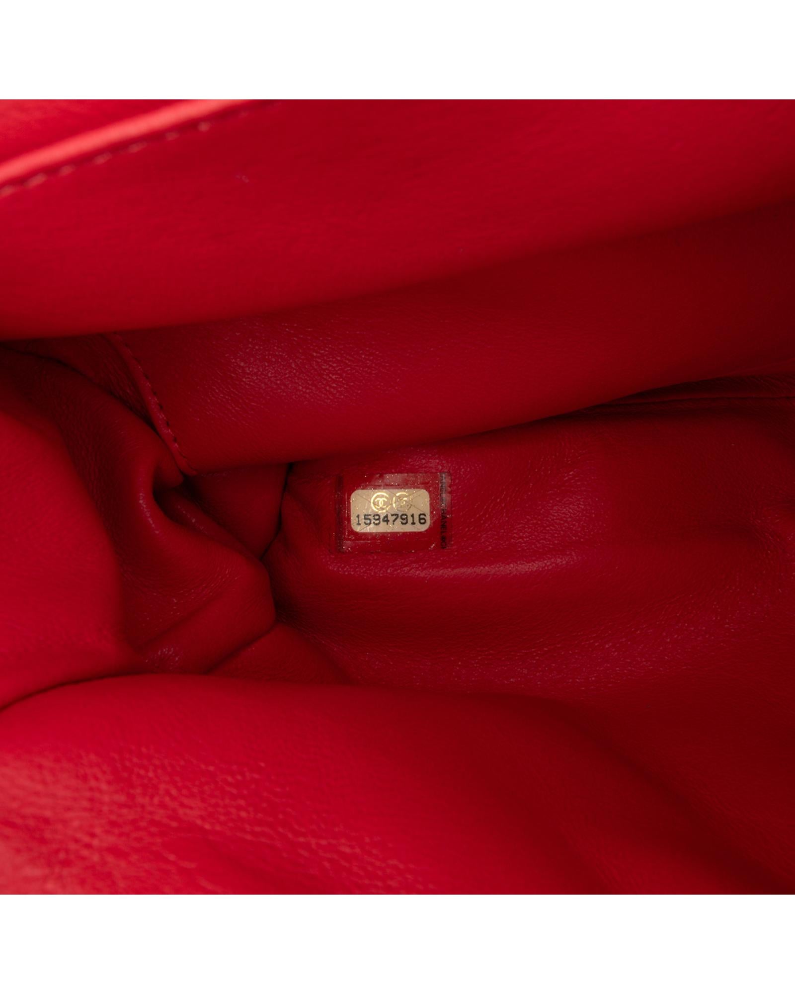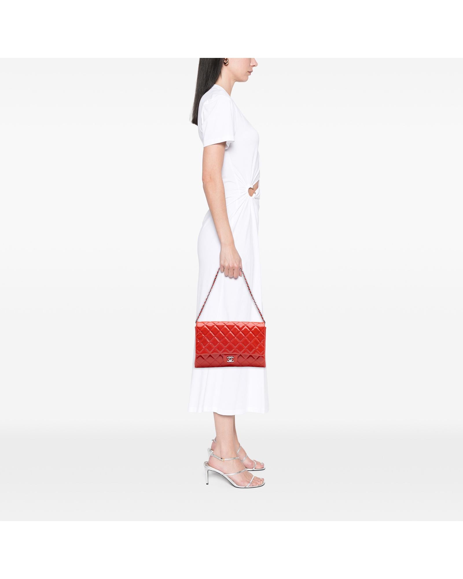 This shoulder bag features a quilted patent leather body a woven leather chain strap a front flap with CC turn-lock closure an exterior back slip pocket and an interior slip pocket.Brand: Chanel Vintage