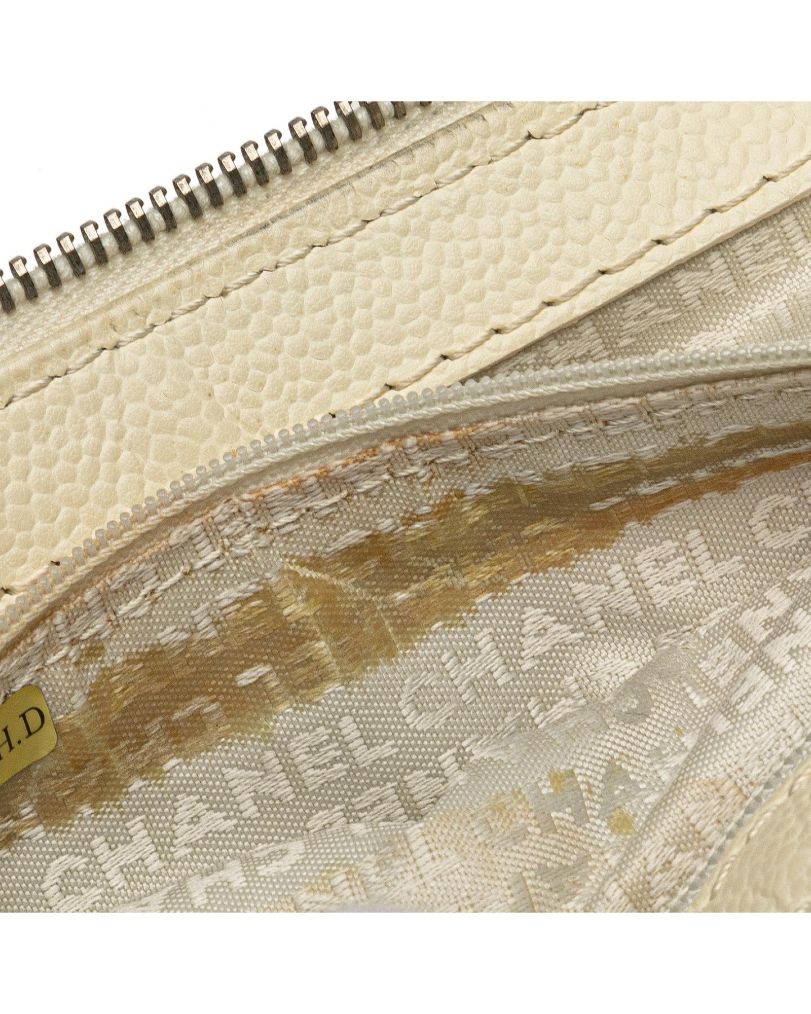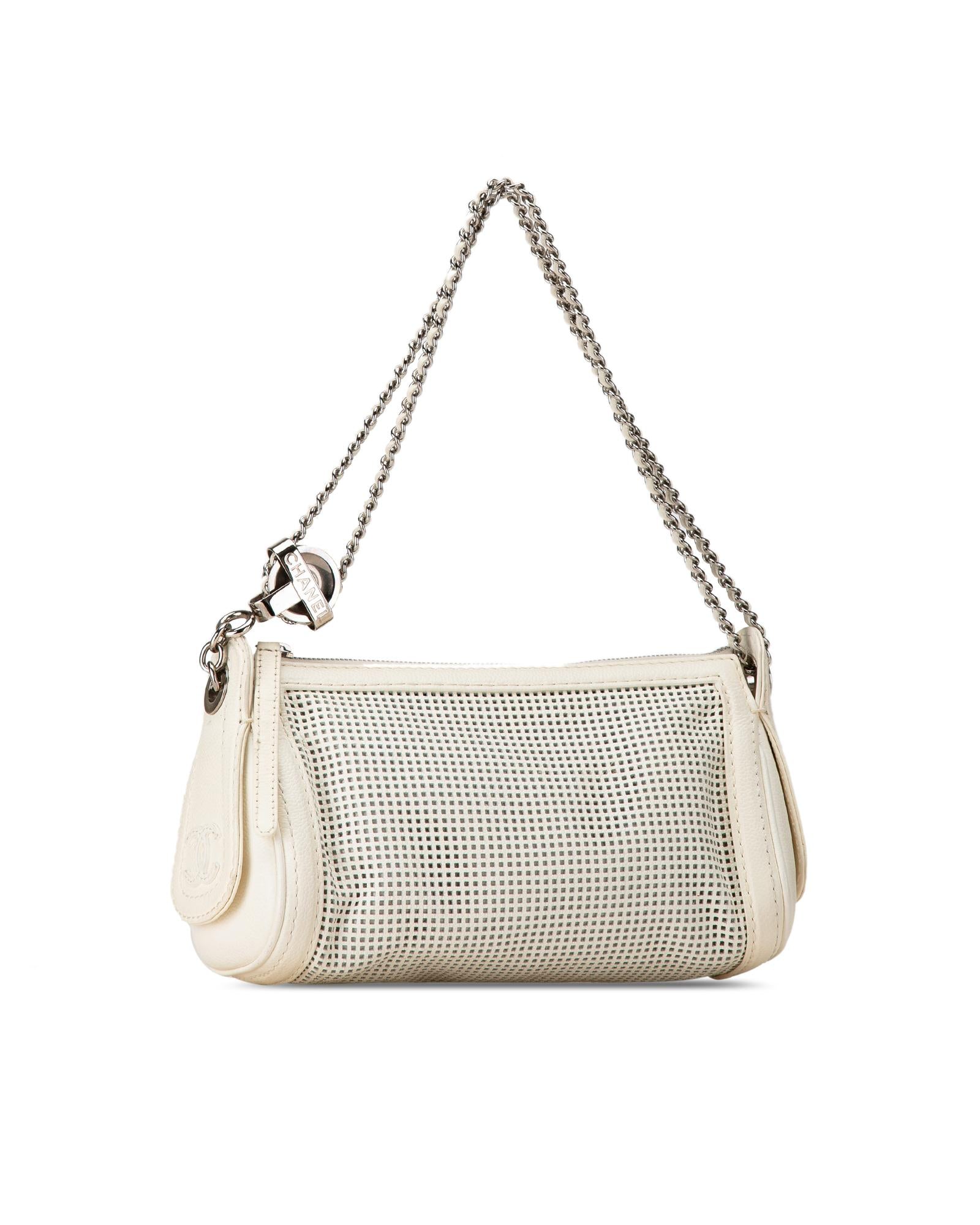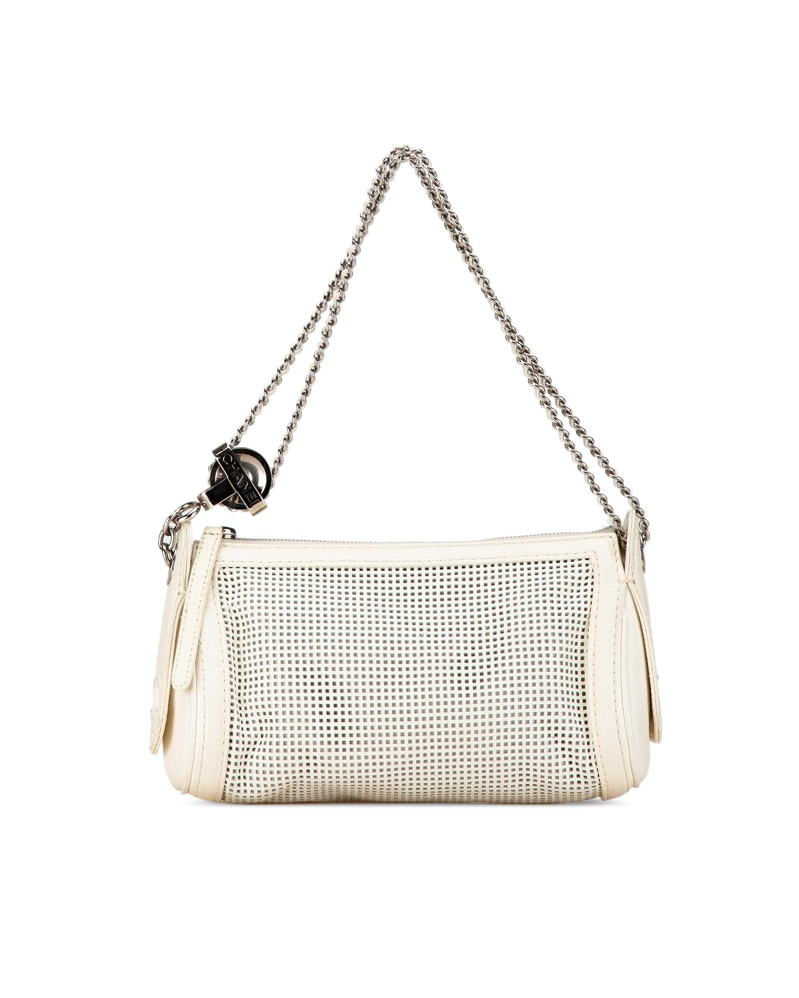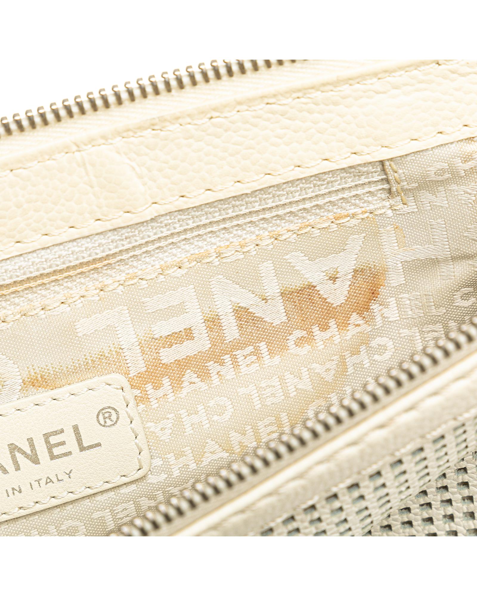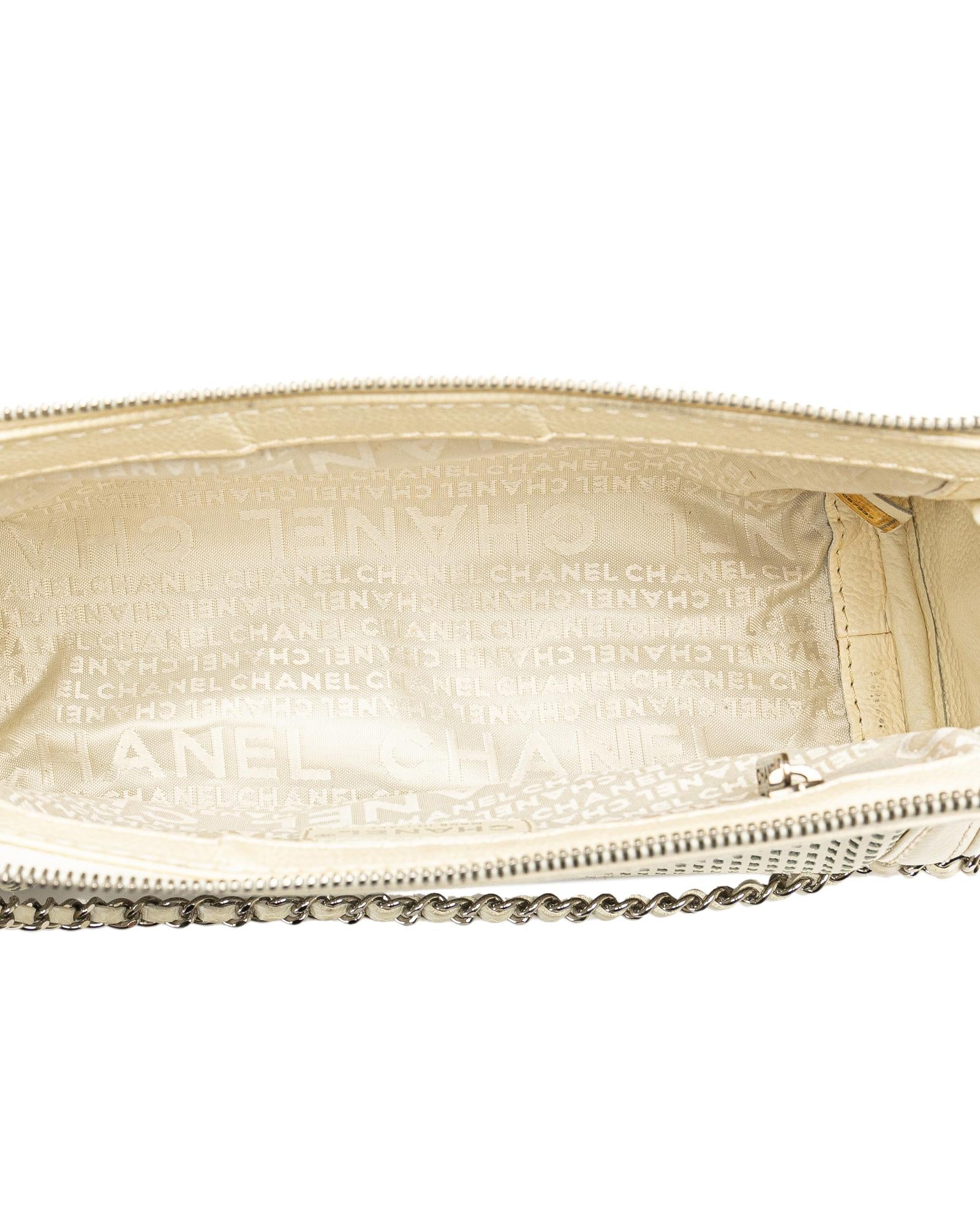 This shoulder bag features a perforated caviar leather body leather-woven chain straps a top zip closure and an interior zip pocket.Brand: Chanel Vintage