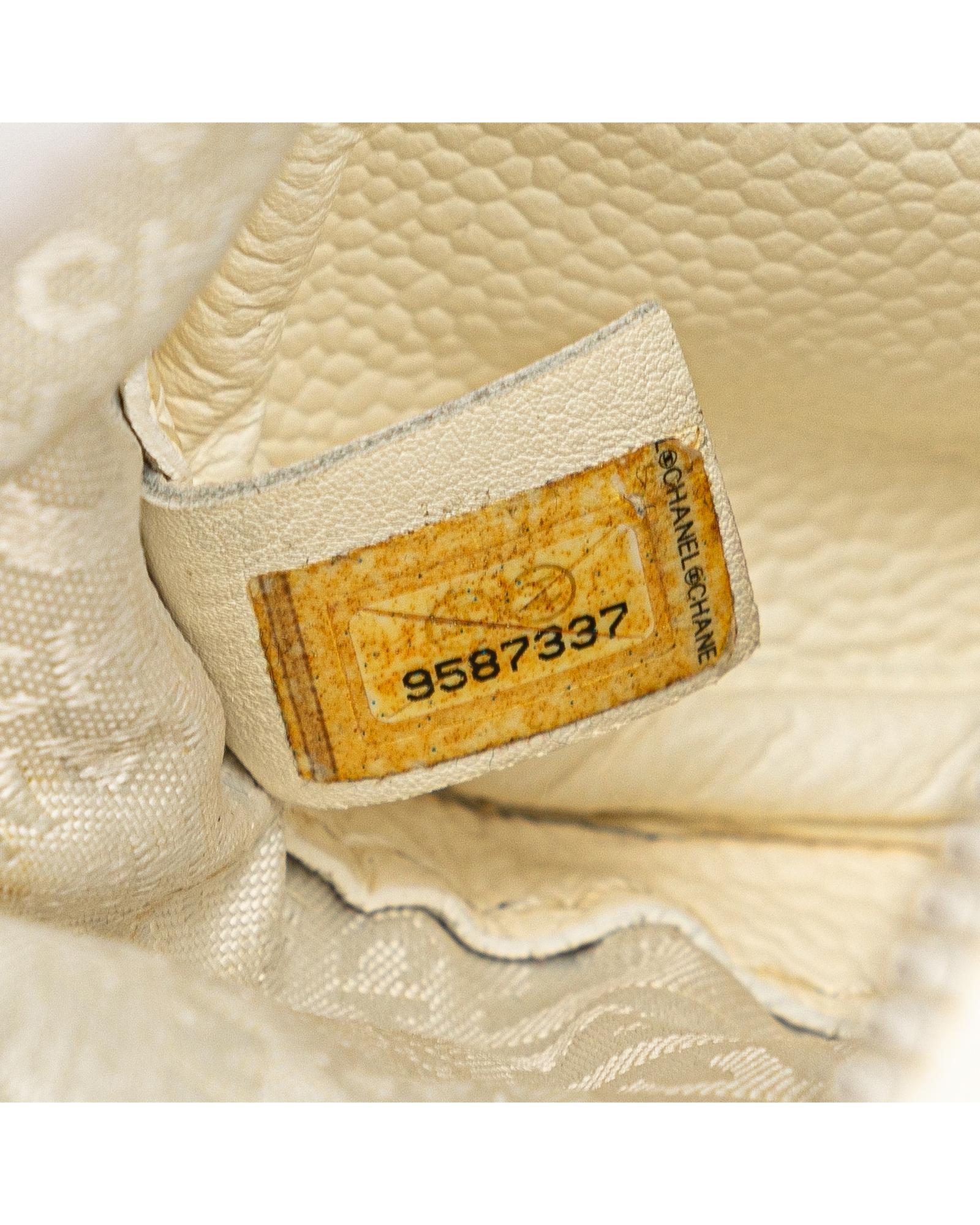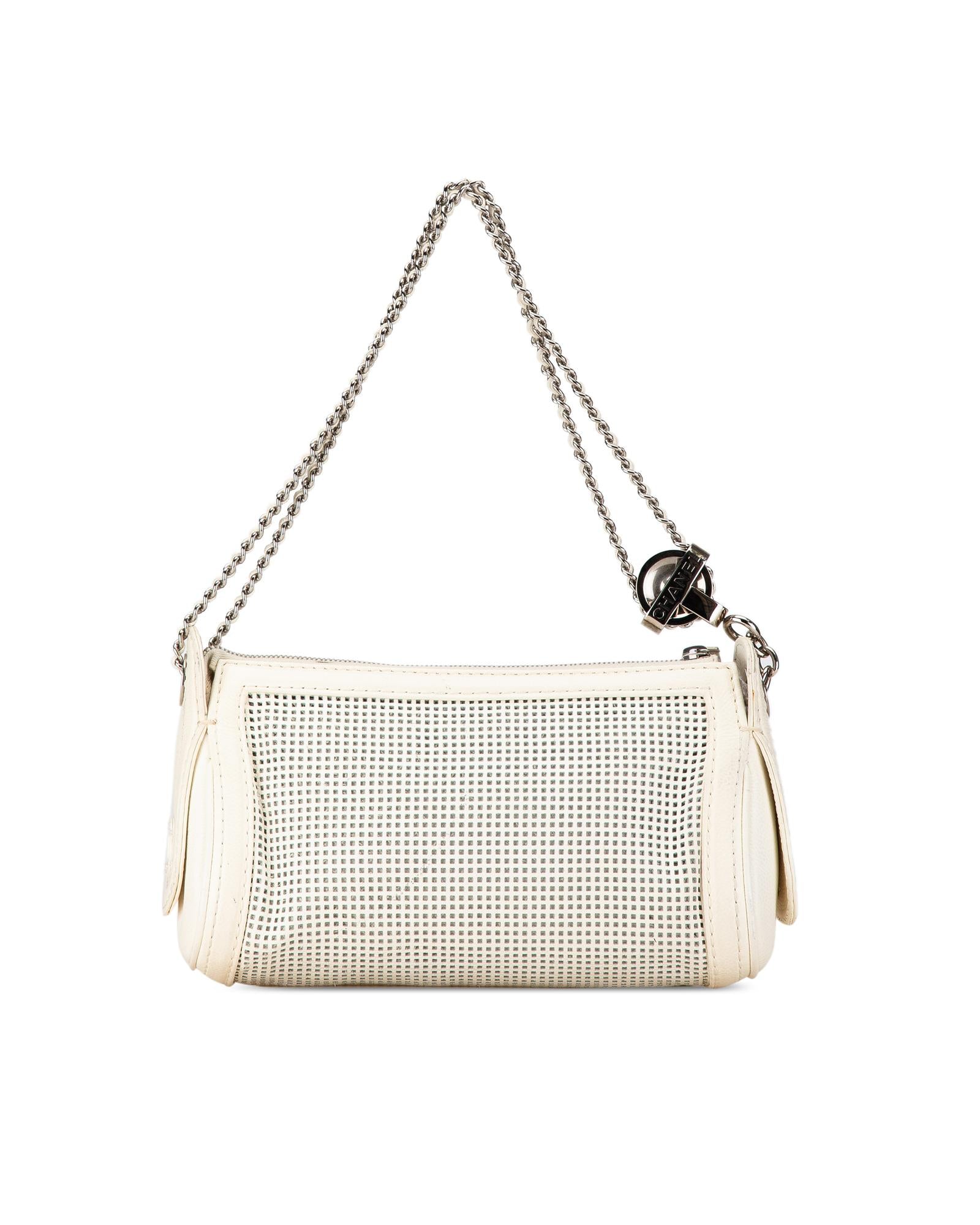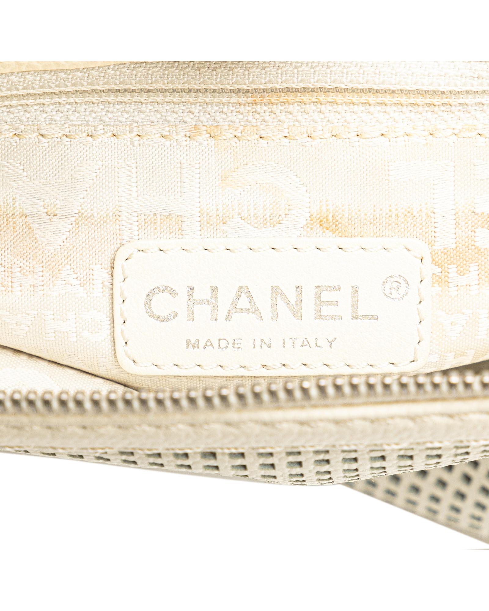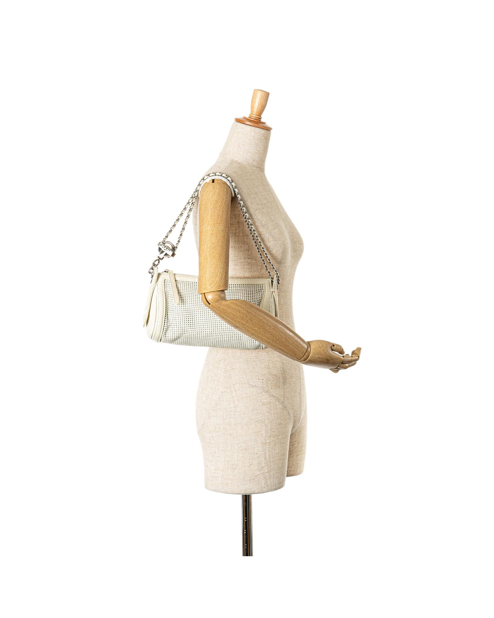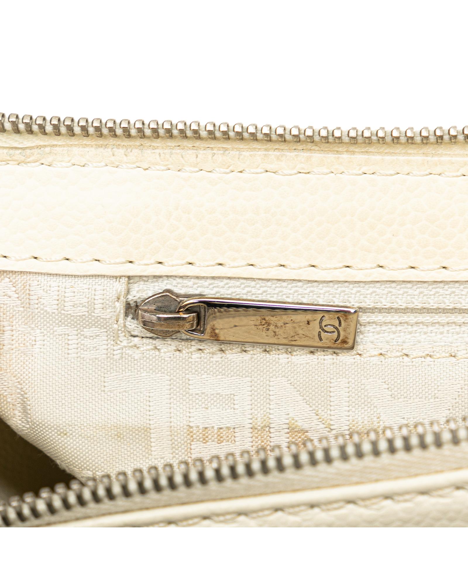 This shoulder bag features a perforated caviar leather body leather-woven chain straps a top zip closure and an interior zip pocket.Brand: Chanel Vintage