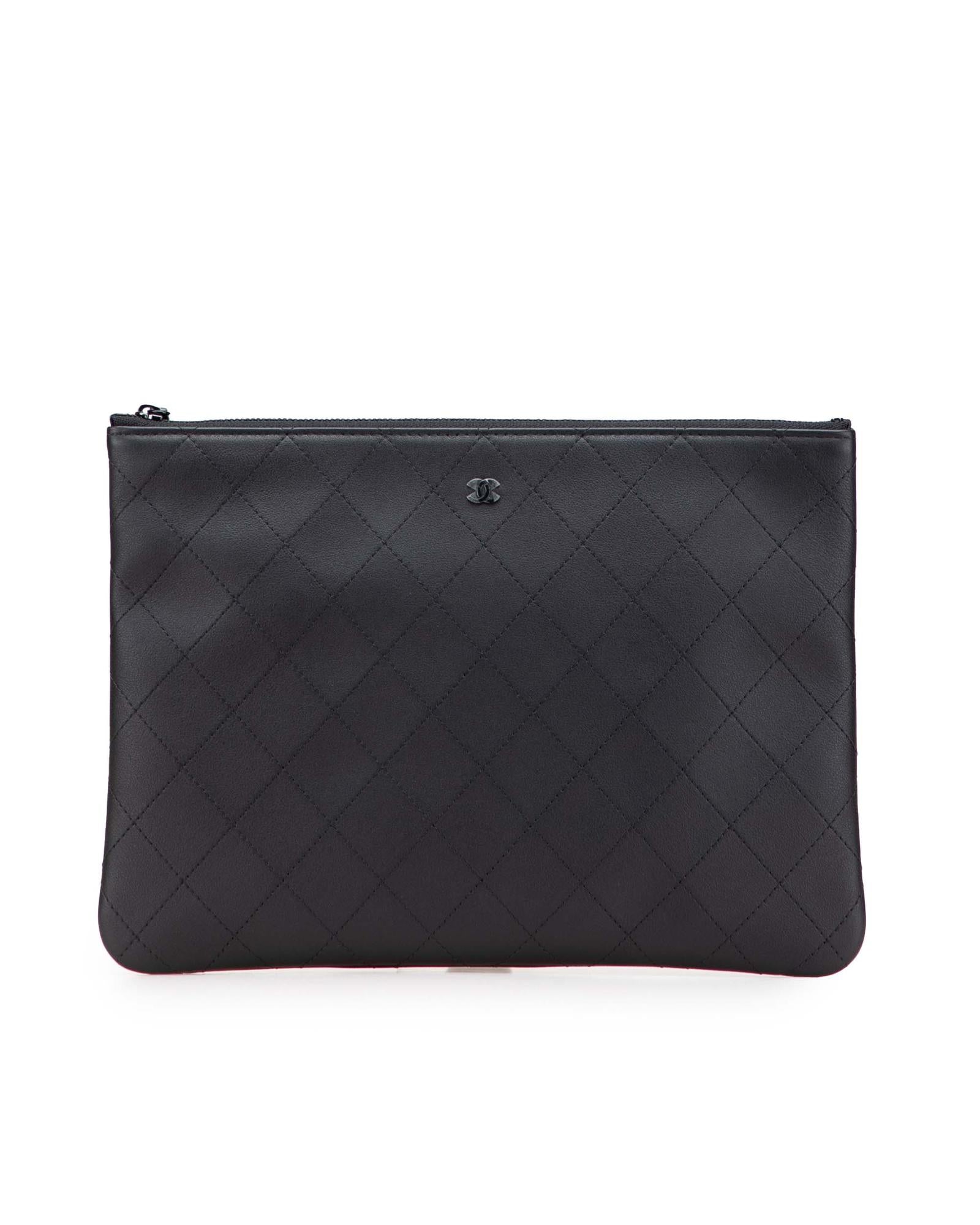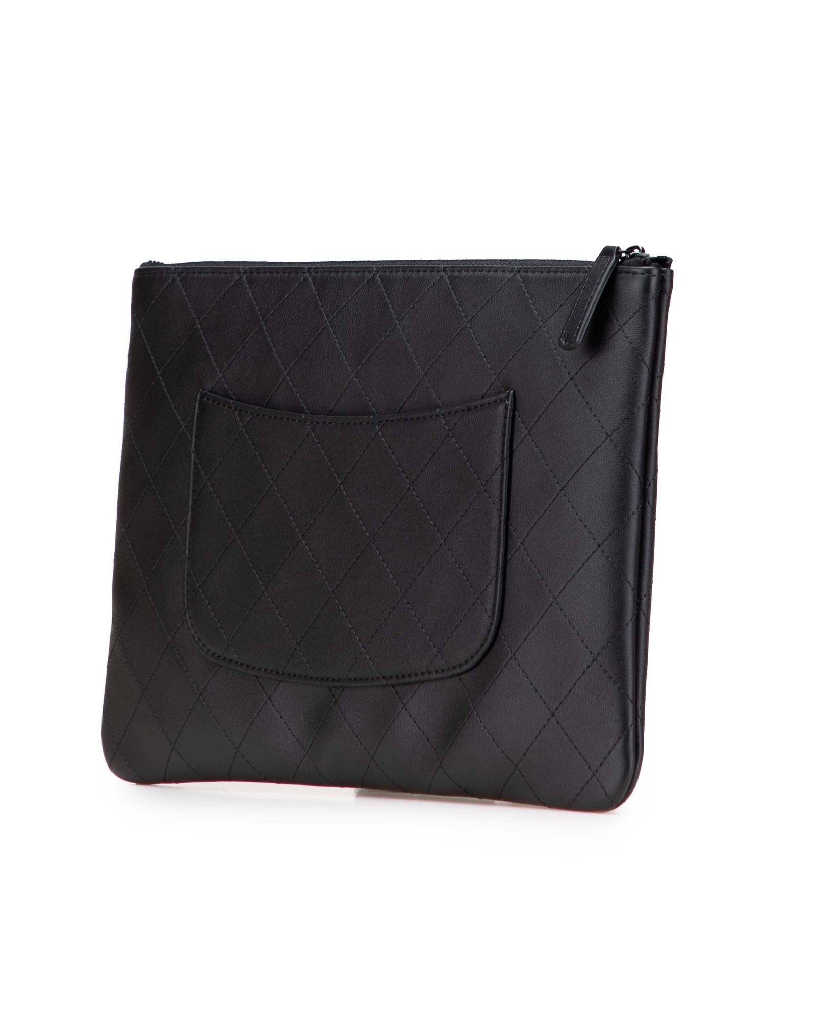 This clutch bag features a calf leather body a top zip closure and an exterior back slip pocket.Brand: Chanel Vintage