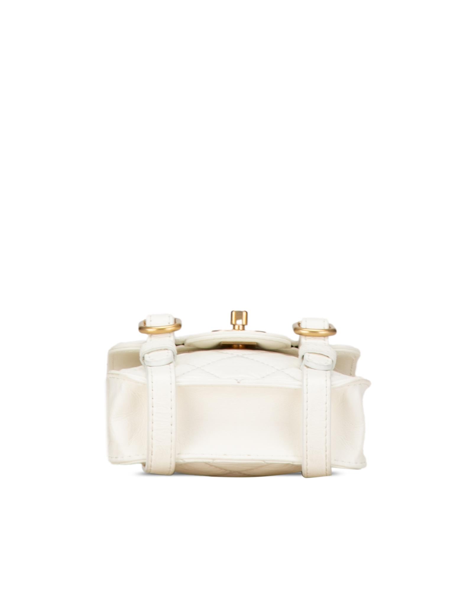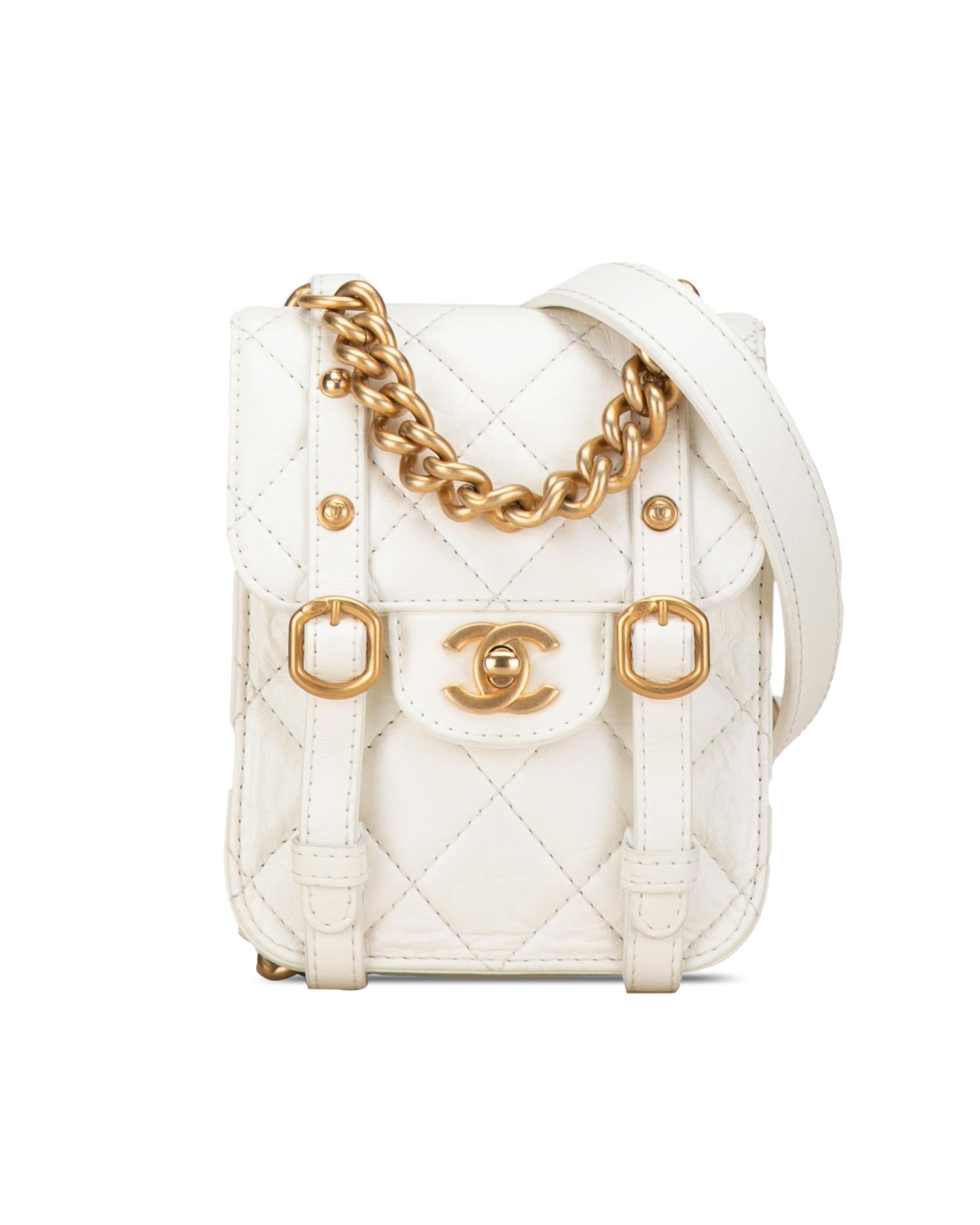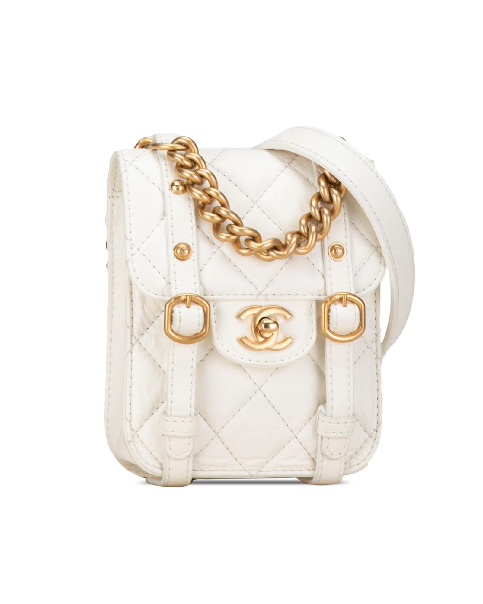 The Mini City School features a quilted leather body a chain link handle an adjustable leather and chain shoulder strap and a top flap with CC turn-lock closure.Brand: Chanel Vintage