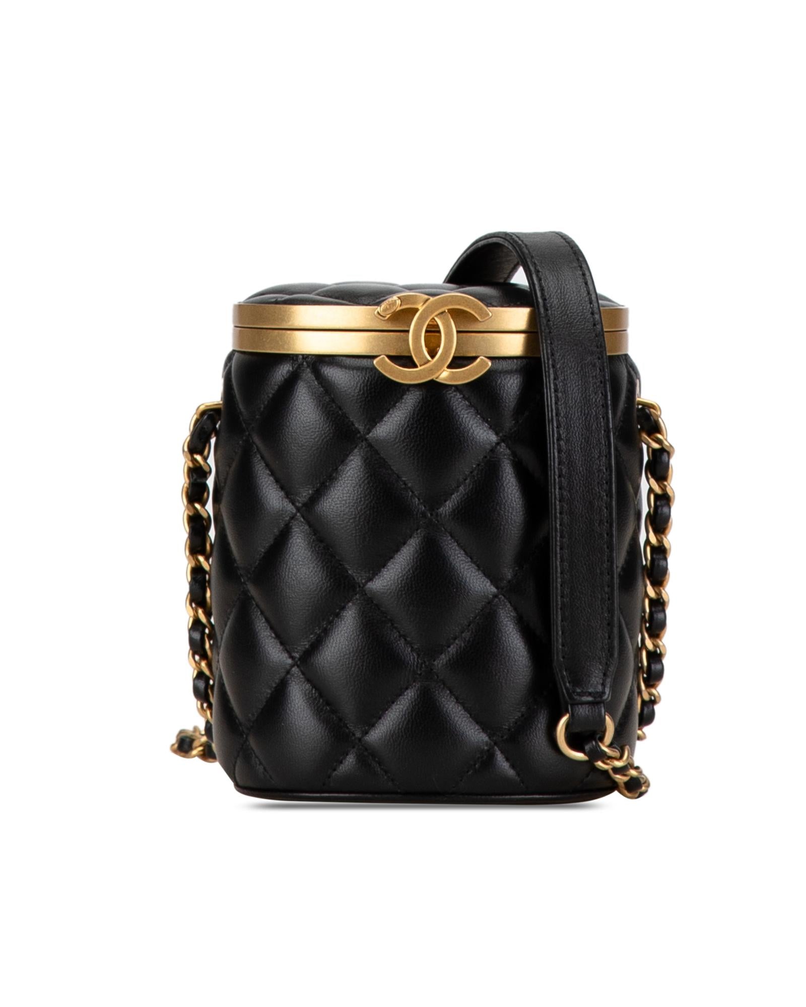 Pre-owned Quilted Vanity Case with Chain and Leather Straps Elegant Shoulder Bag