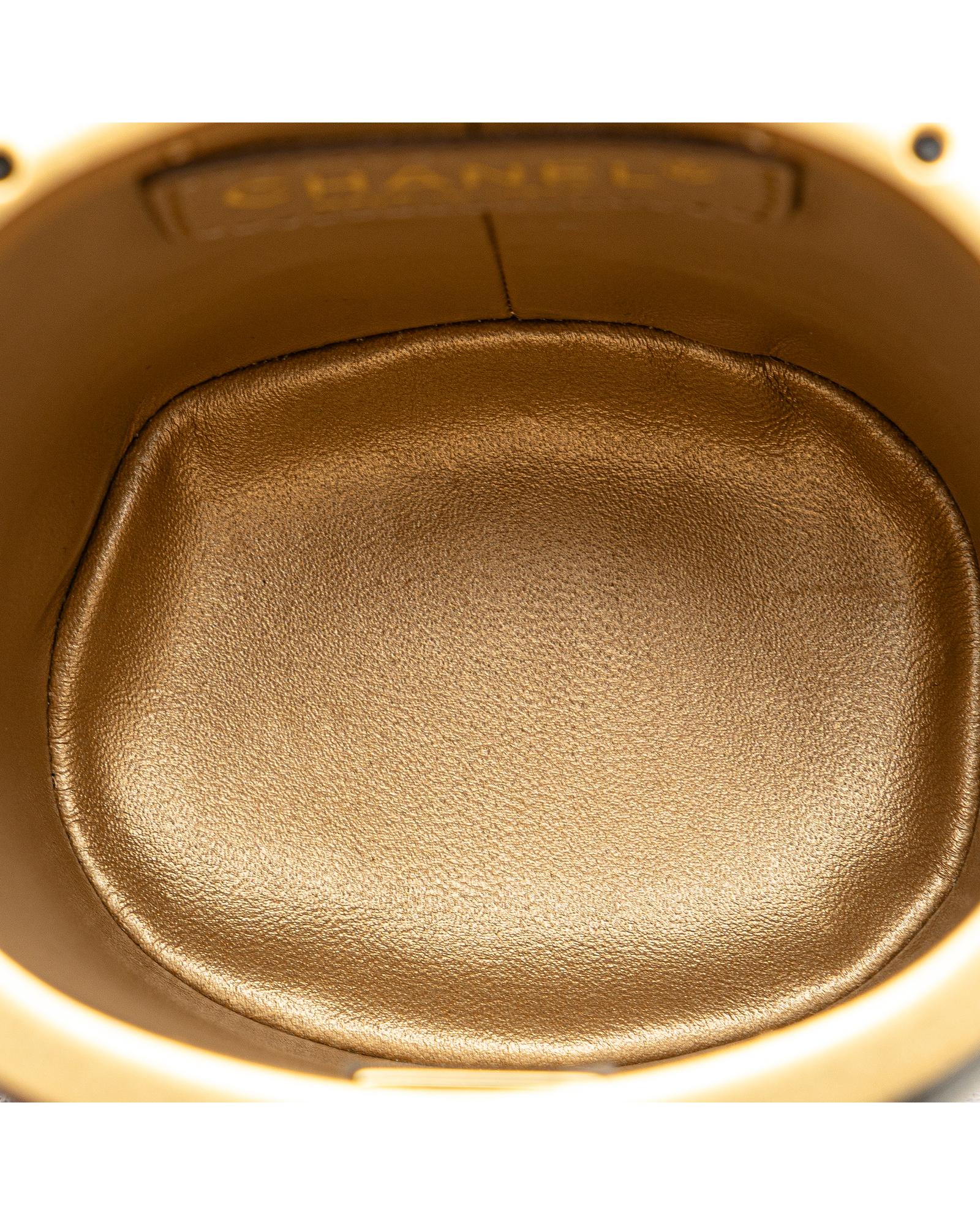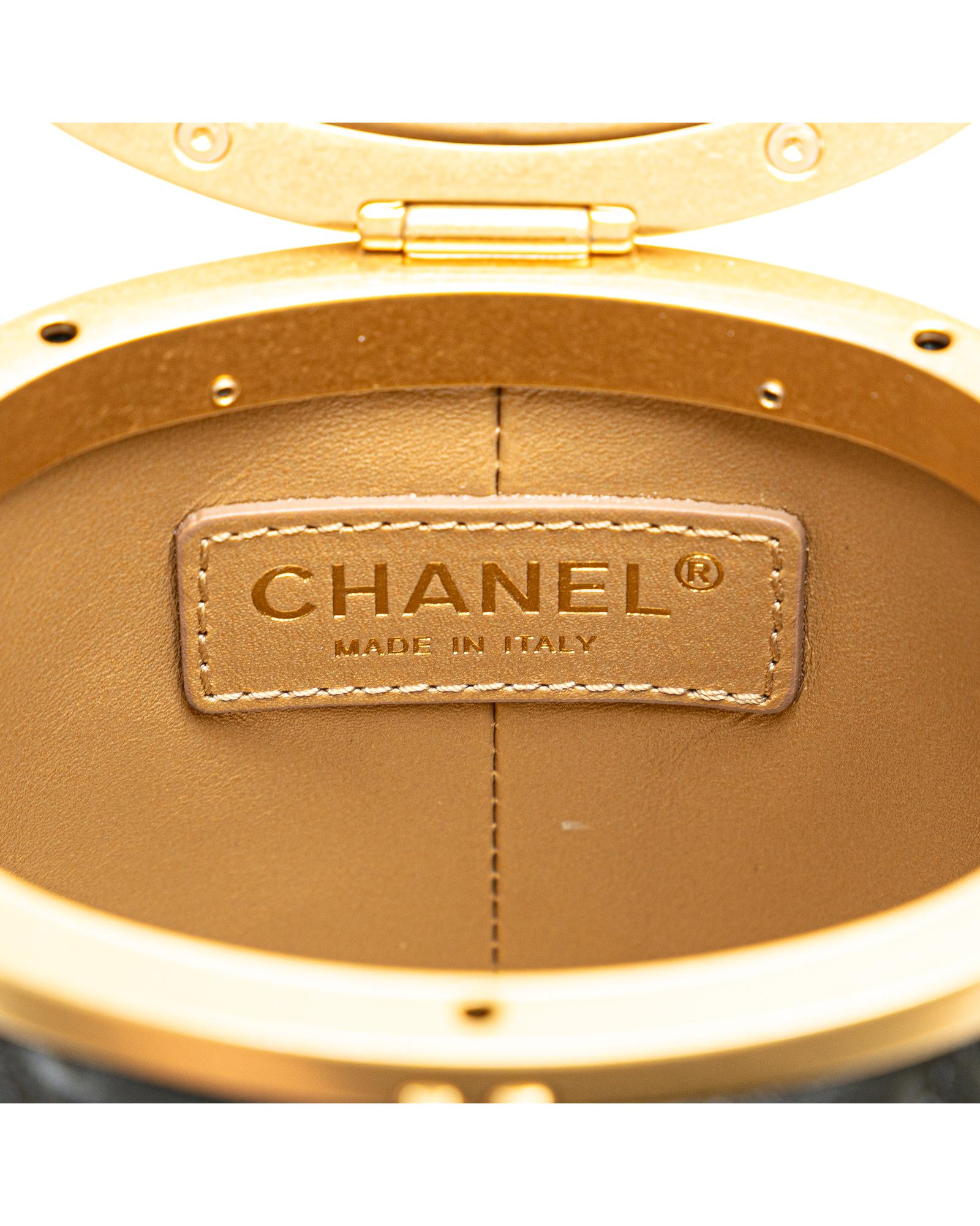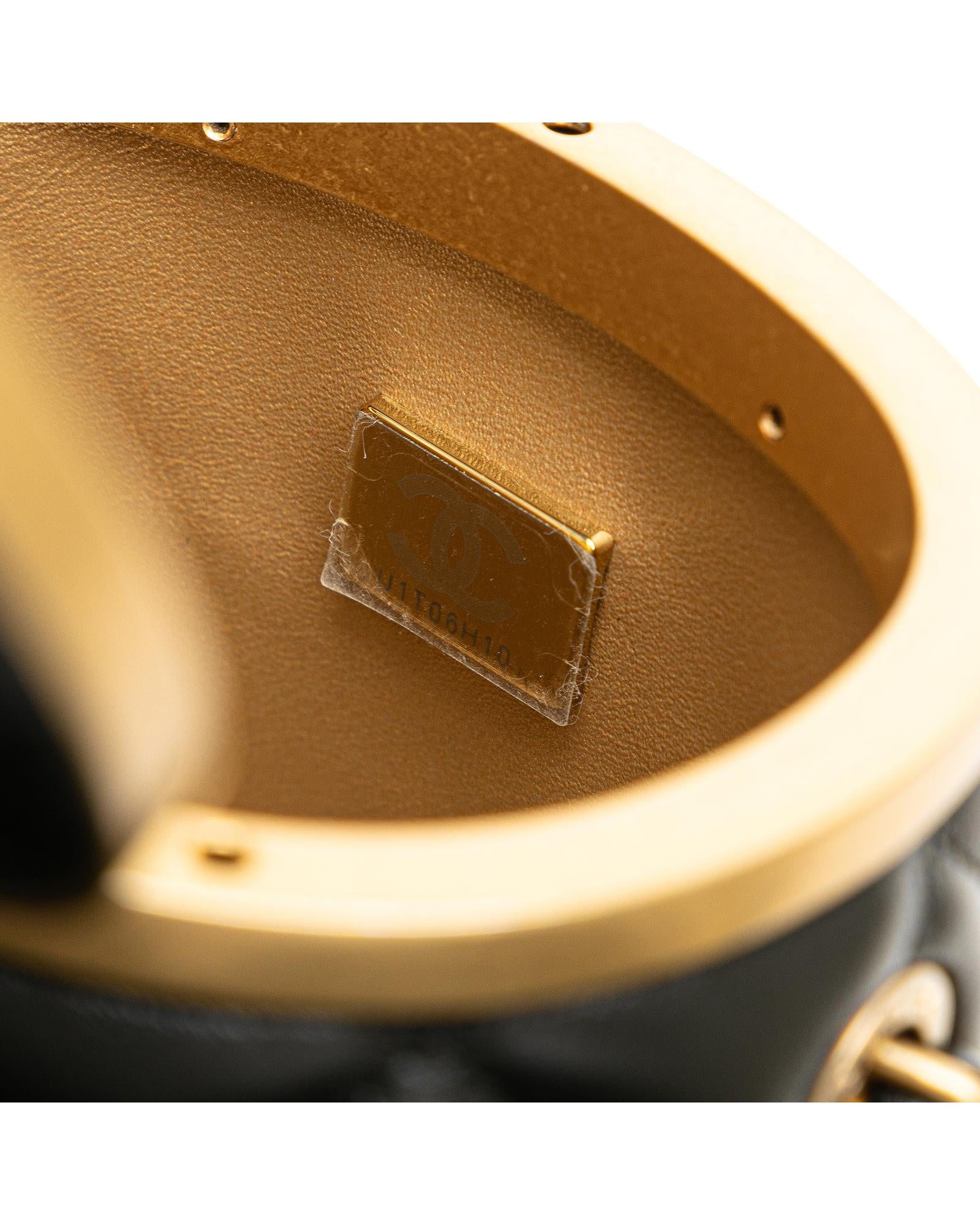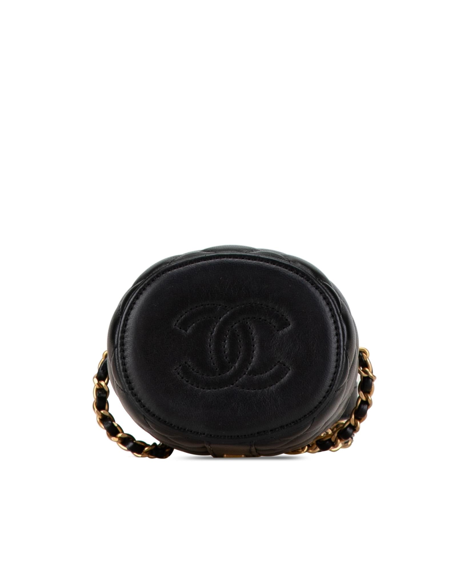 This crossbody bag features a quilted lambskin leather body a woven leather chain strap a top clasp closure and an interior mirror.Brand: Chanel Vintage