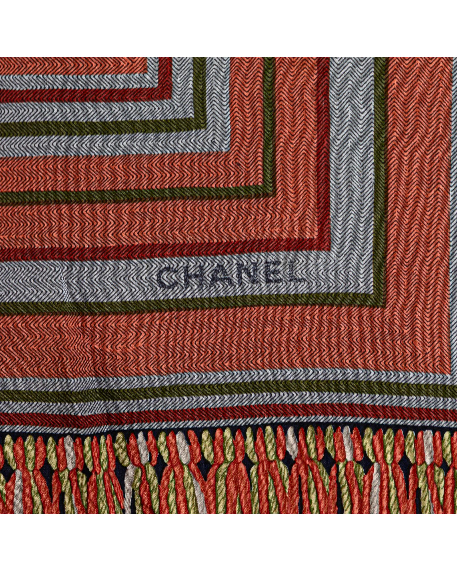 This scarf features a tweed print in 100% silk.Brand: Chanel Vintage
