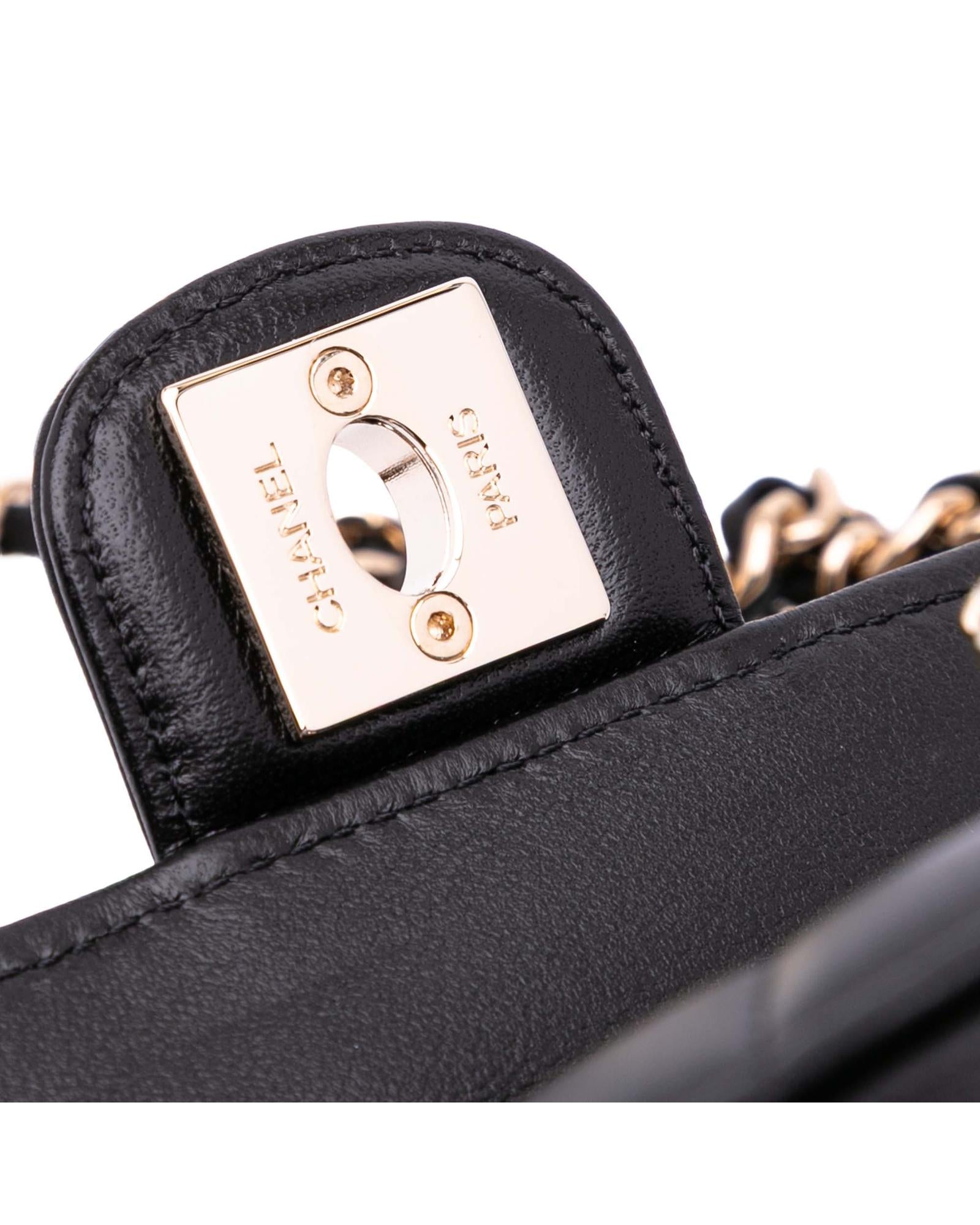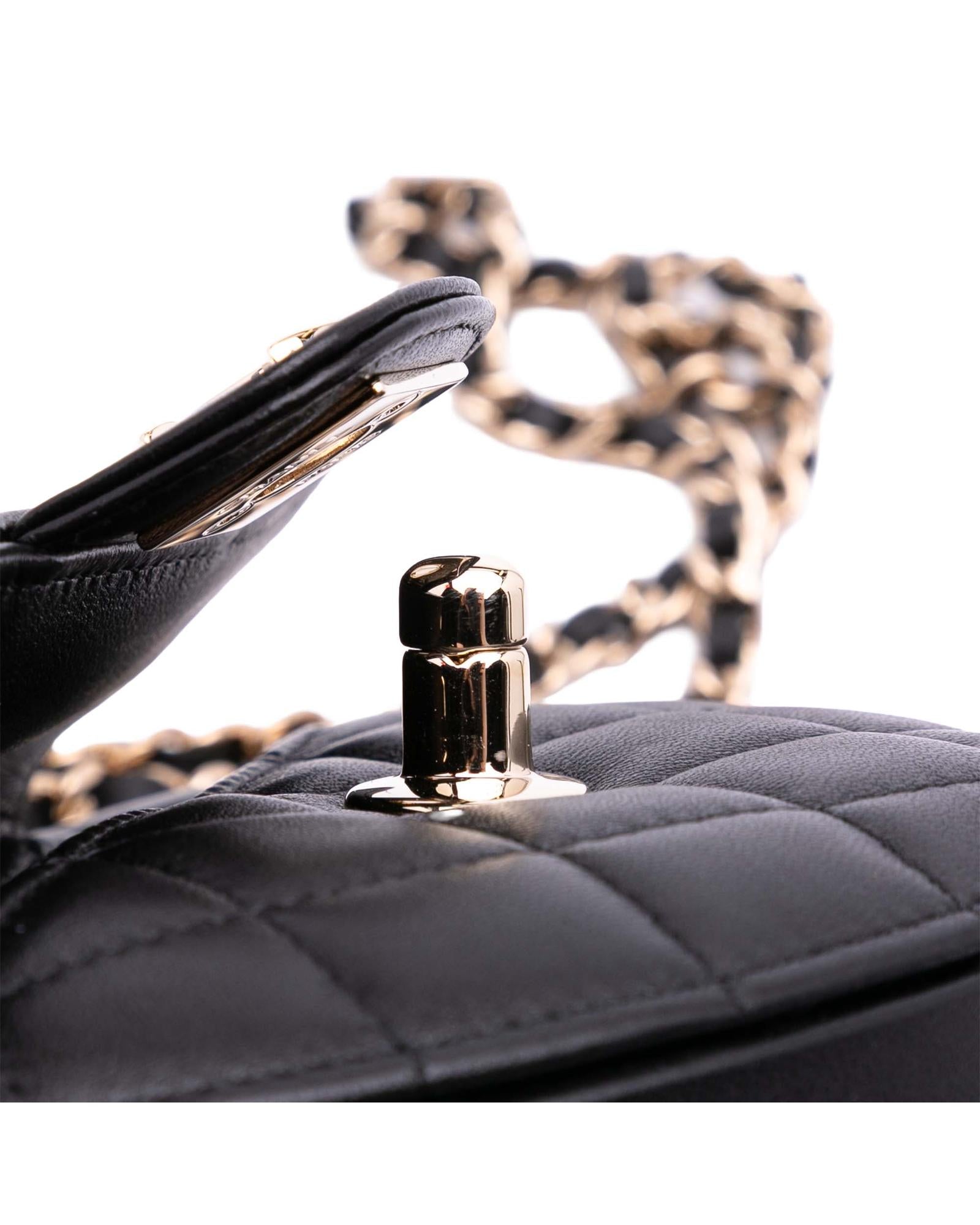 This crossbody bag features a quilted lambskin leather body a leather woven chain shoulder strap a zip-around closure an exterior front flap pocket with CC turn-lock closure and an exterior back slip pocket.Brand: Chanel Vintage