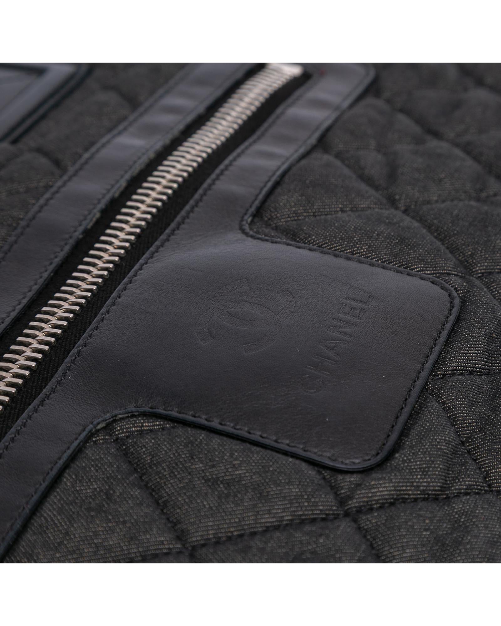 Pre-owned Quilted Denim Tote Bag with Top Handles and Exterior Pocket