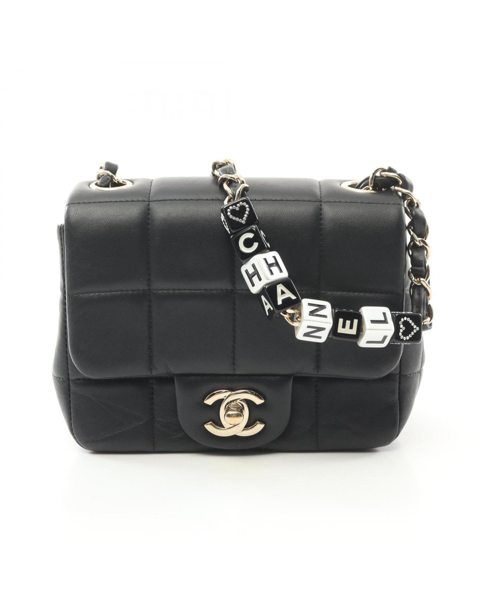 Pre-owned Quilted Leather Shoulder Bag with Chain Detail and Letter Embellishments