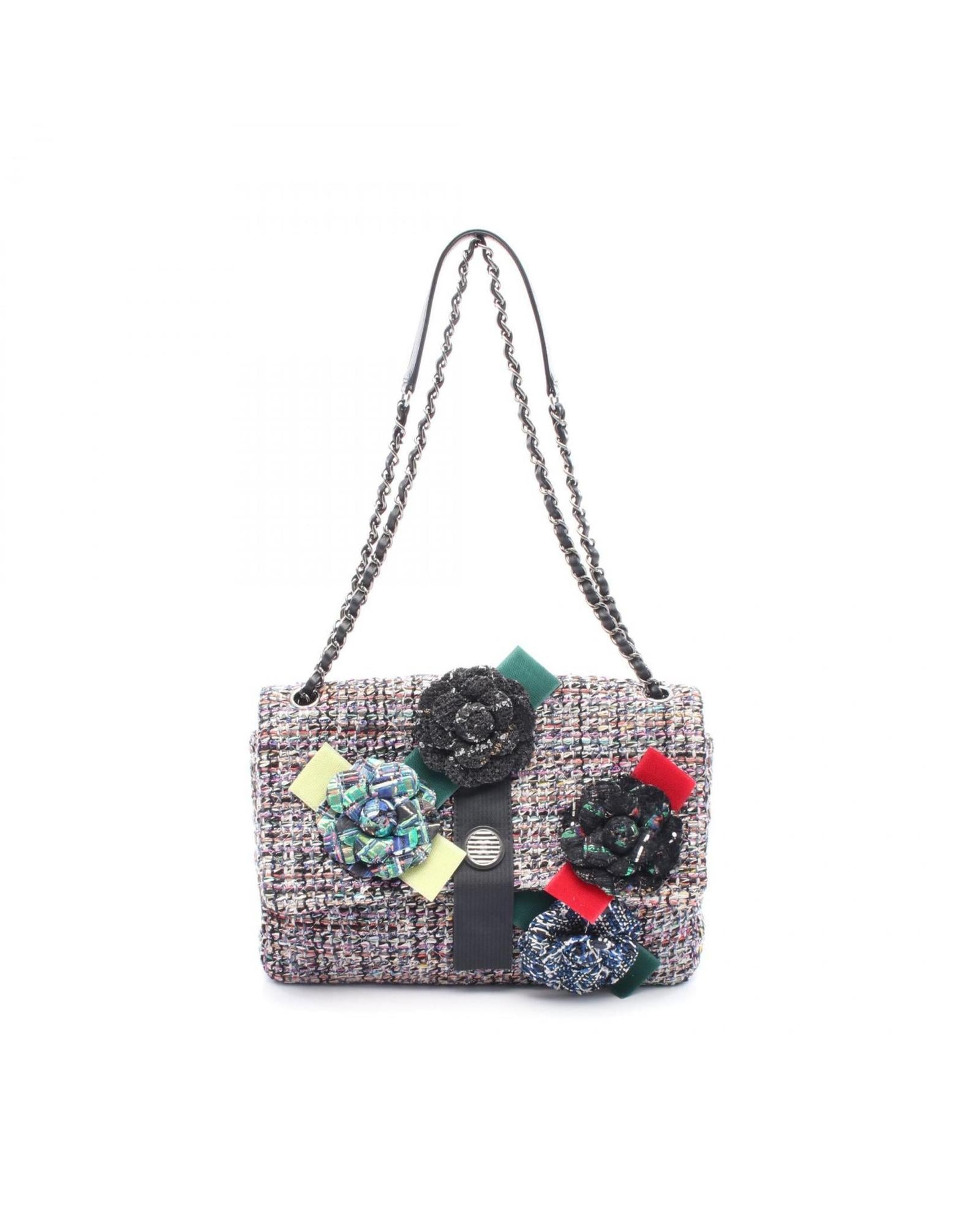 Pre-owned Elegant Shoulder Bag with Chain Strap and Decorative Flower Details