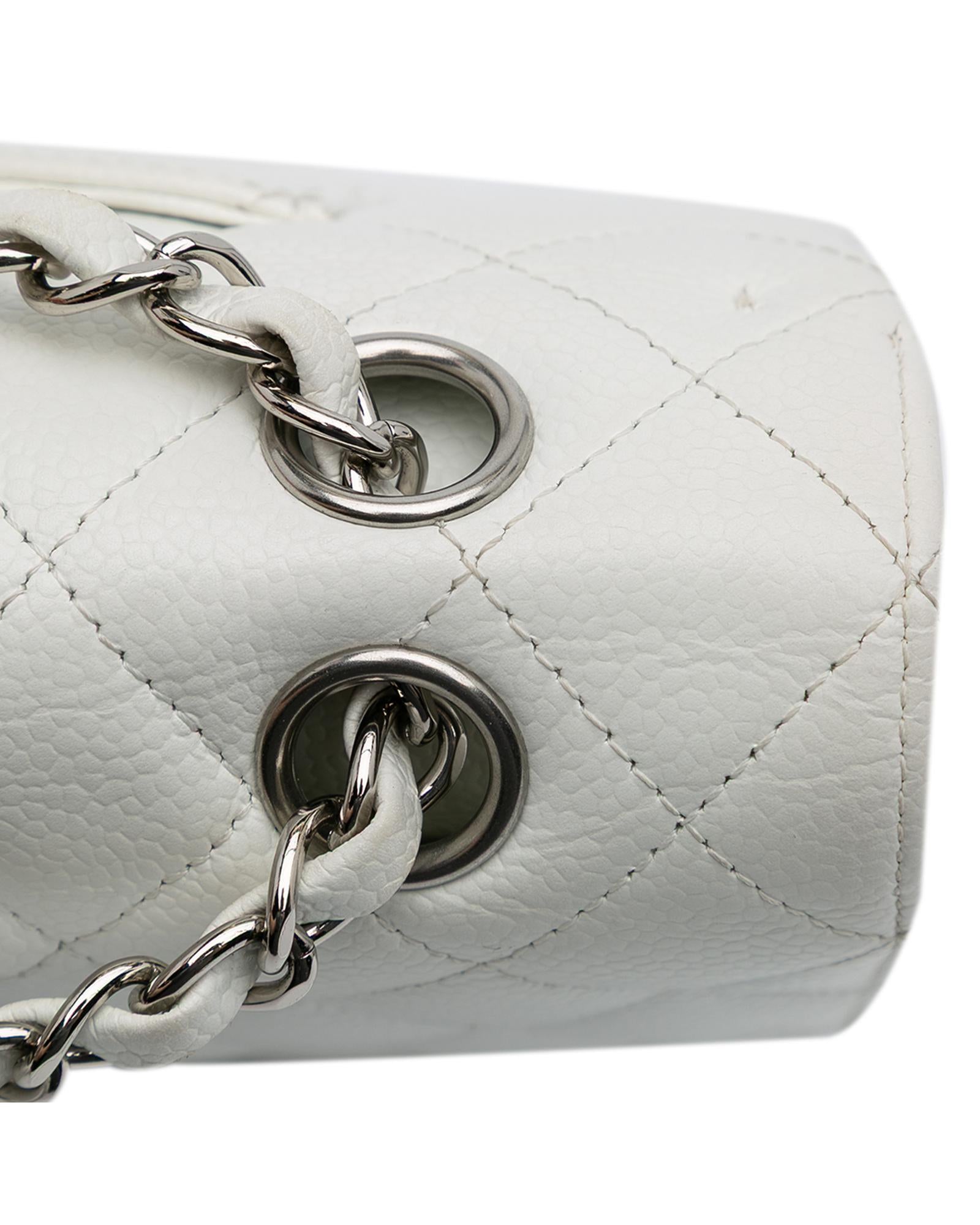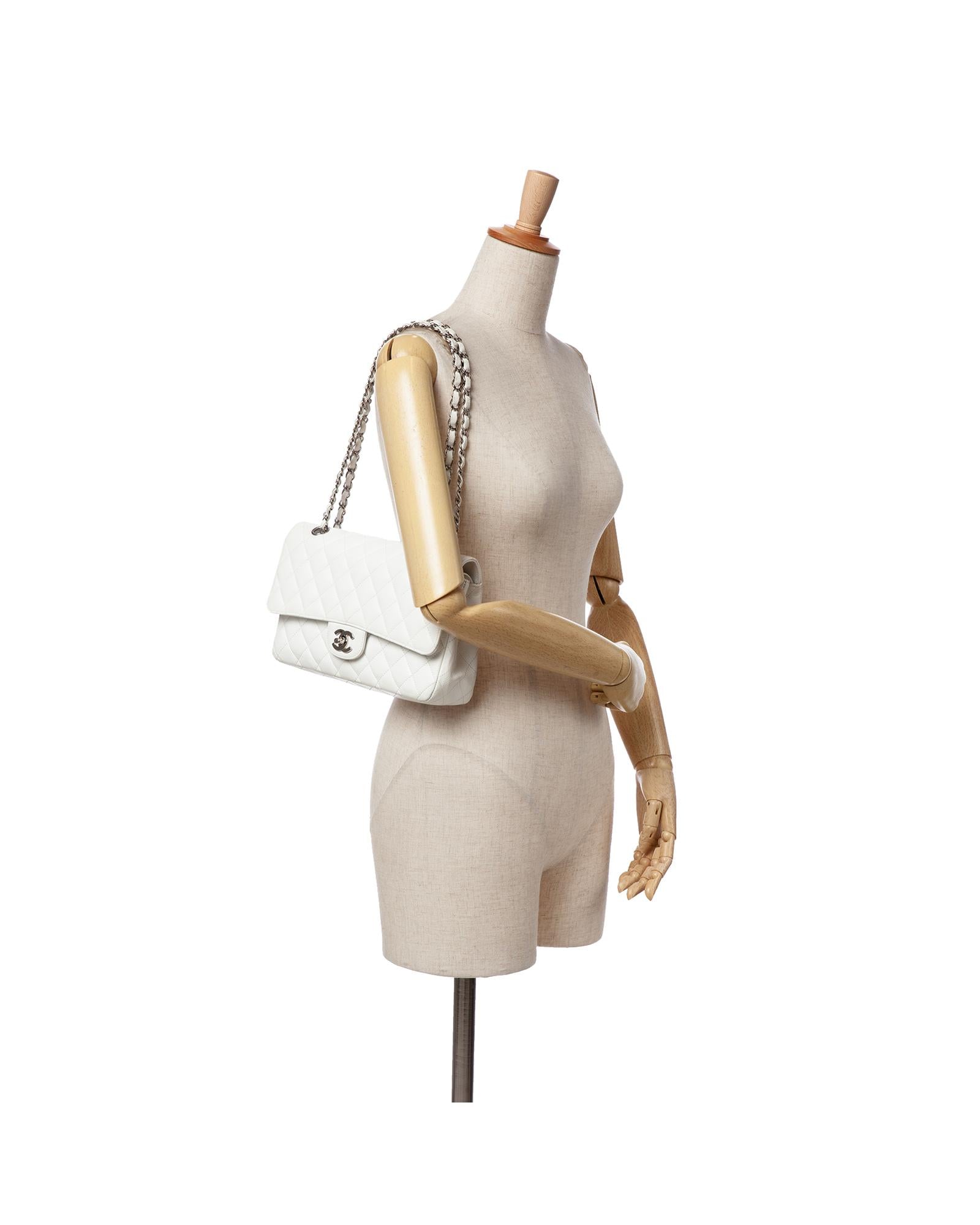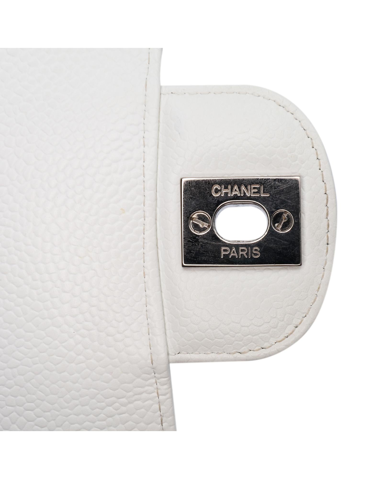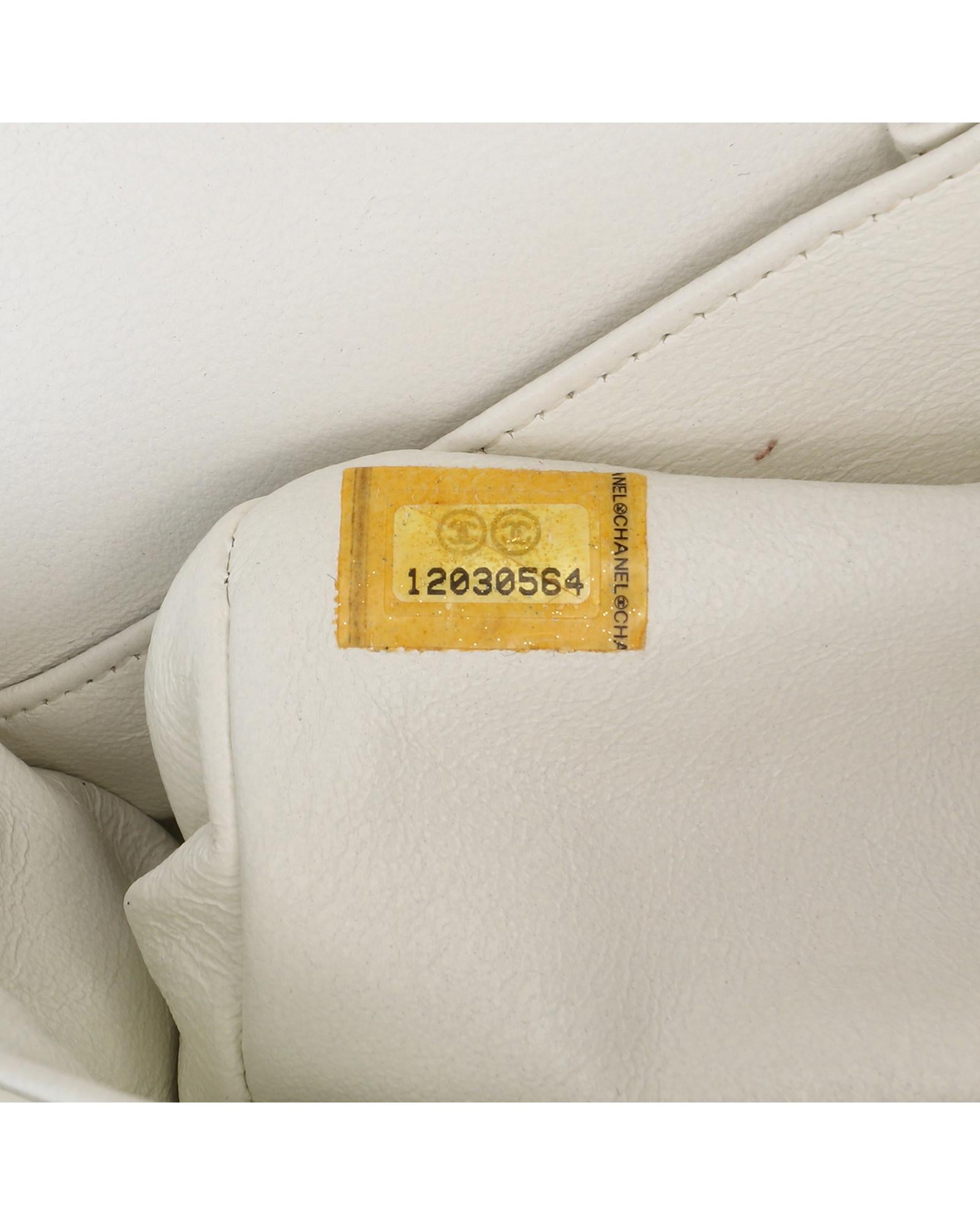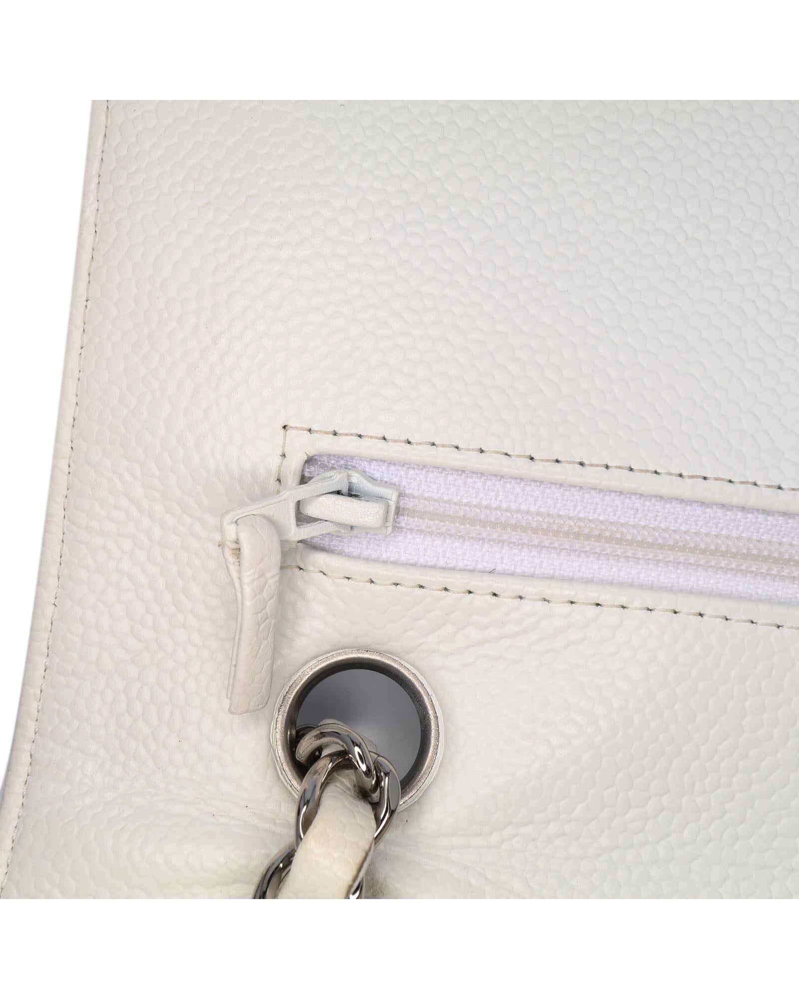 This shoulder bag features a quilted caviar body leather woven chain straps double front flaps with interlocking Cs and a twist lock closure an exterior back slip pocket and interior slip pockets.Brand: Chanel Vintage