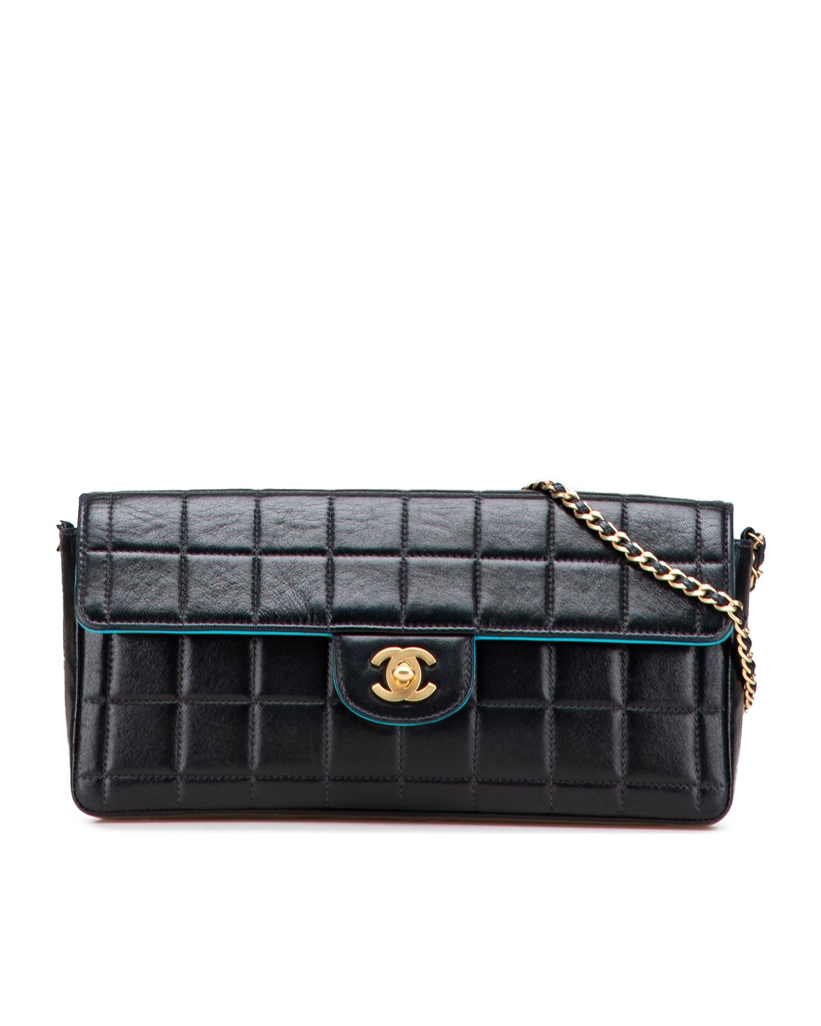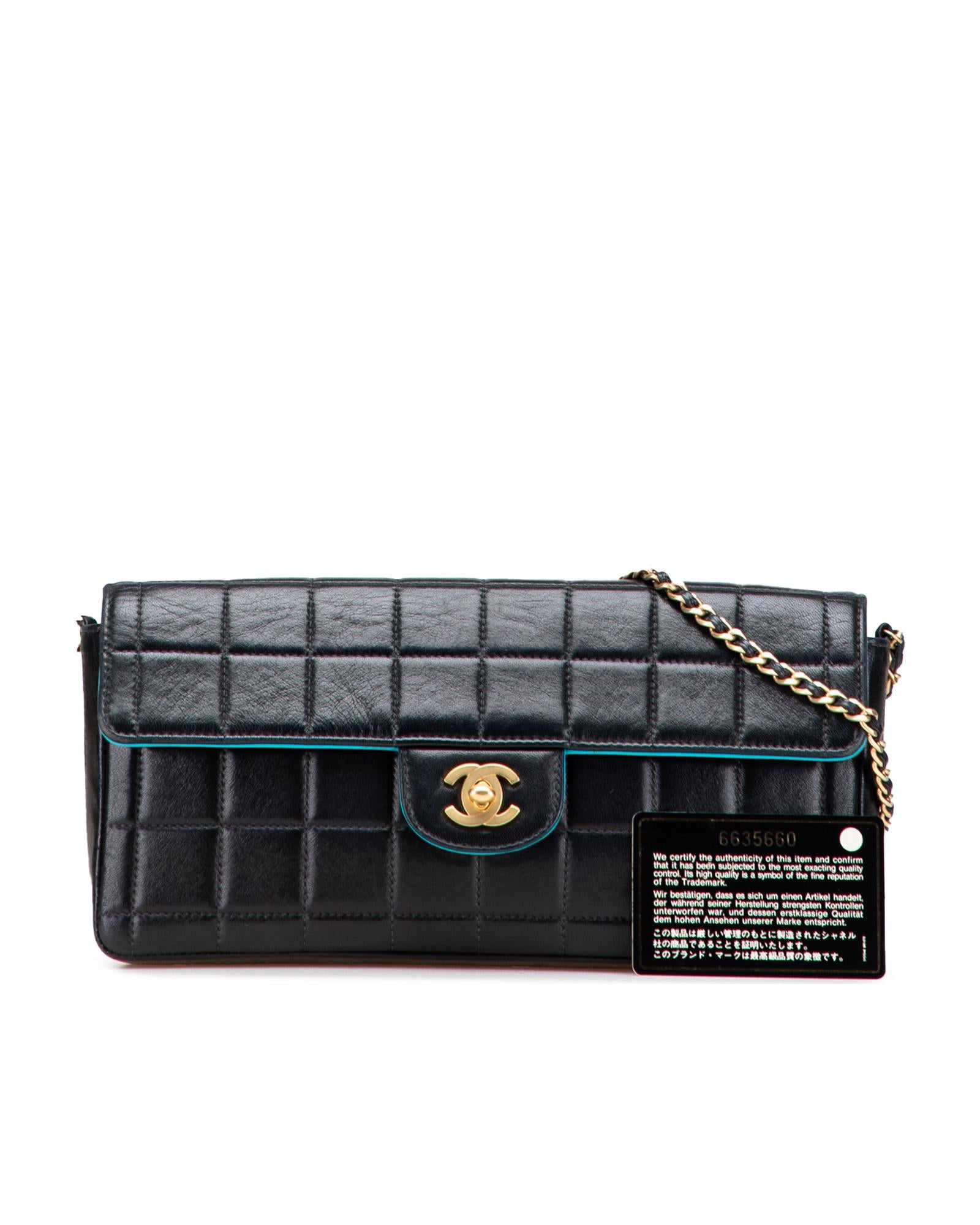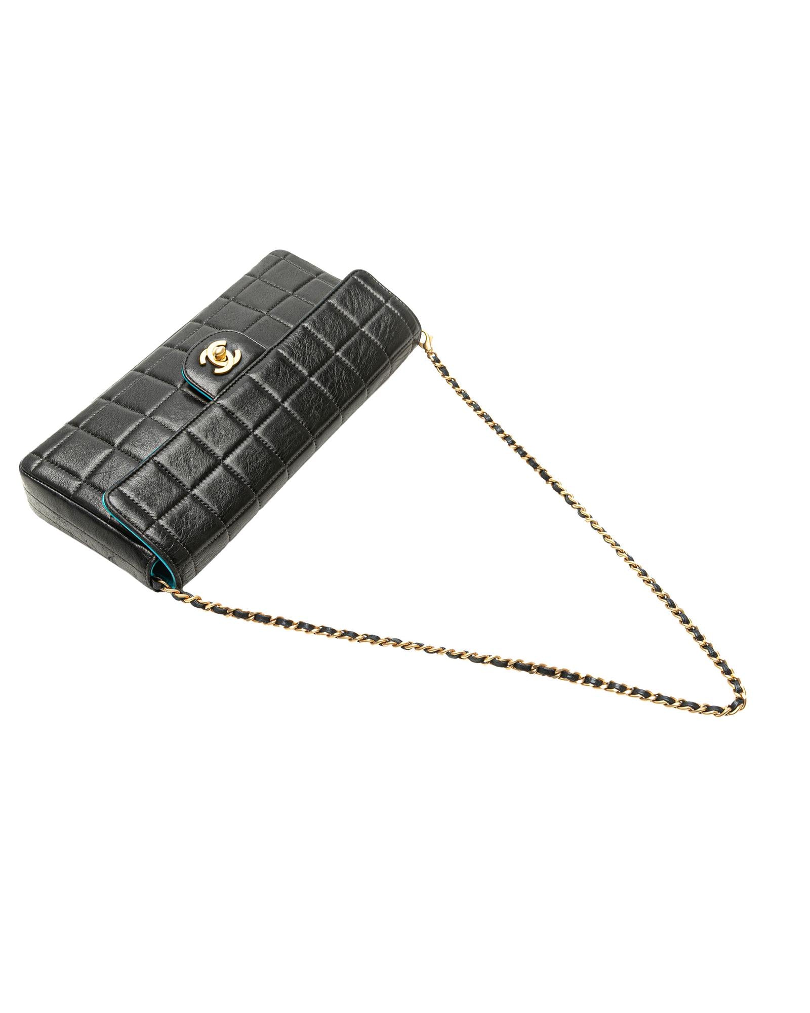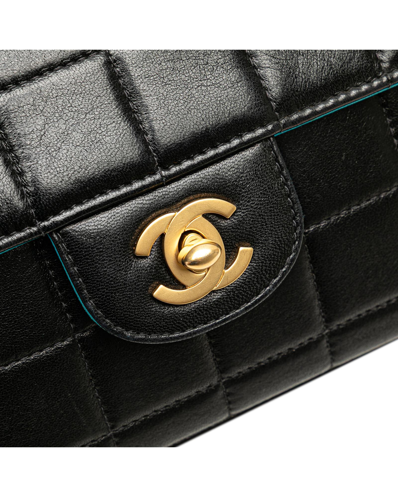 This shoulder bag features a quilted lambskin leather body a leather woven chain link shoulder strap a front flap with interlocking Cs with a twist lock closure and interior slip pockets.Brand: Chanel Vintage