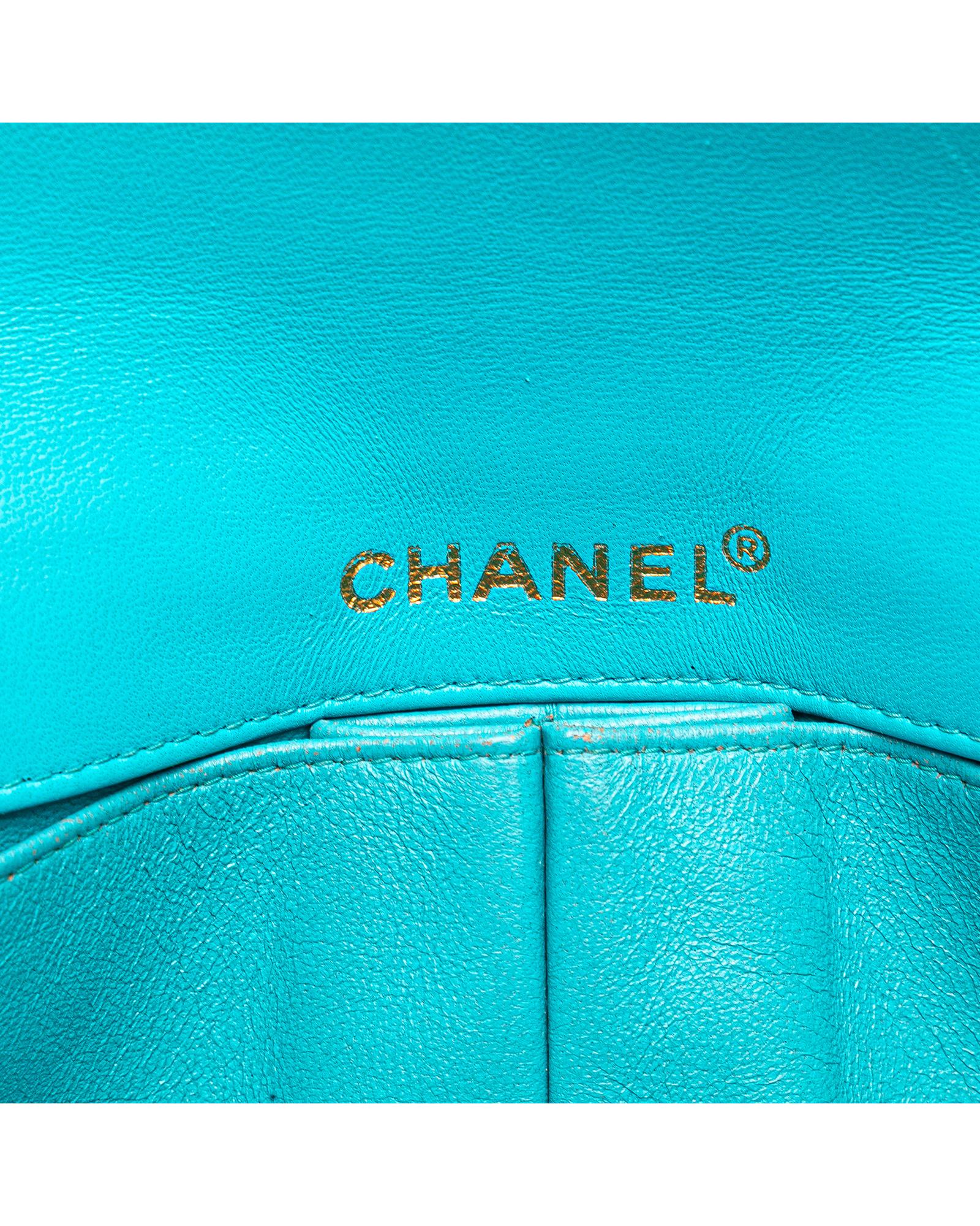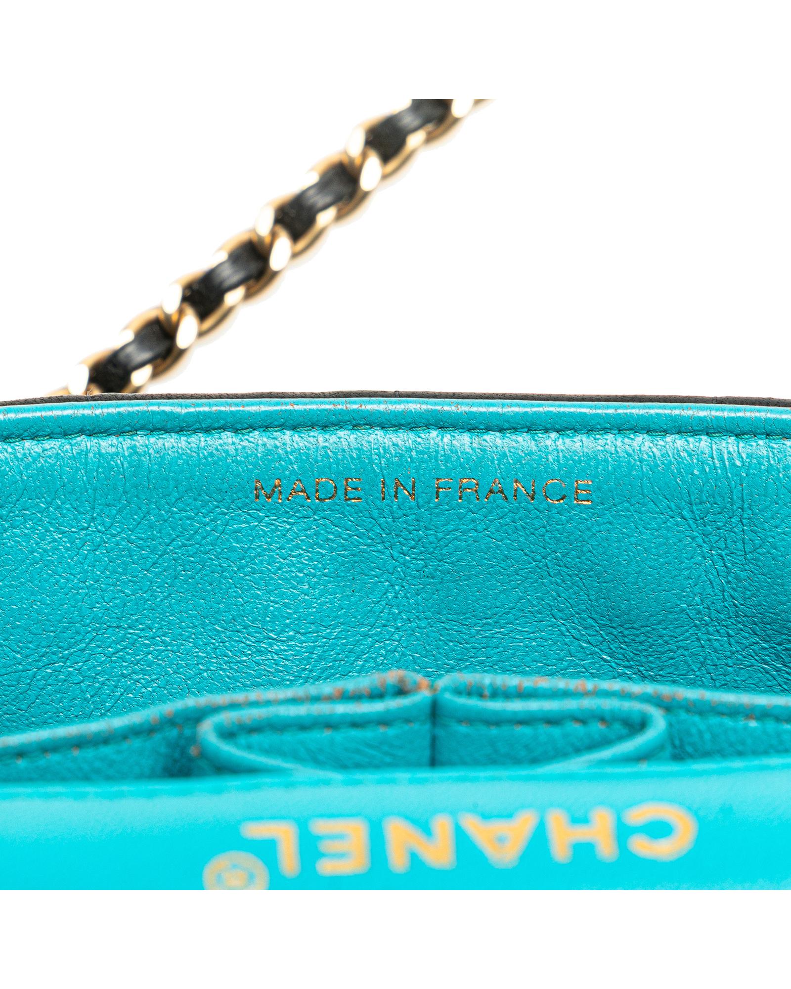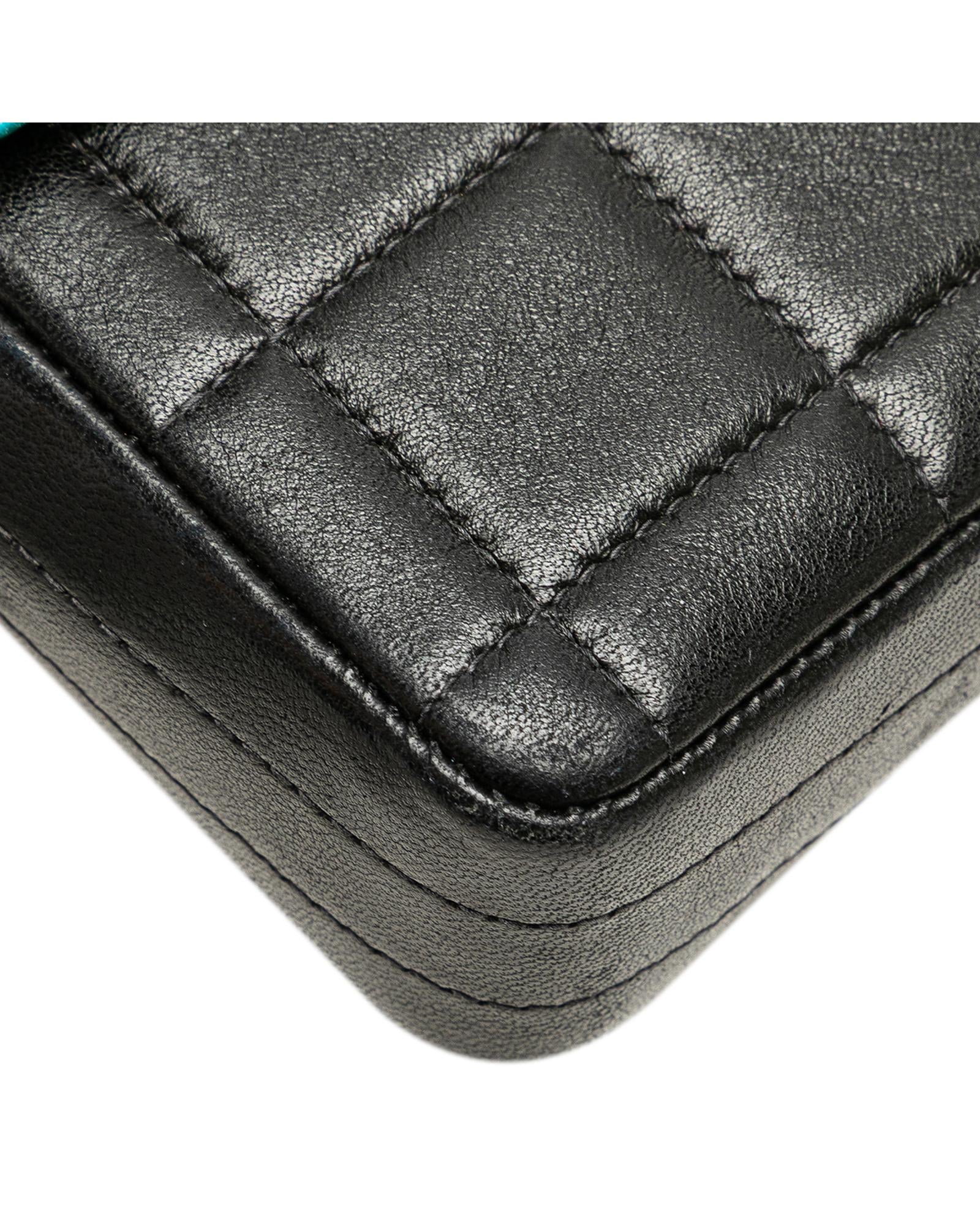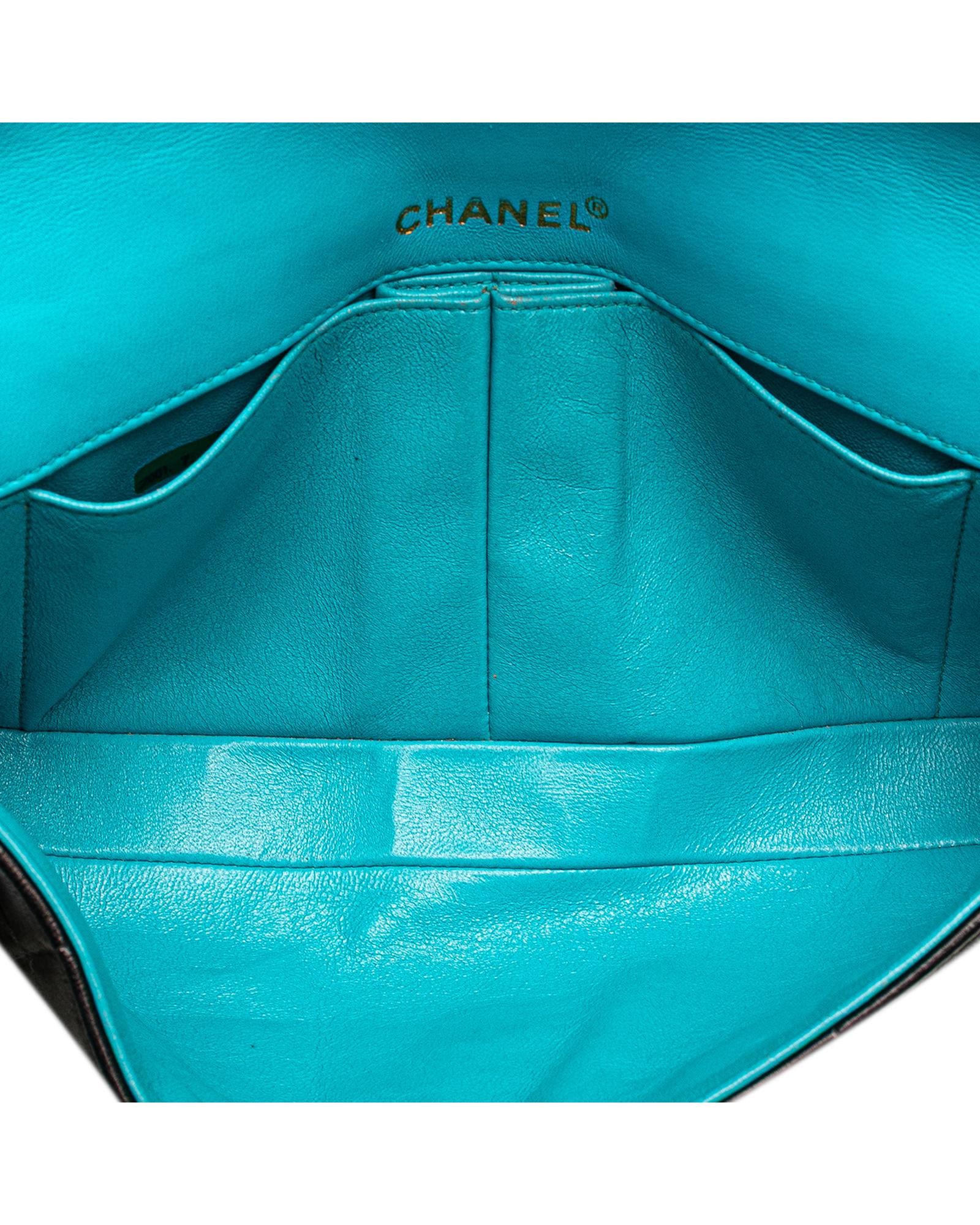 This shoulder bag features a quilted lambskin leather body a leather woven chain link shoulder strap a front flap with interlocking Cs with a twist lock closure and interior slip pockets.Brand: Chanel Vintage