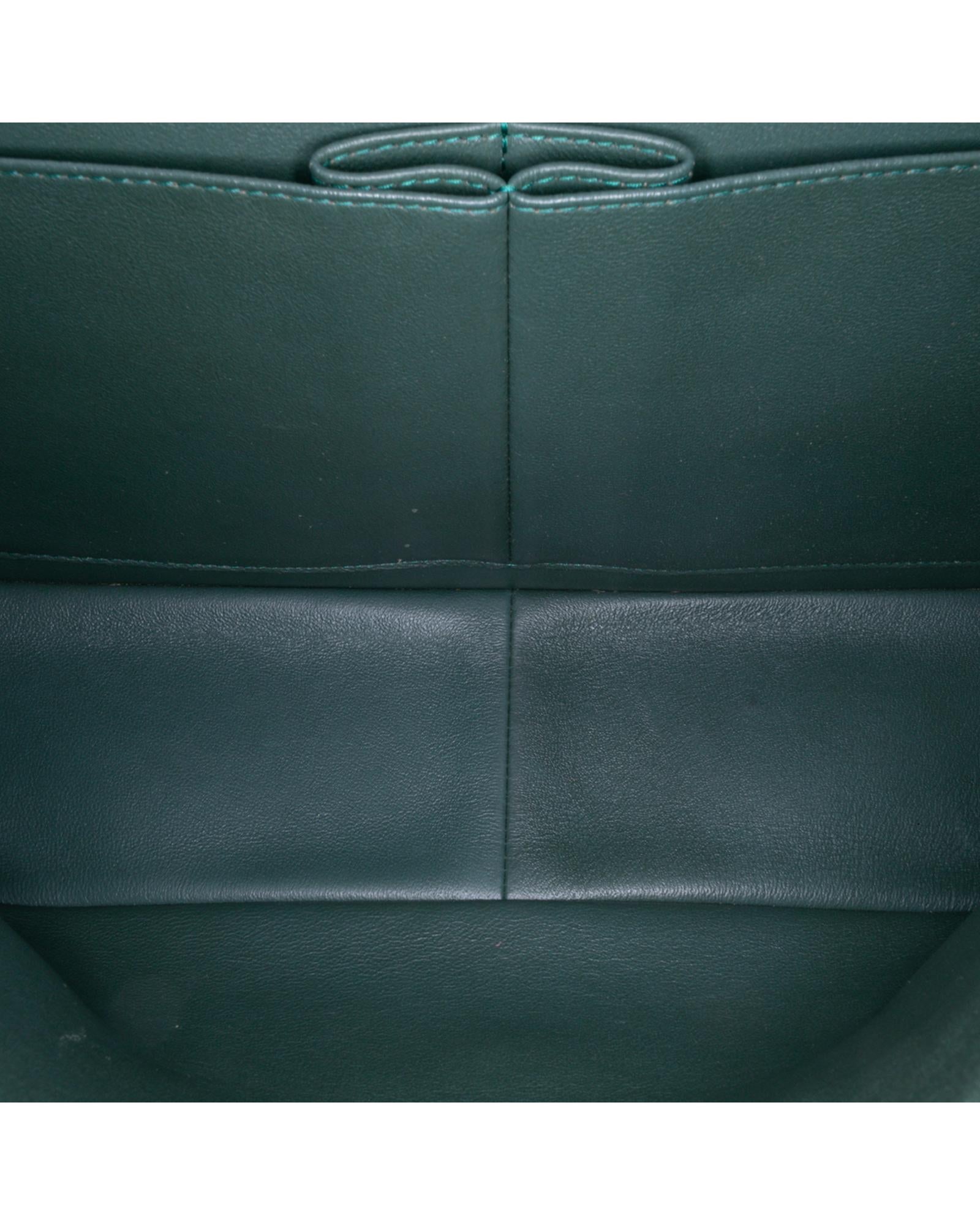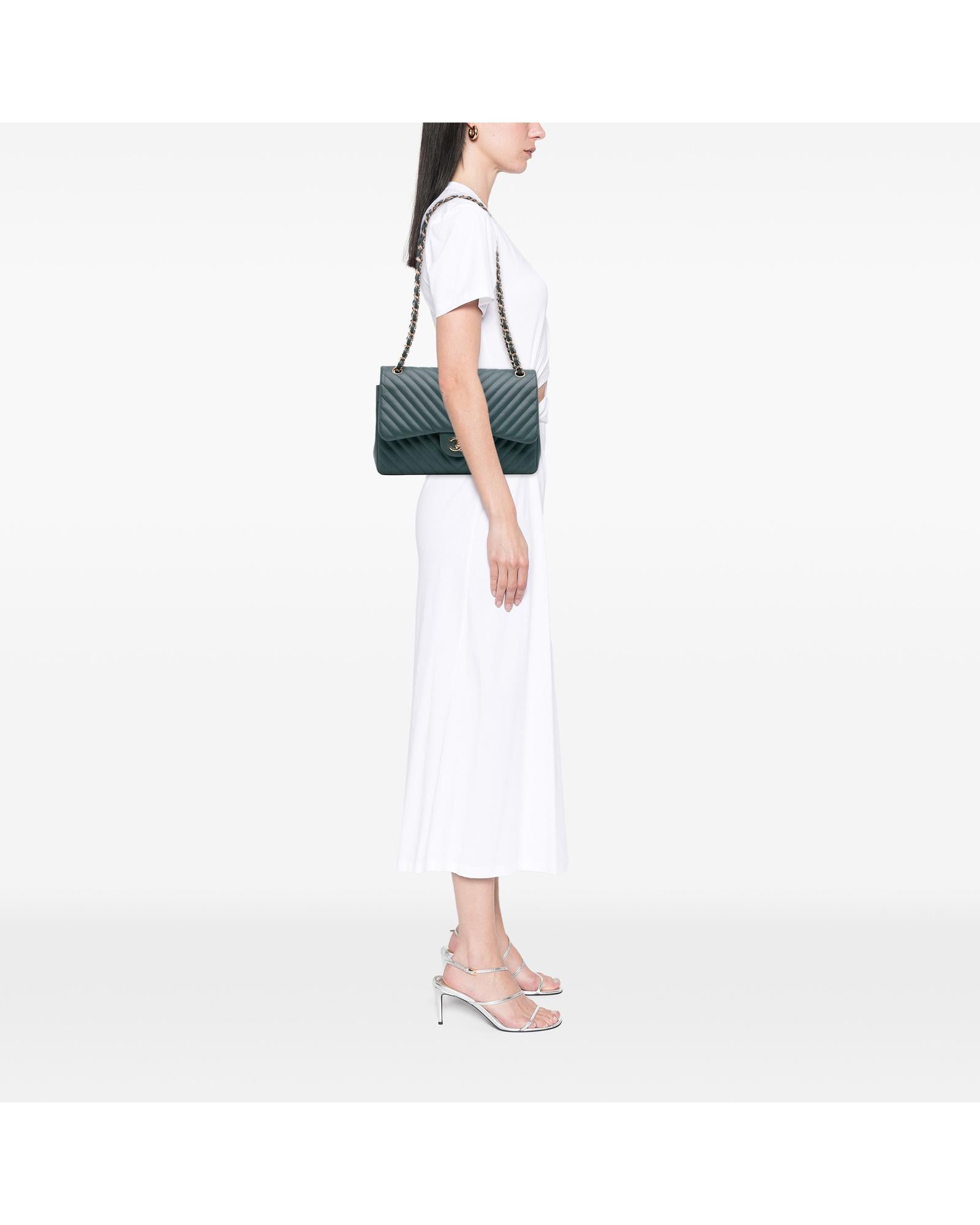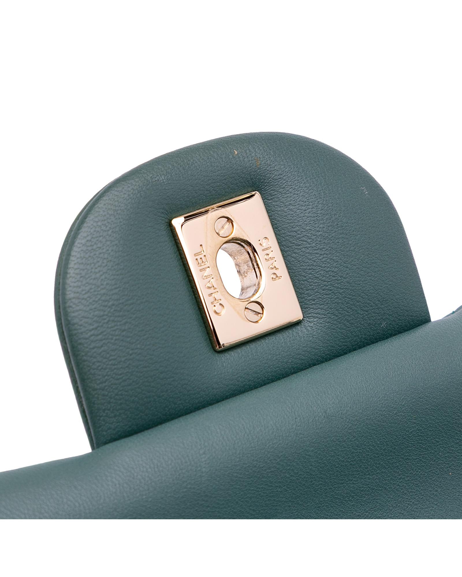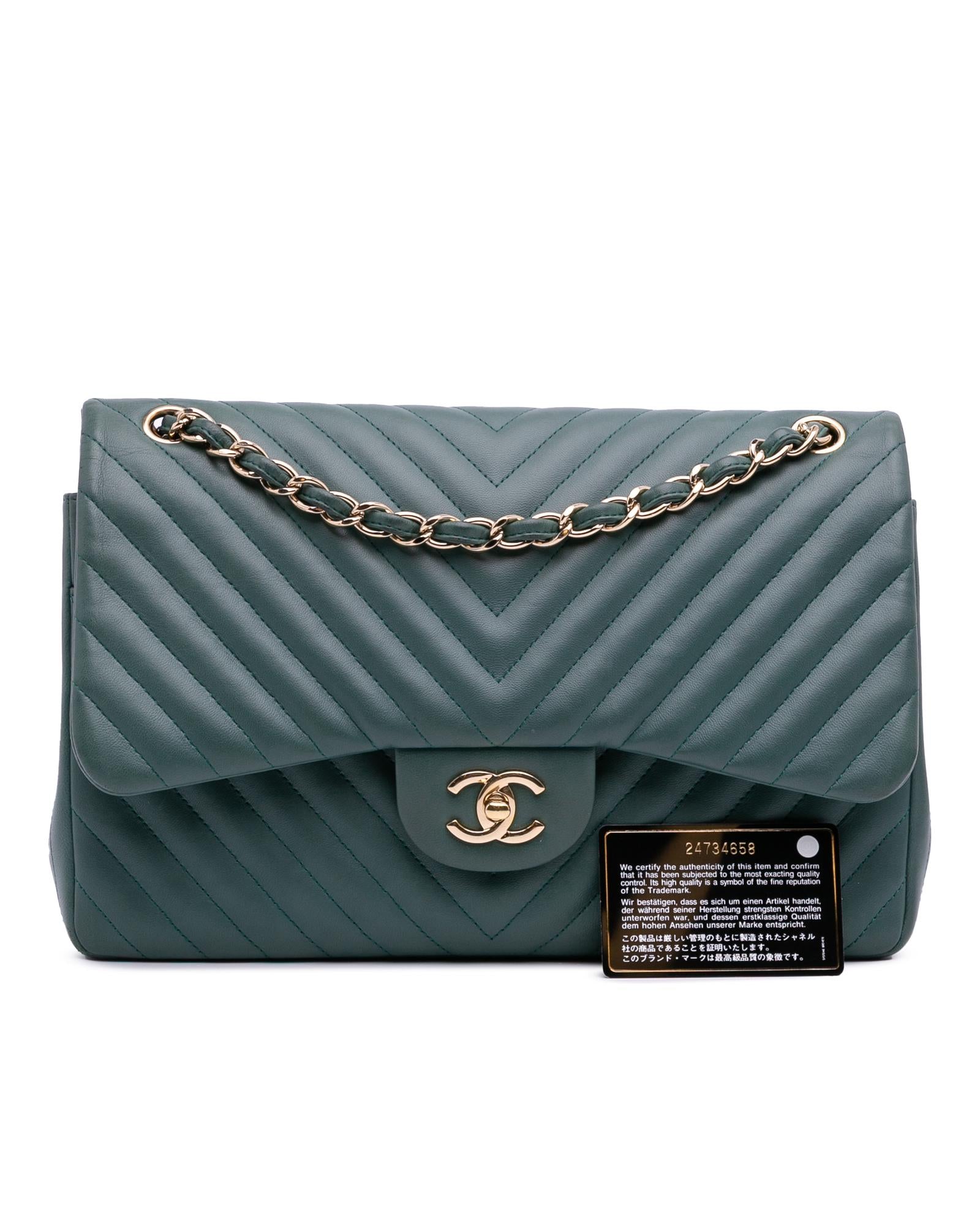 This shoulder bag features a quilted lambskin leather body leather-woven chain link shoulder strap double front flaps with interlocking Cs and twist lock closure an exterior back slip pocket and interior zip and slip pockets.Brand: Chanel Vintage