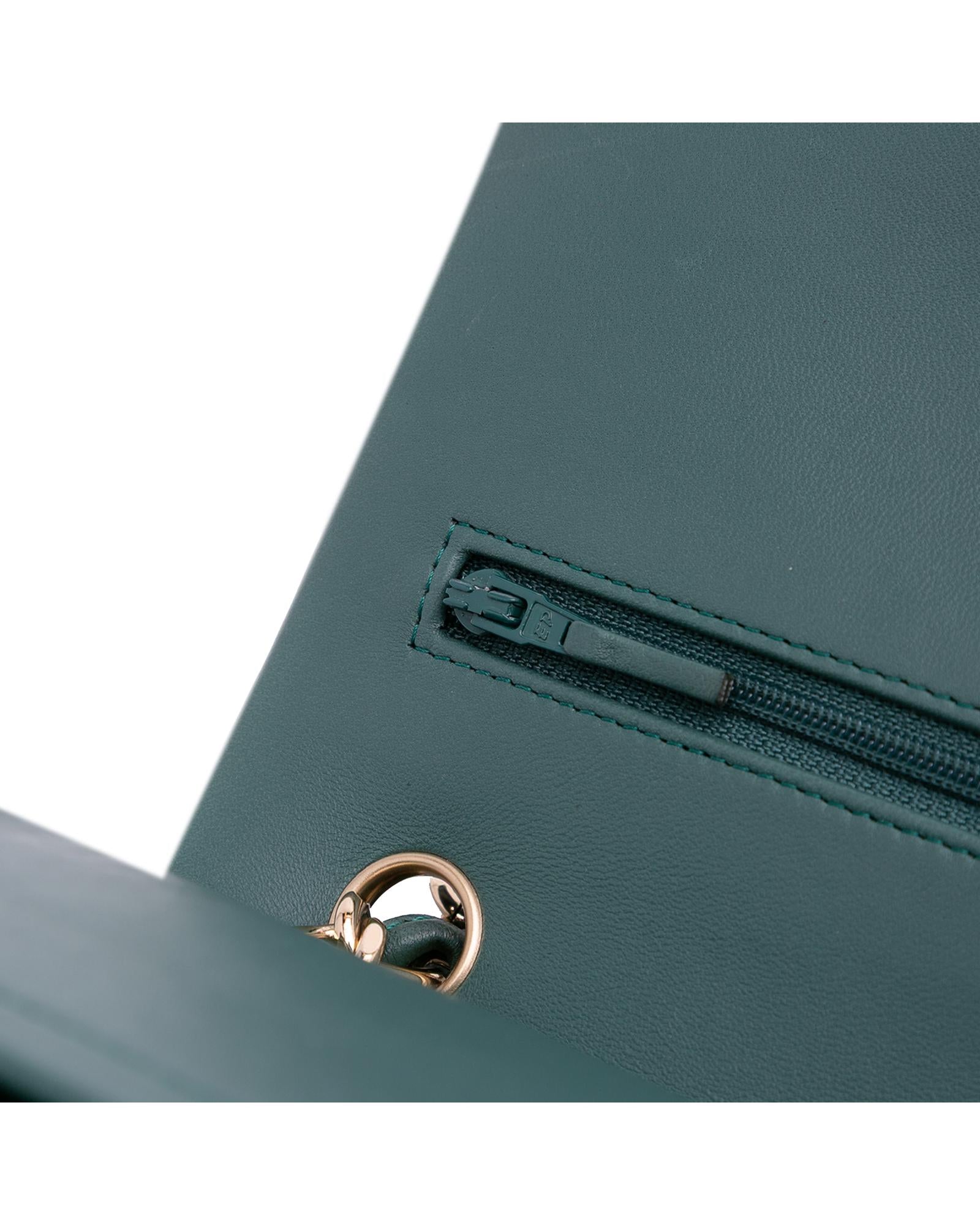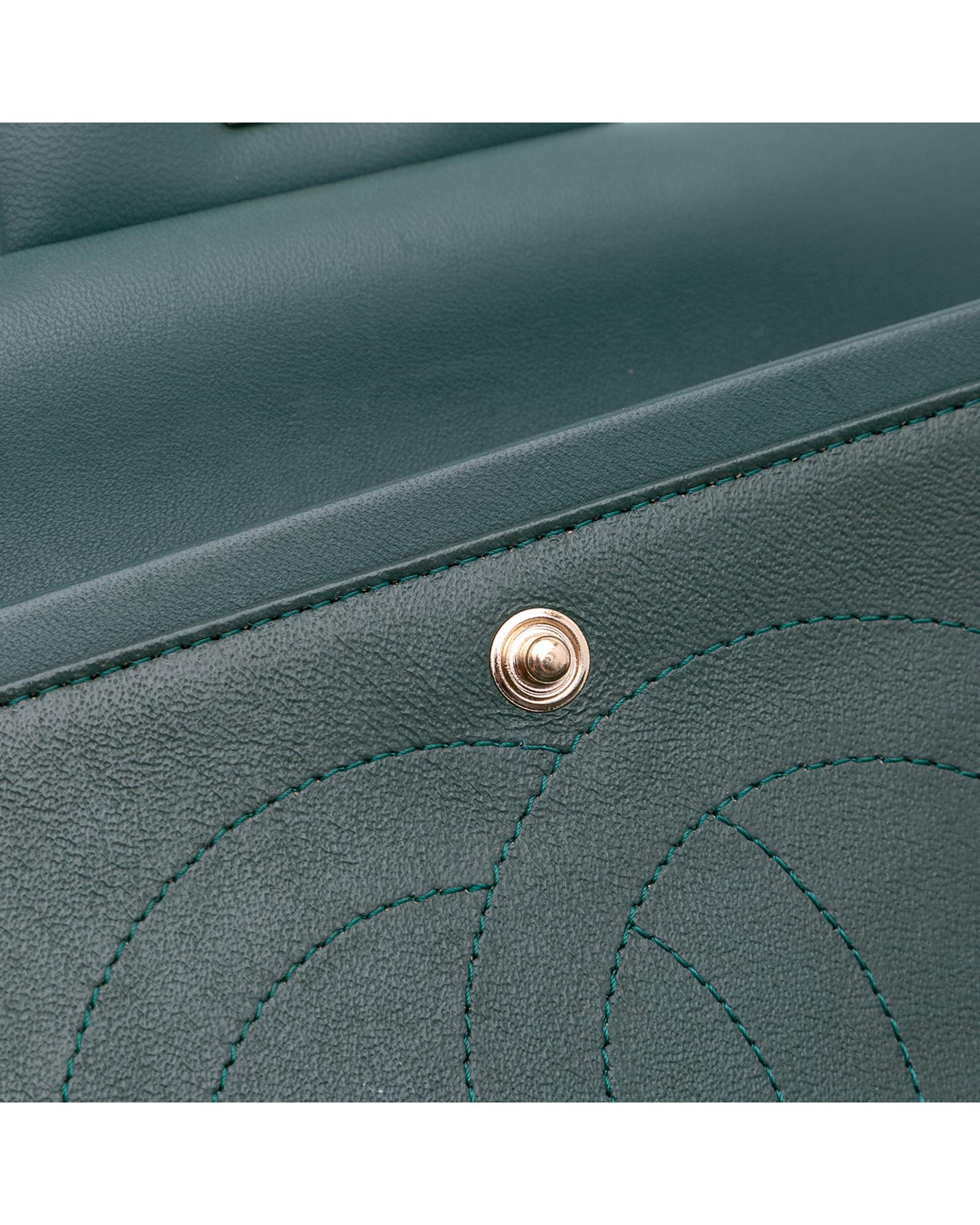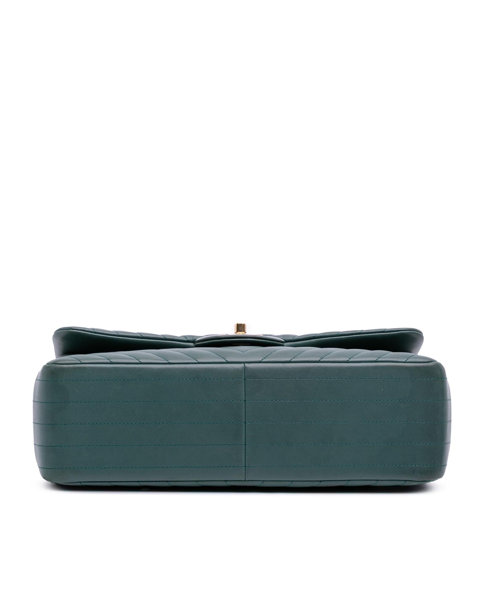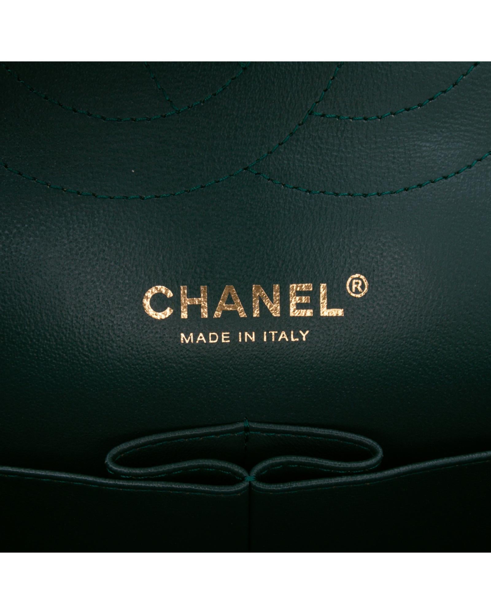 This shoulder bag features a quilted lambskin leather body leather-woven chain link shoulder strap double front flaps with interlocking Cs and twist lock closure an exterior back slip pocket and interior zip and slip pockets.Brand: Chanel Vintage