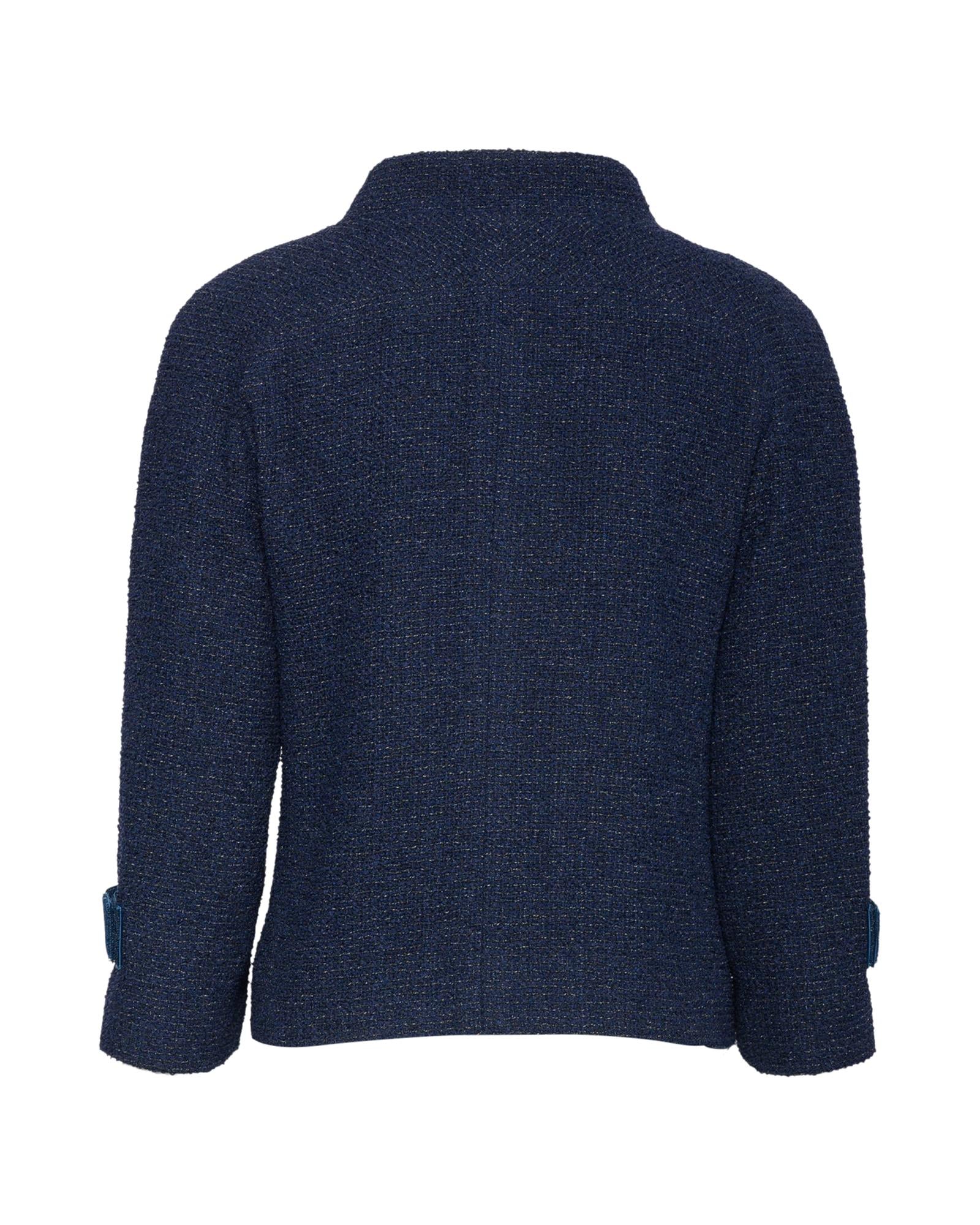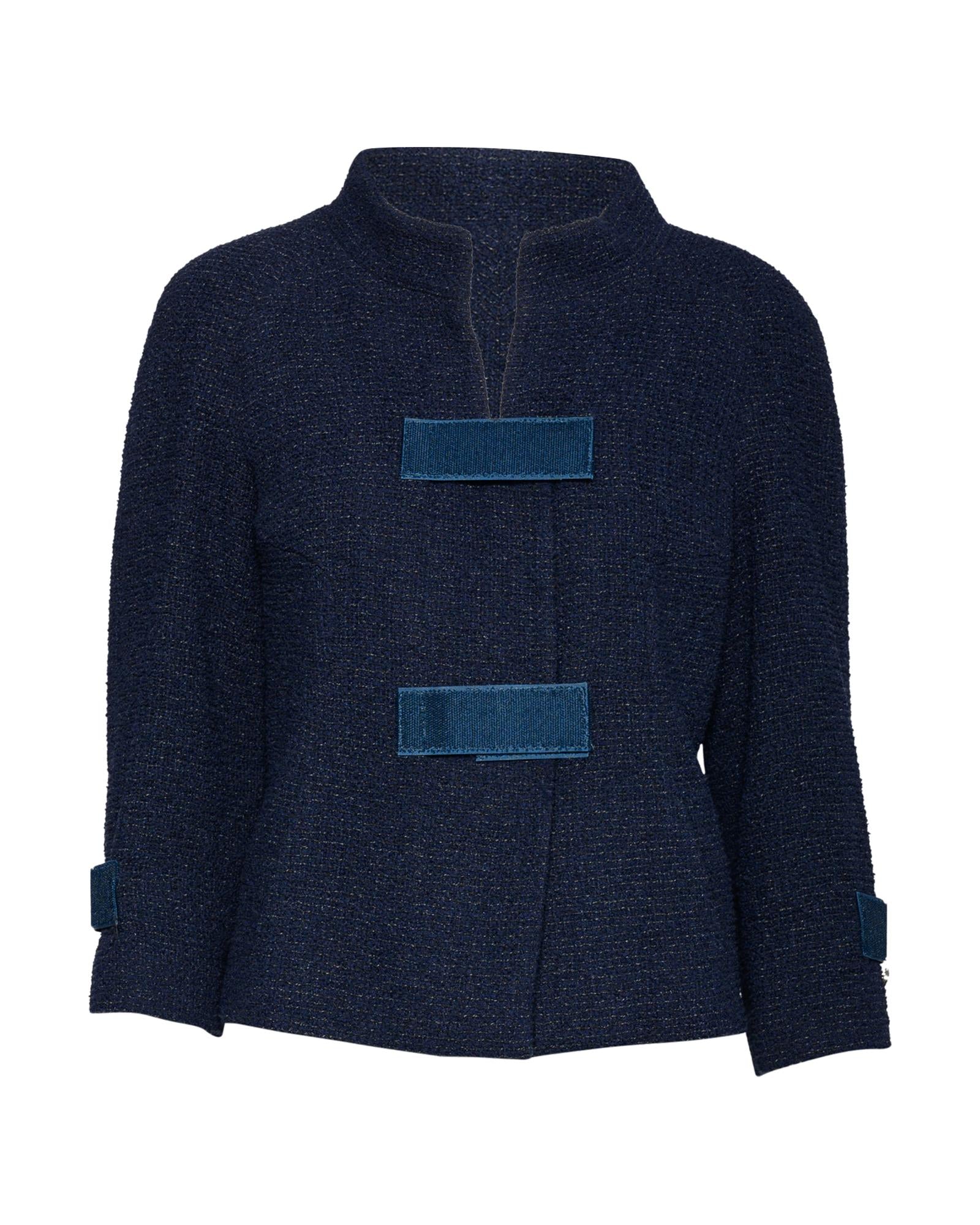 Elegant Textured Jacket with Stand Collar and Three-Quarter Sleeves