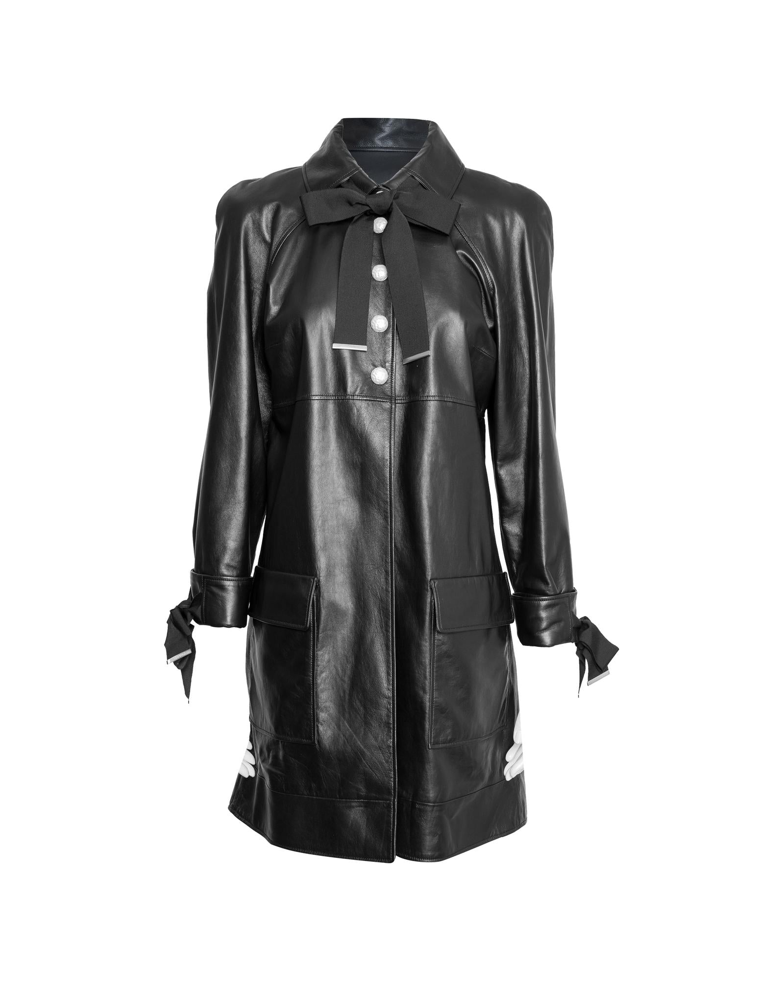 Elegant Button-Front Coat with Tie Detail and Flap Pockets