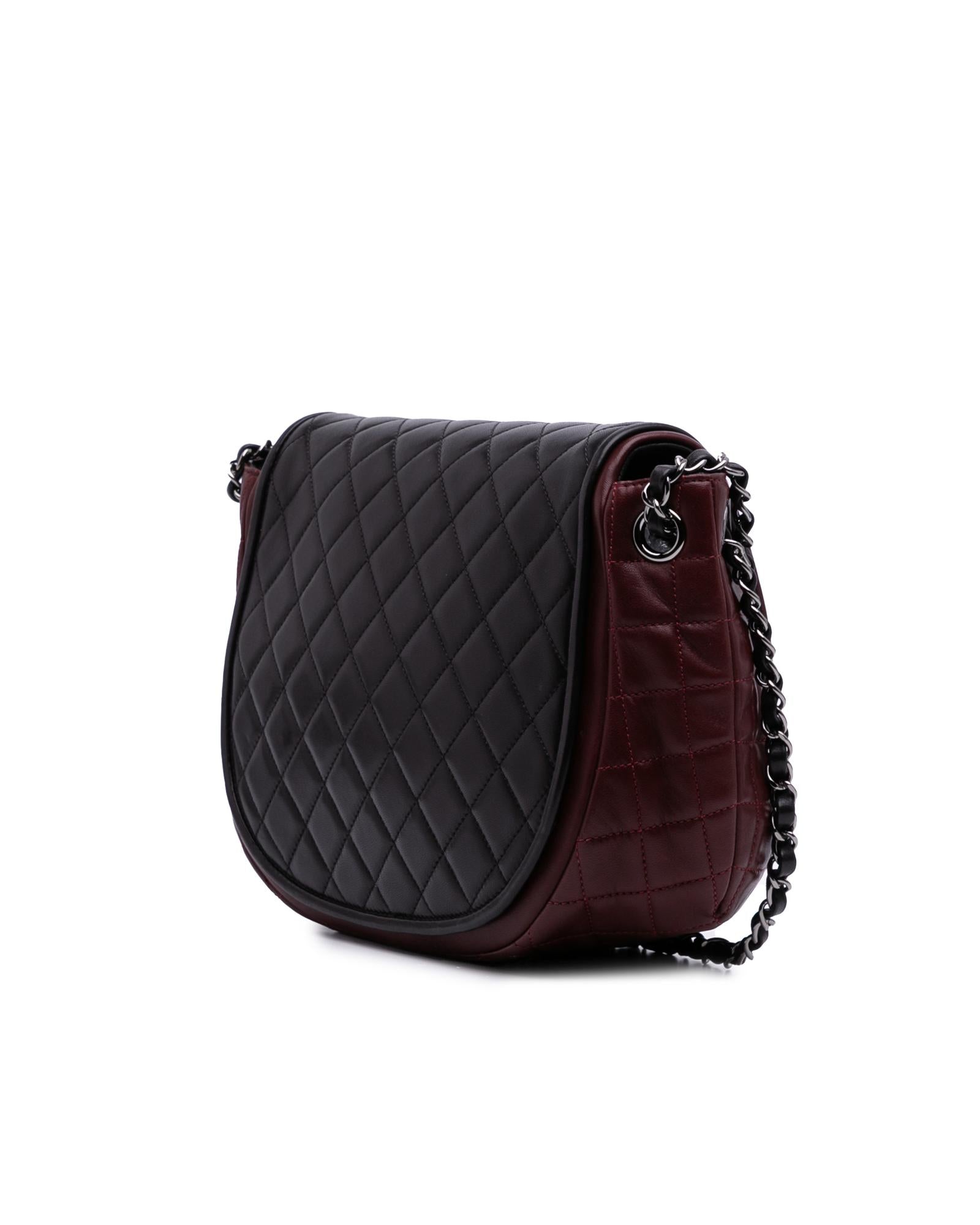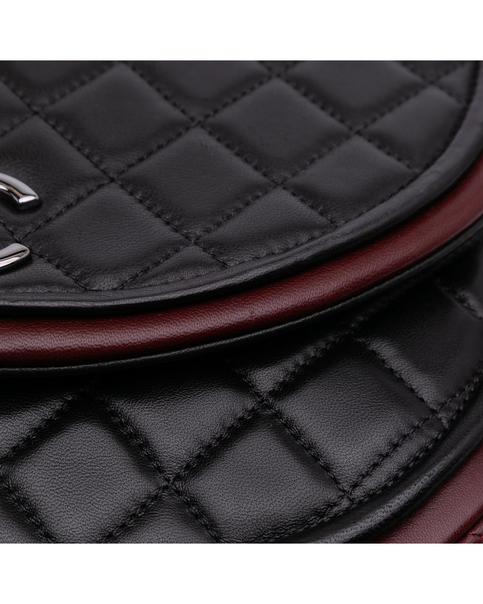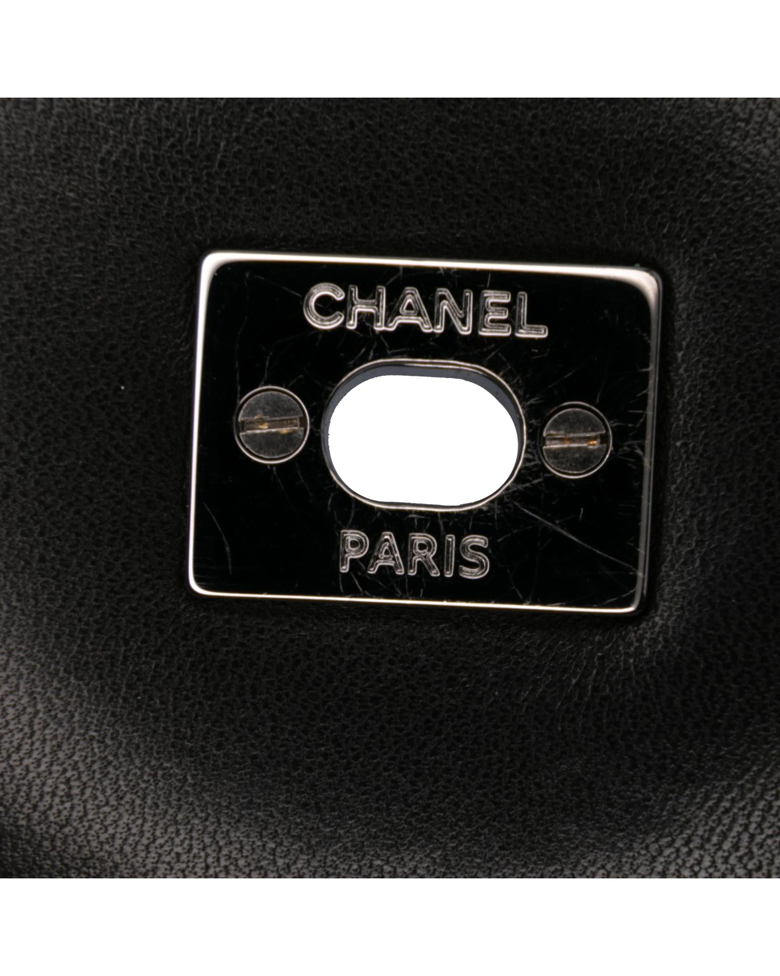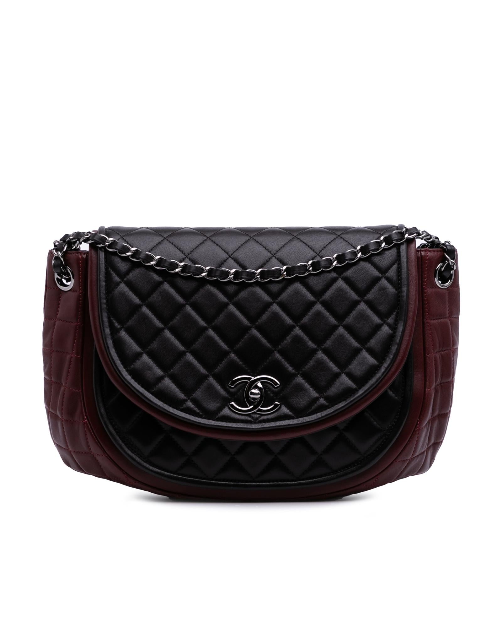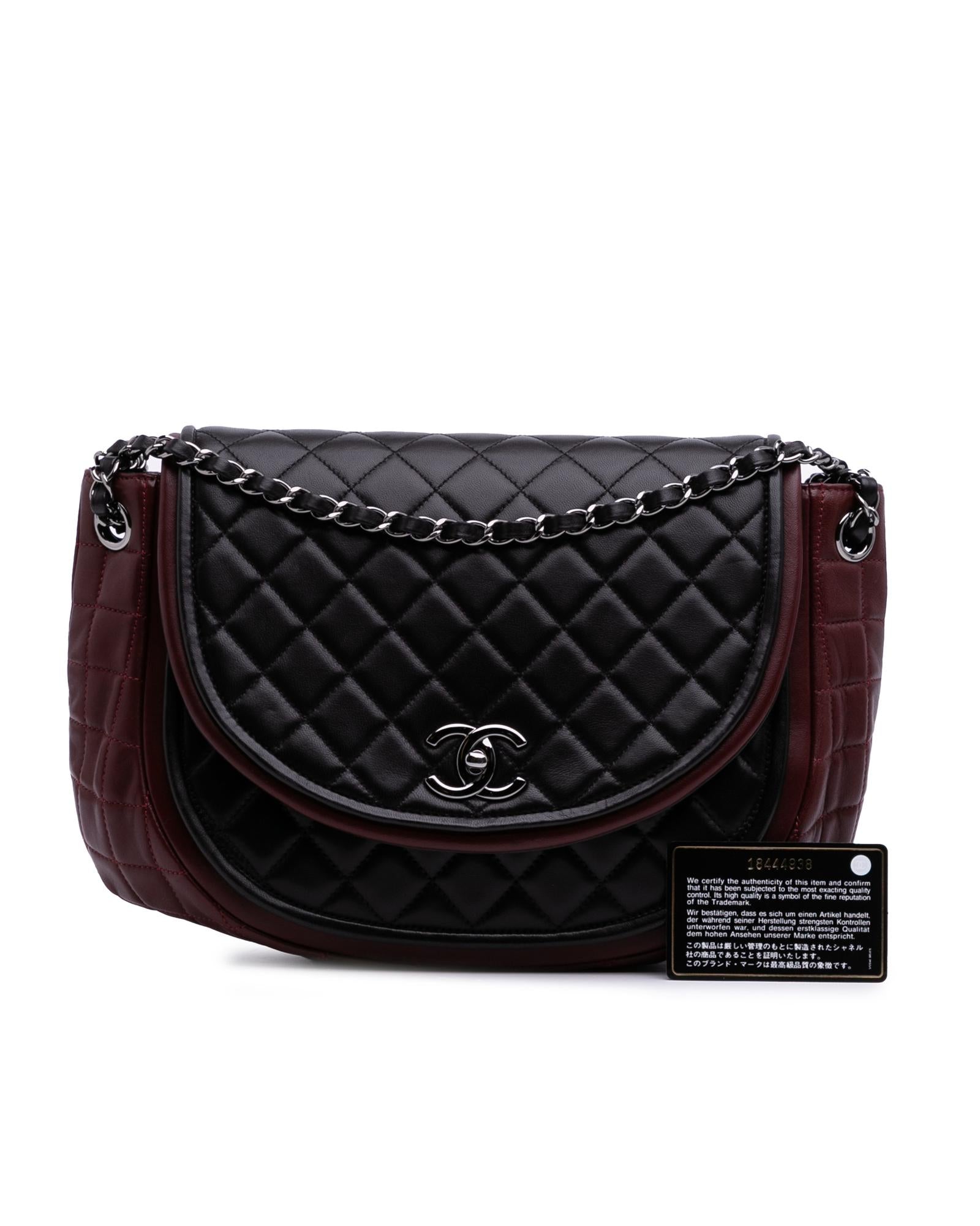 This shoulder bag features a quilted lambskin leather body leather woven chain link straps a front flap with interlocking Cs and a twist lock closure and an interior zip pocket.Brand: Chanel