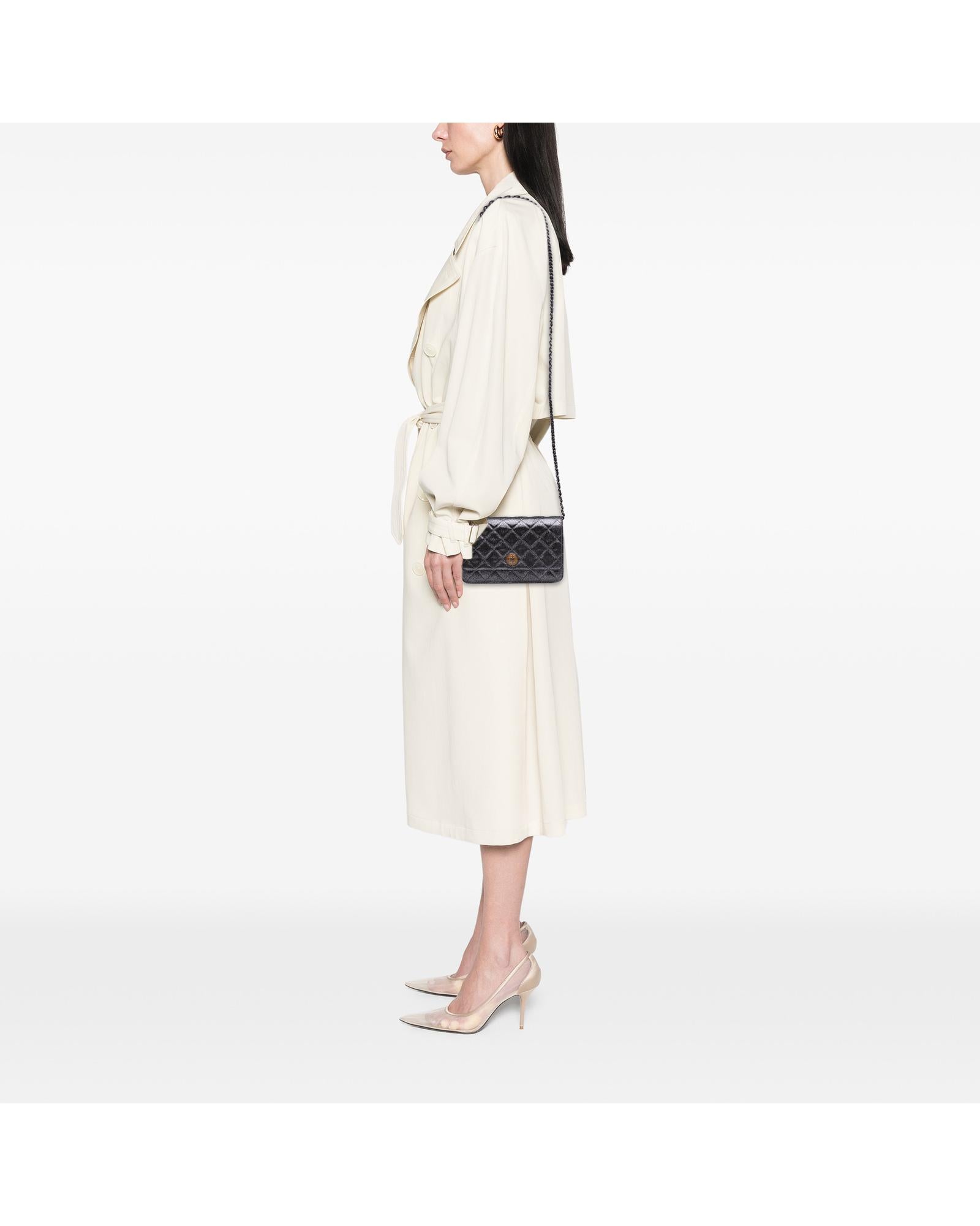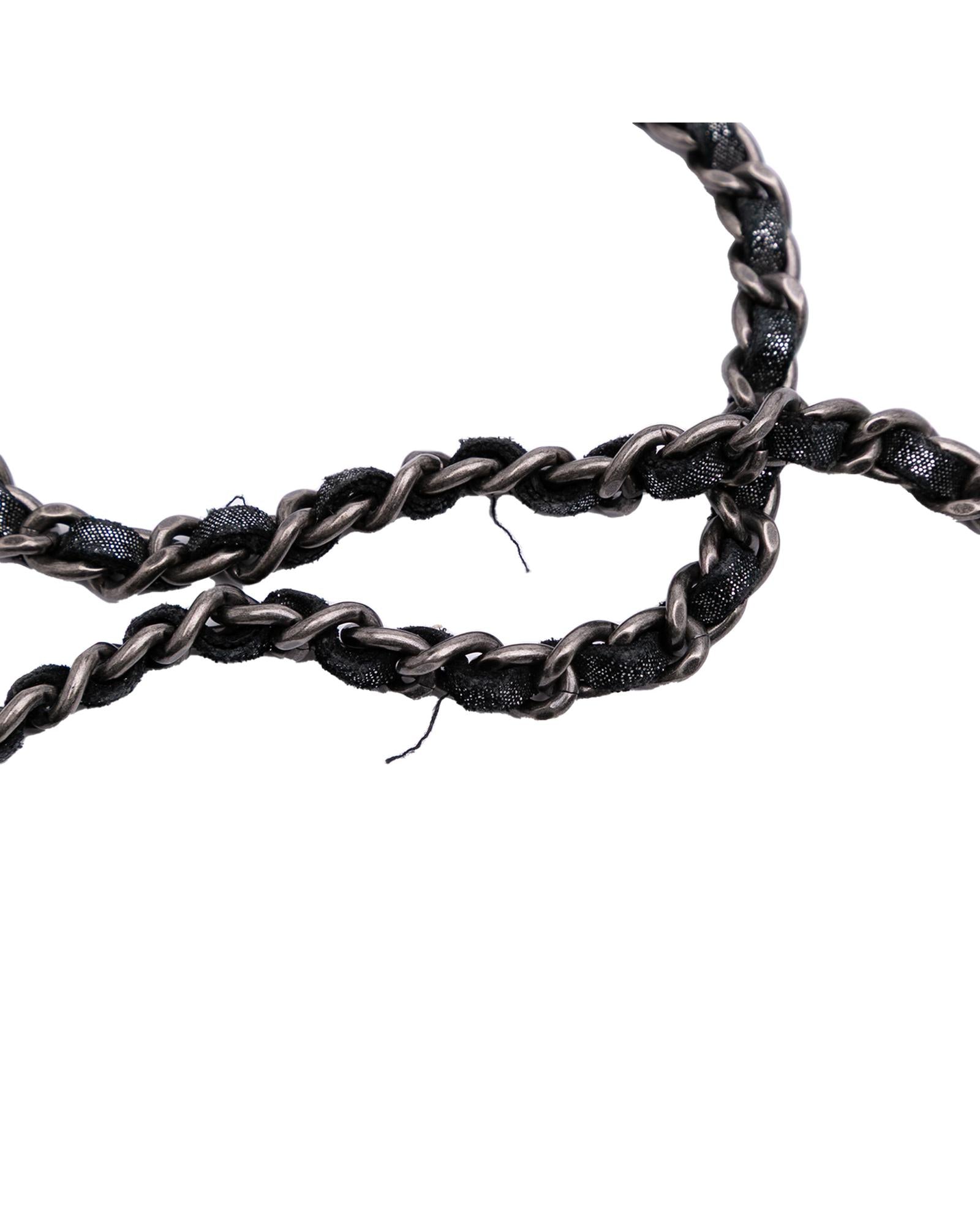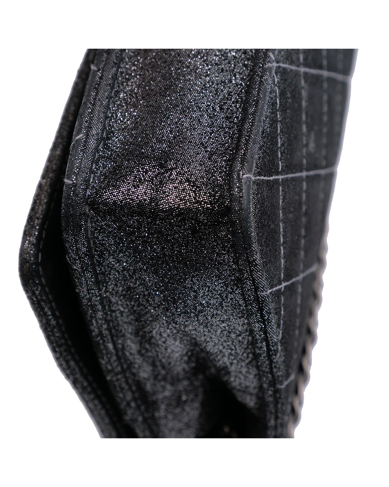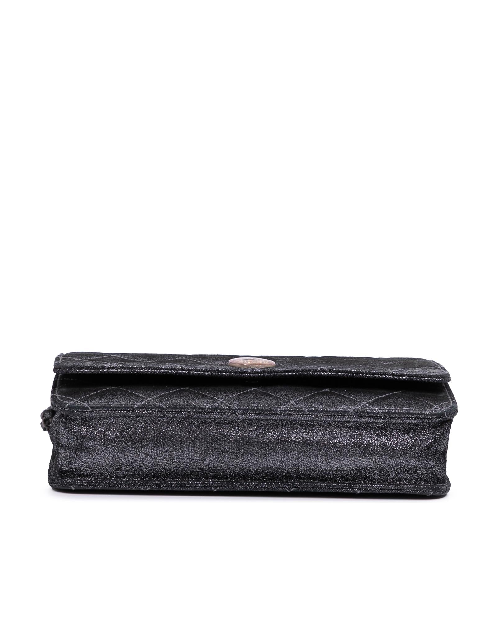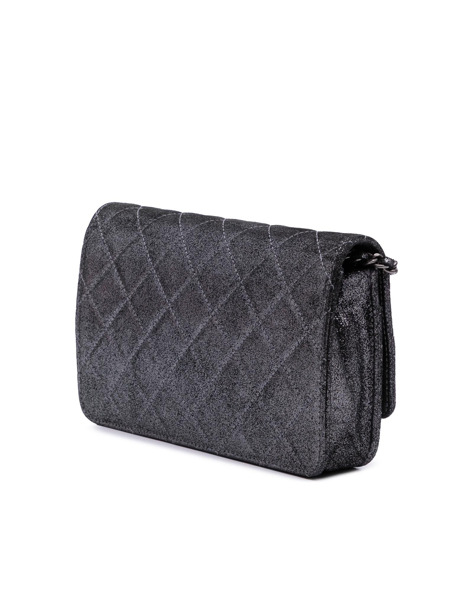 This wallet on chain features a quilted iridescent lambskin body a leather-woven chain link strap a front flap with snap closure and interior zip and slip pockets.Brand: Chanel