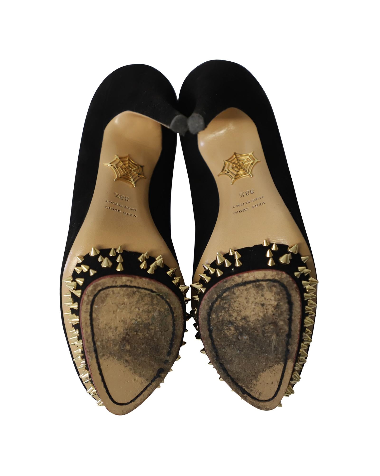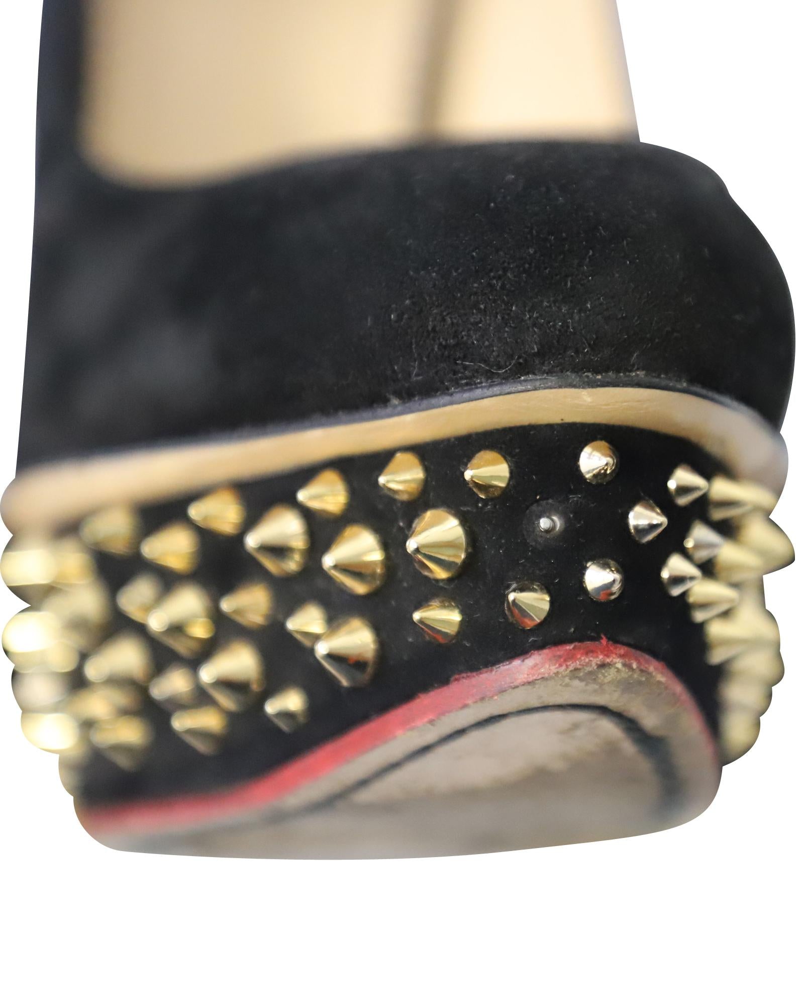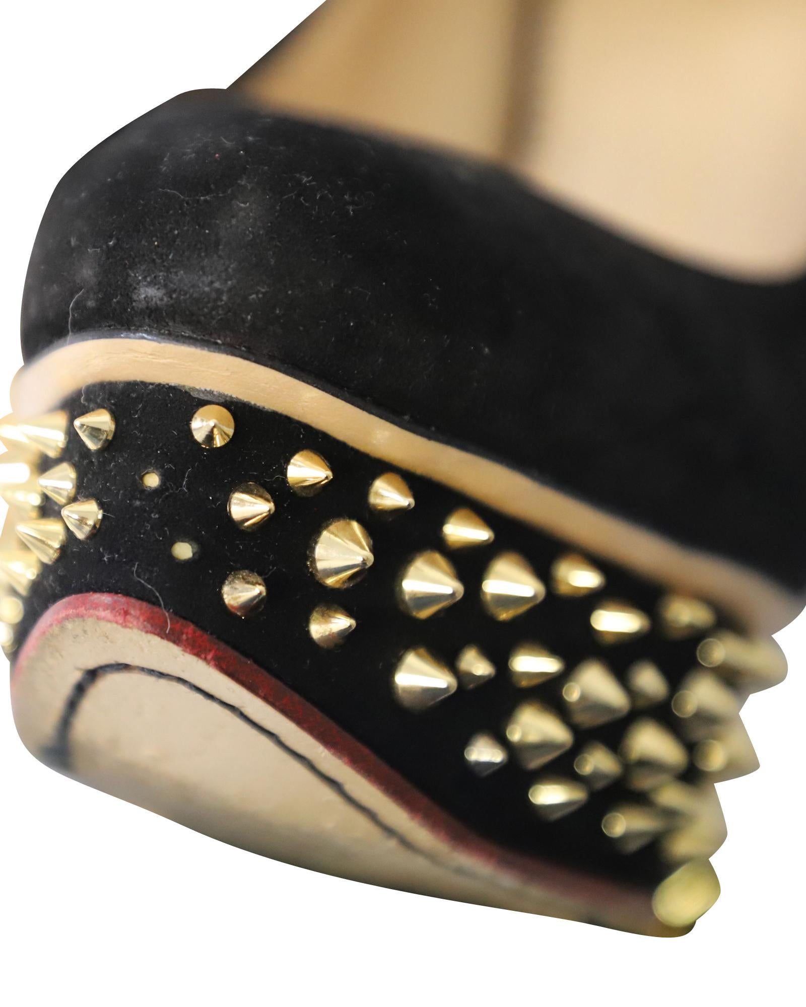 Pre-owned Spike Platform Pumps Black Suede Heels