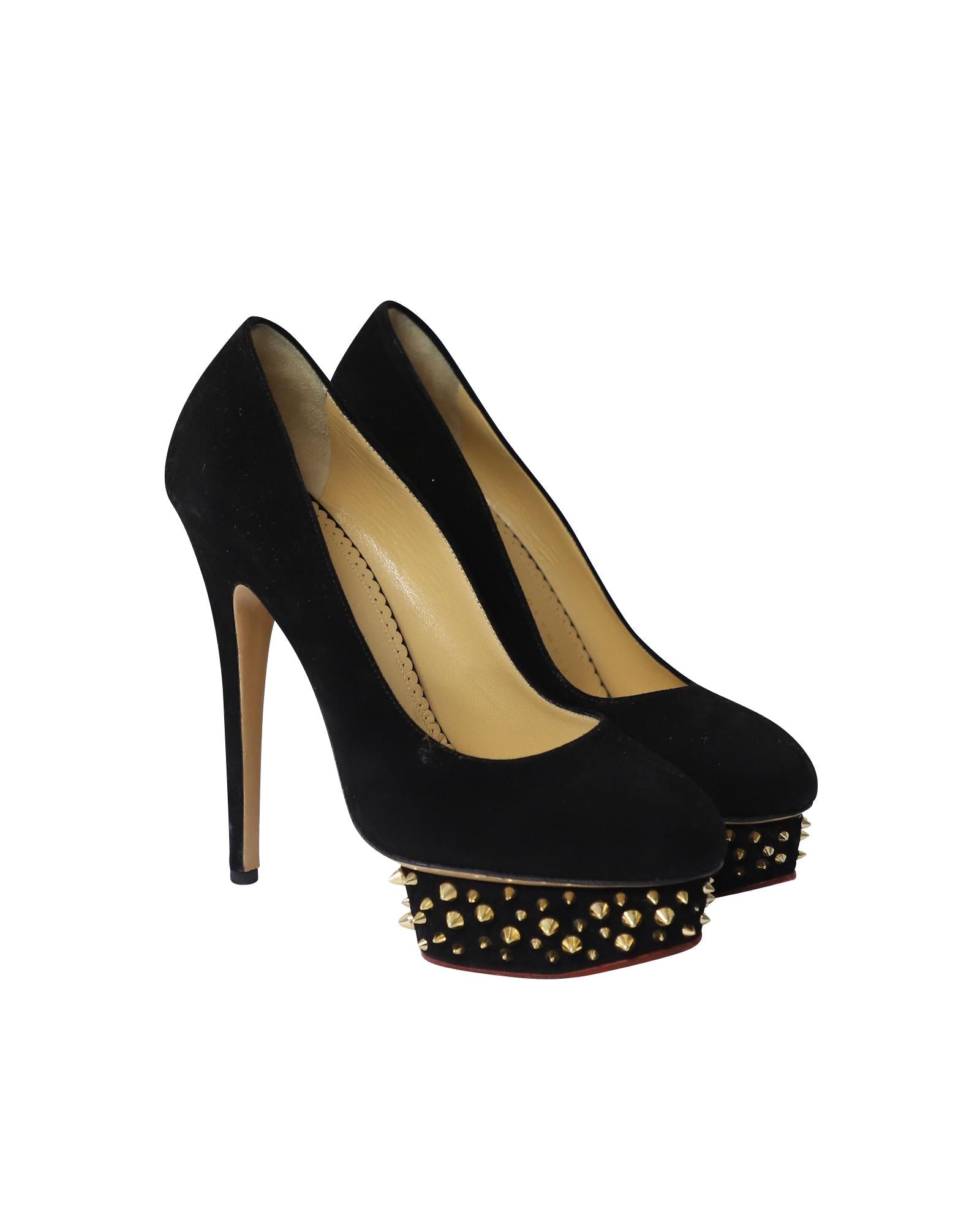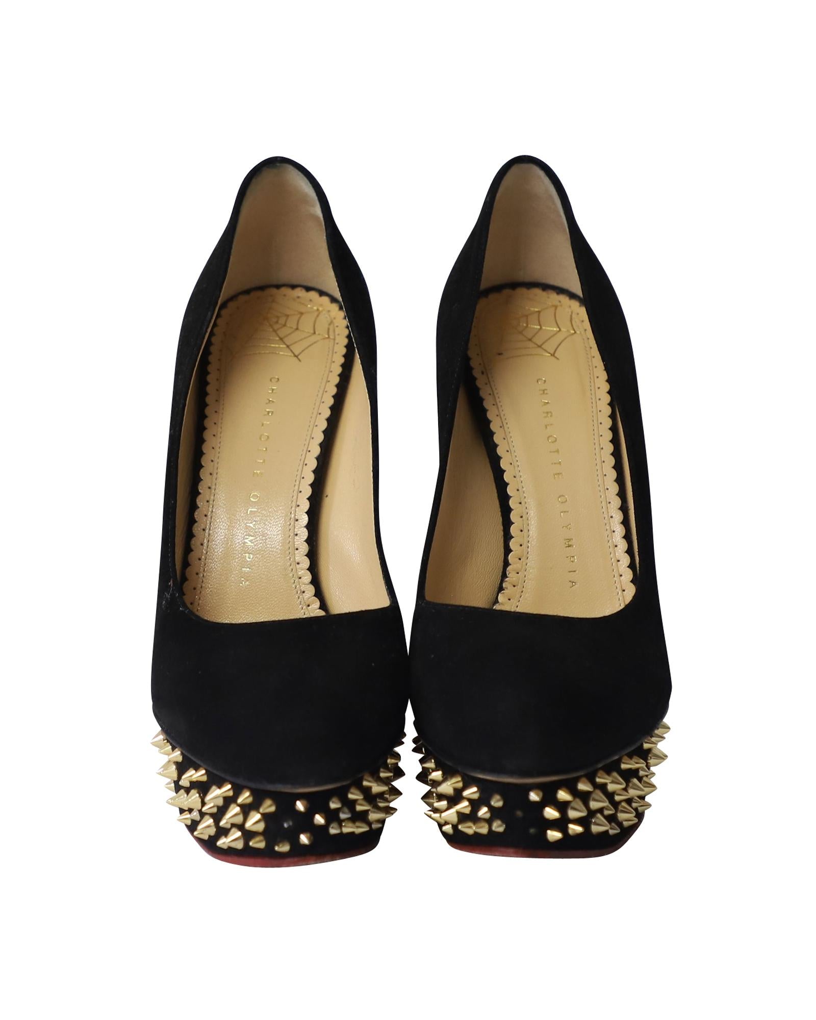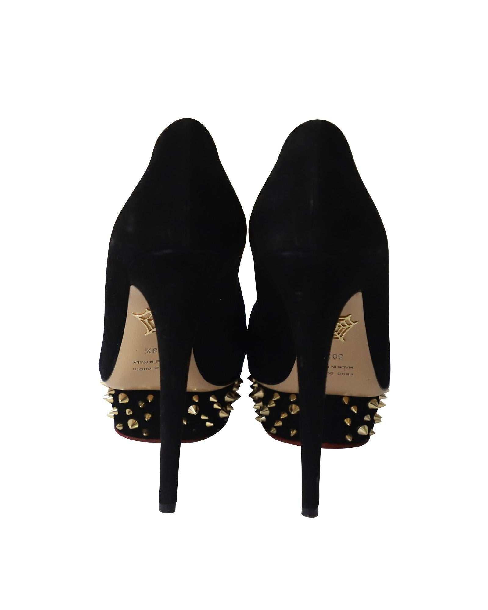 Pre-owned Spike Platform Pumps Black Suede Heels