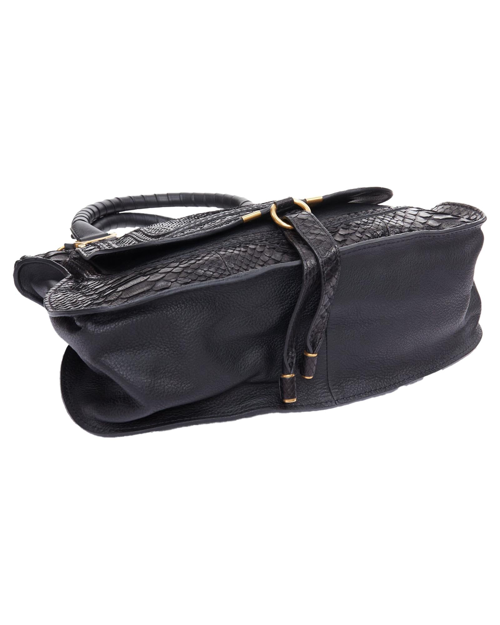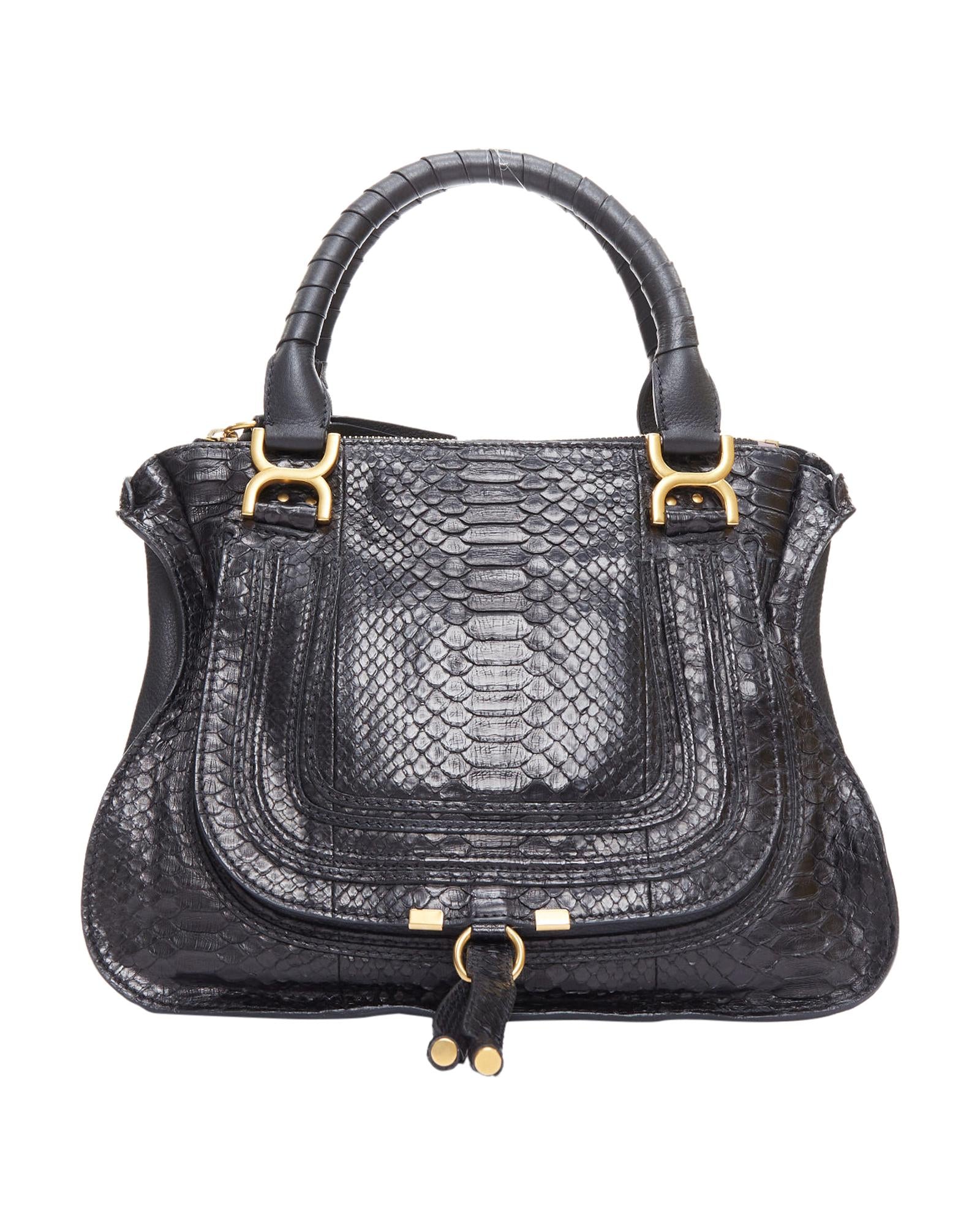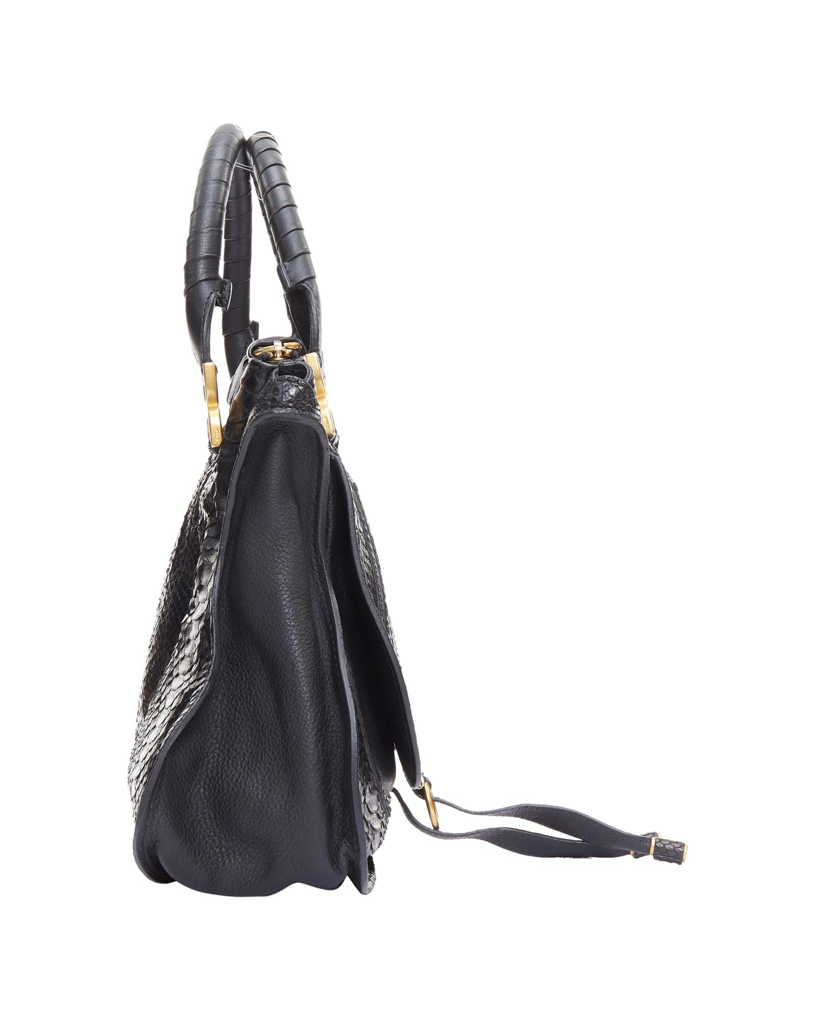 Pre-owned Textured Leather Top Handle Bag with Metal Details