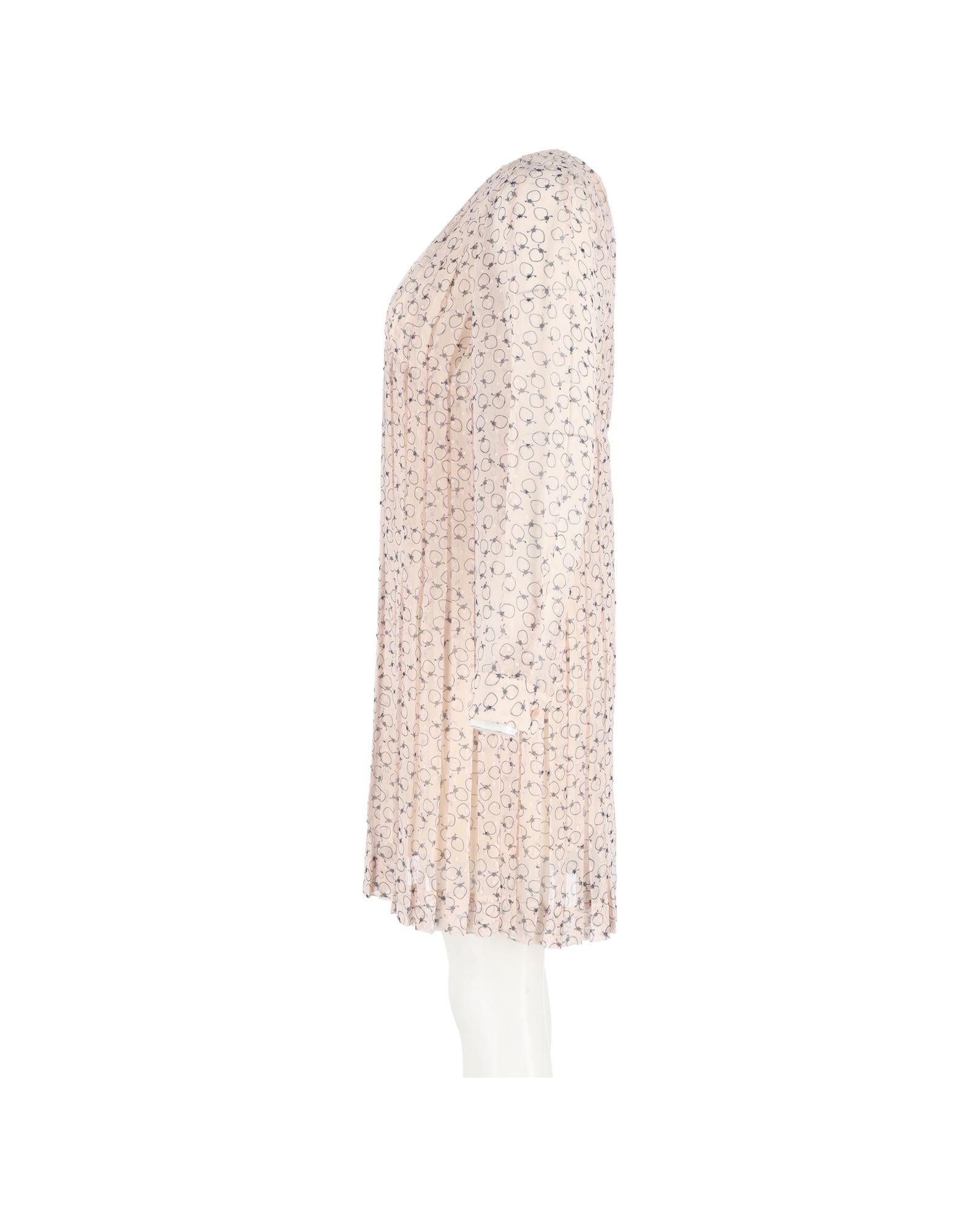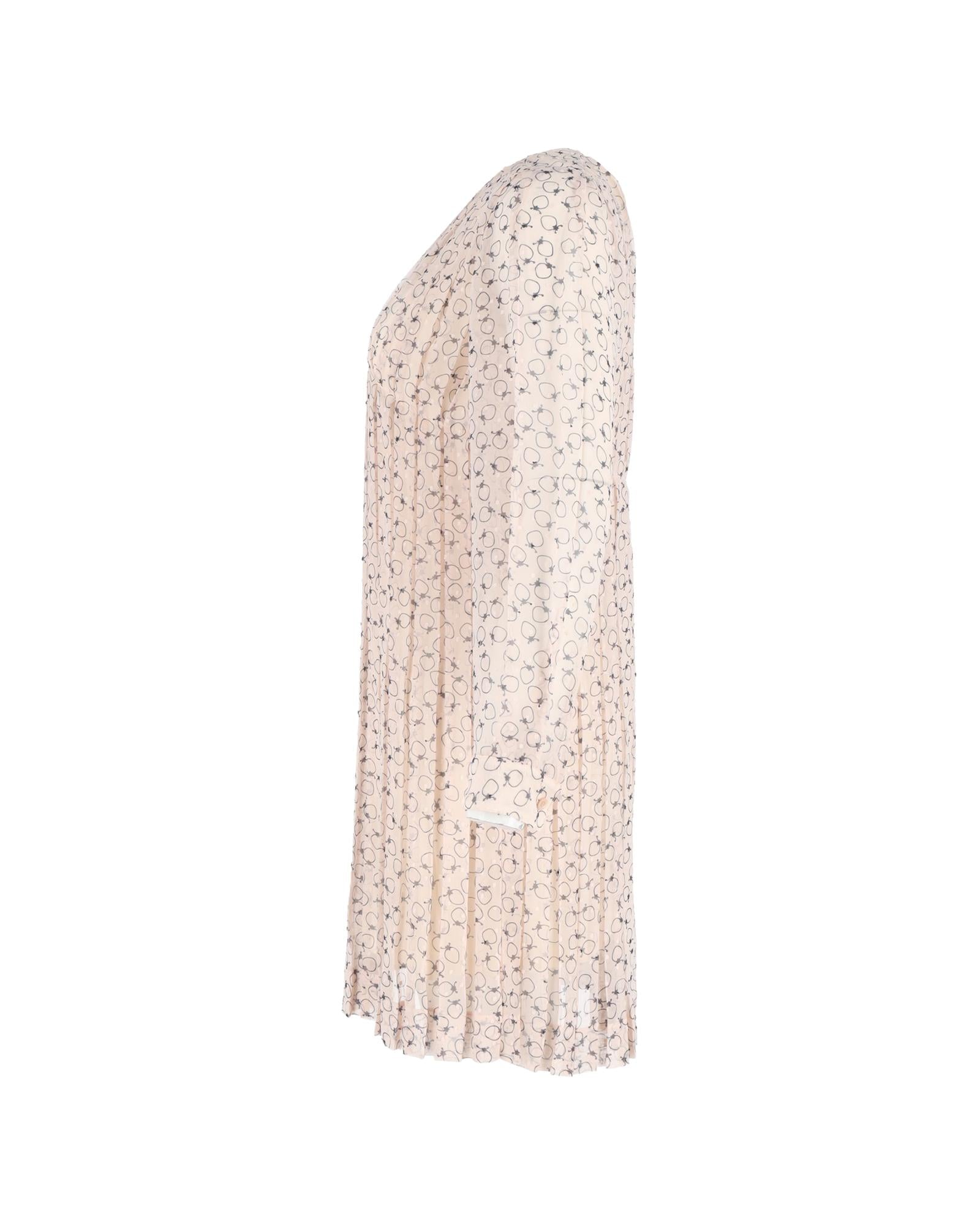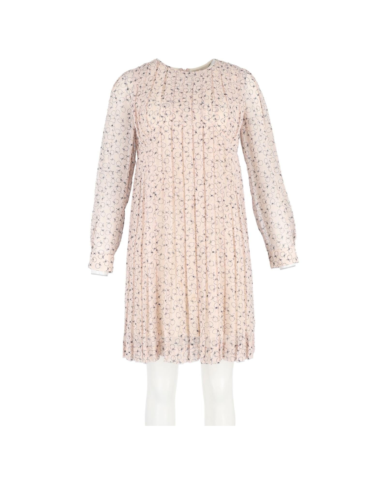 - Chloe Pleated Printed Knee Length Dress in Pastel Pink Polyester