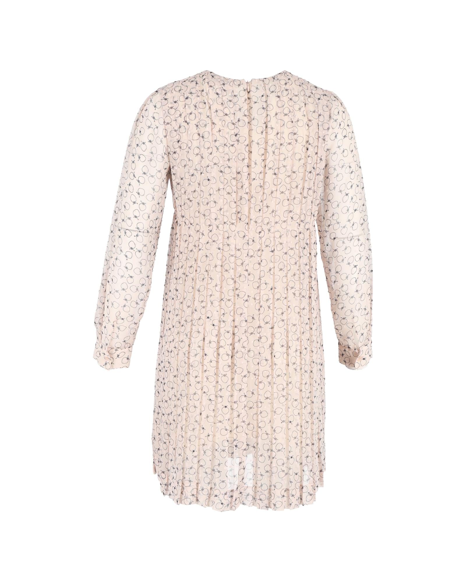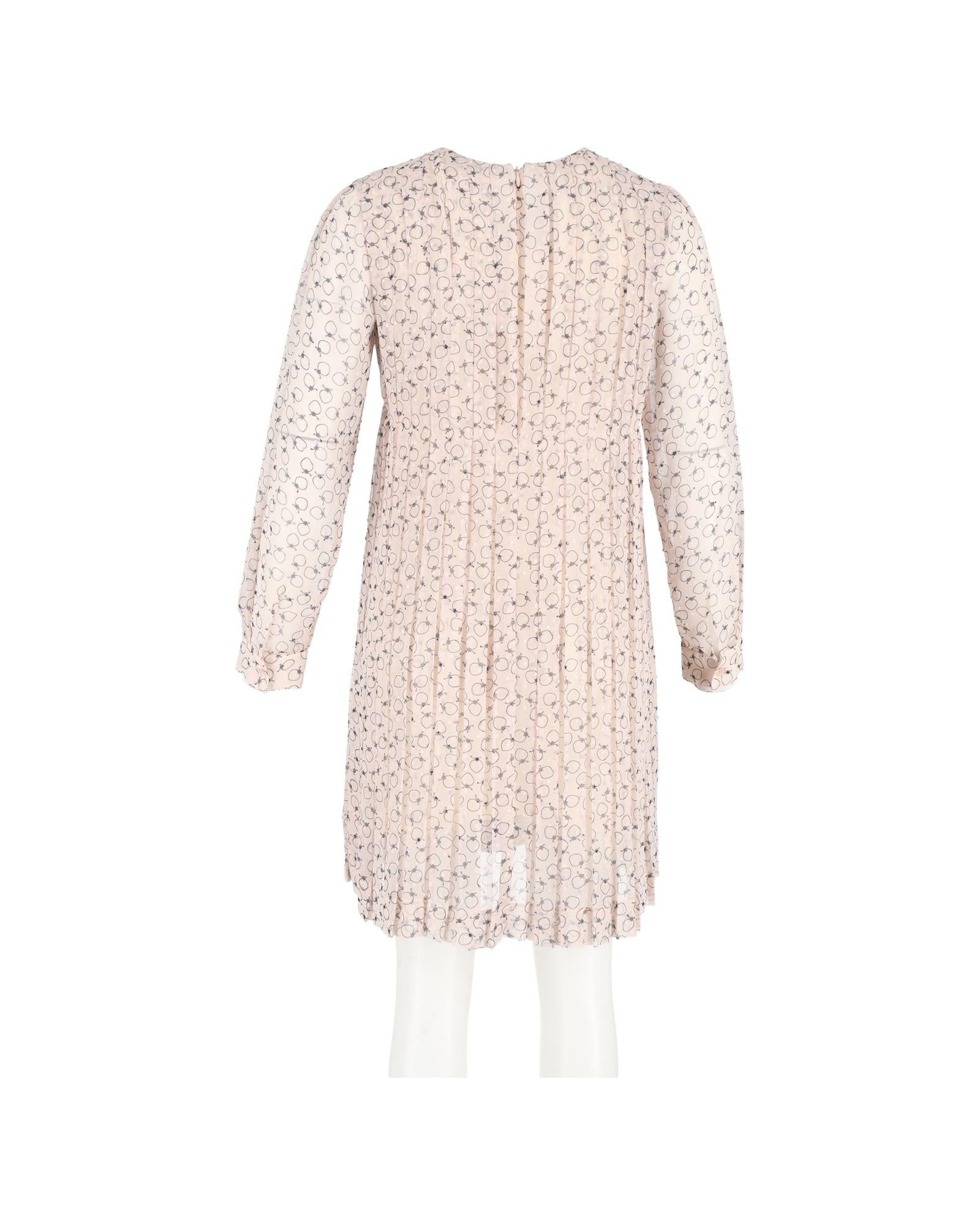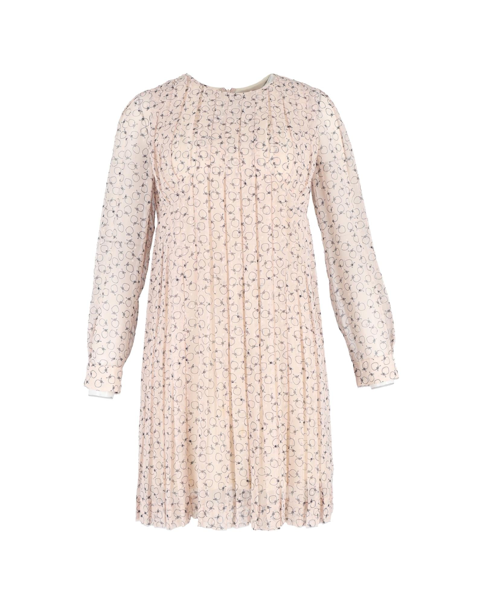 - Chloe Pleated Printed Knee Length Dress in Pastel Pink Polyester