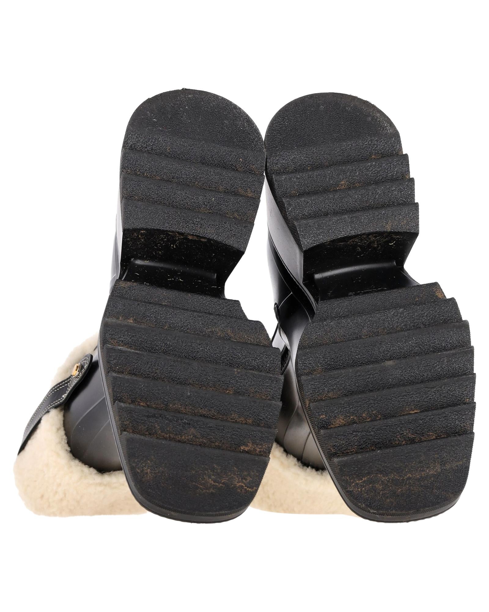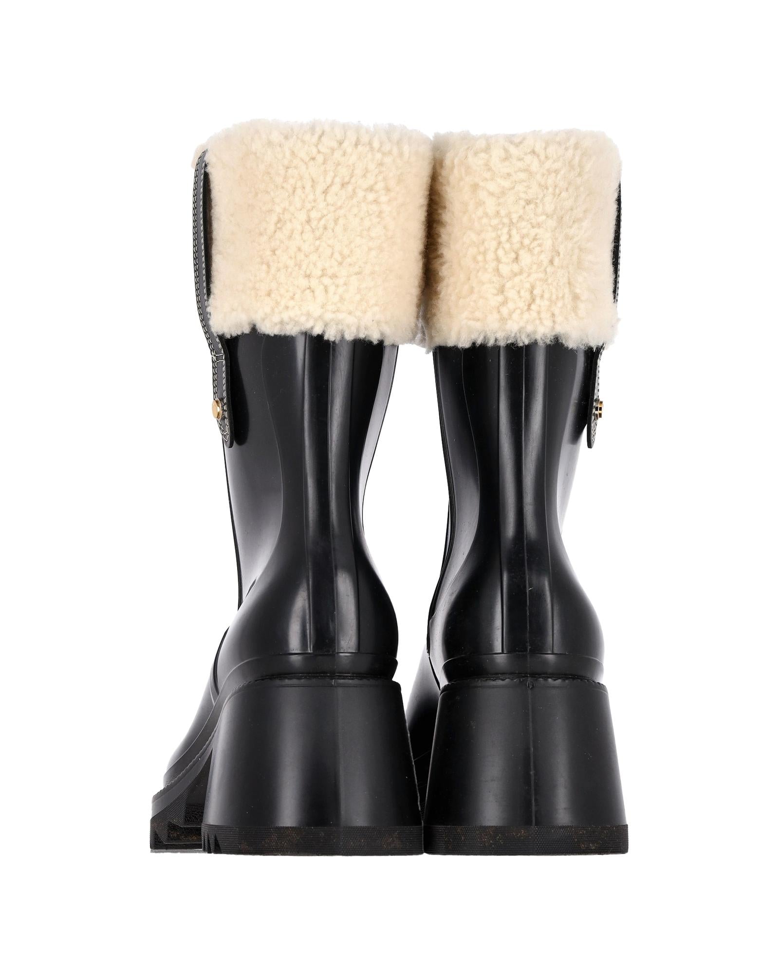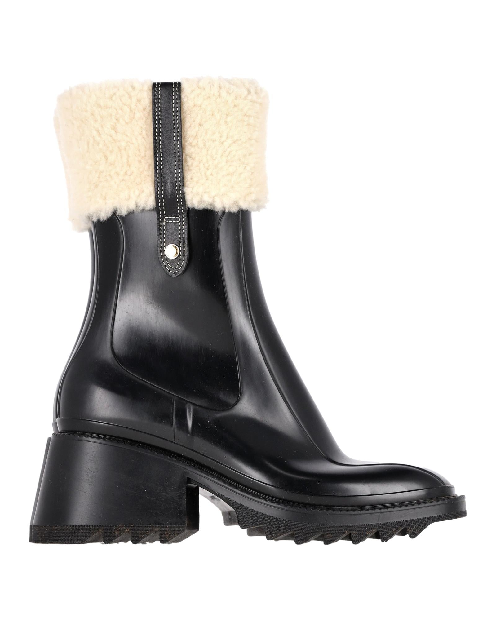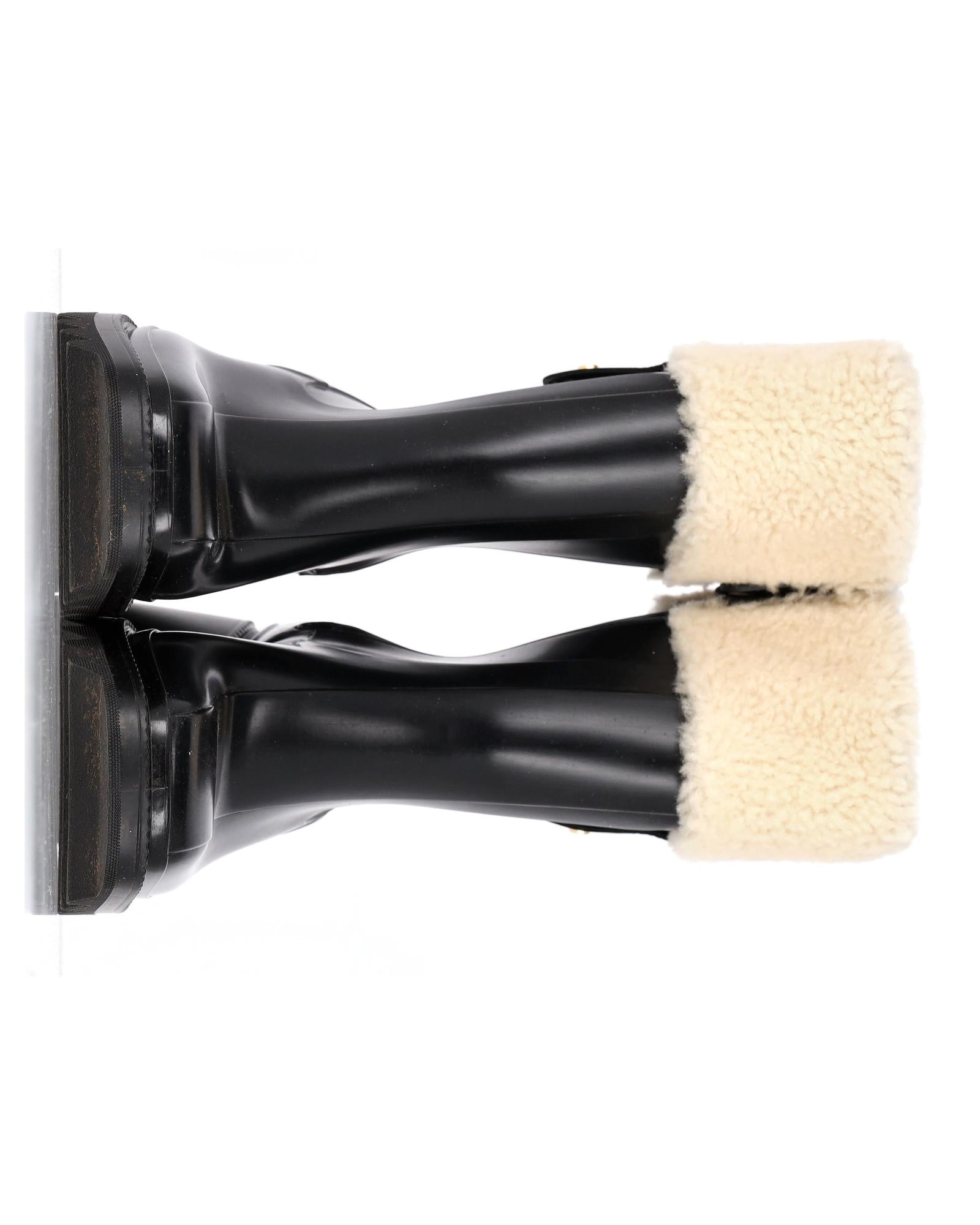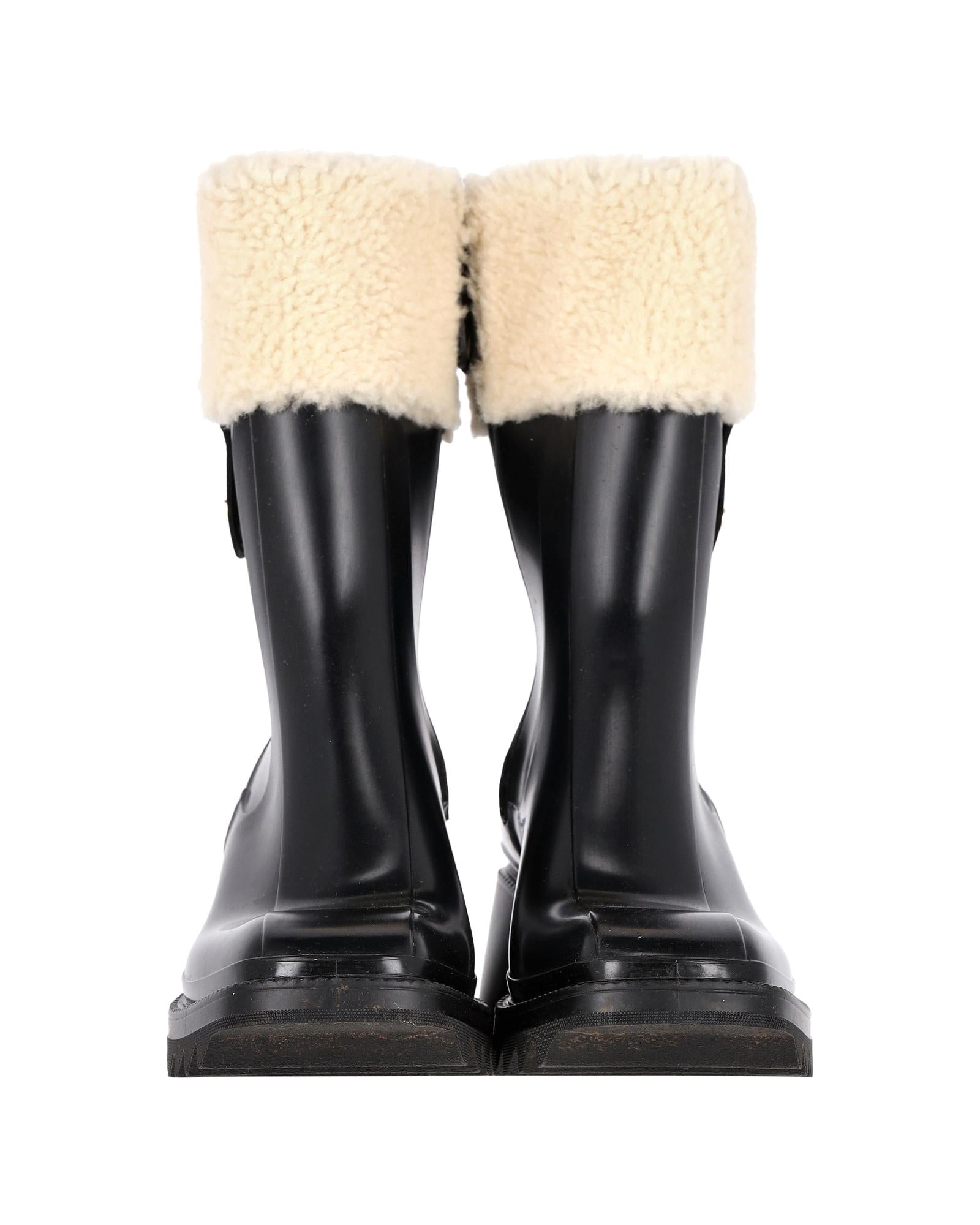 - Chloe Betty Shearling Rain Boots in Black Rubber