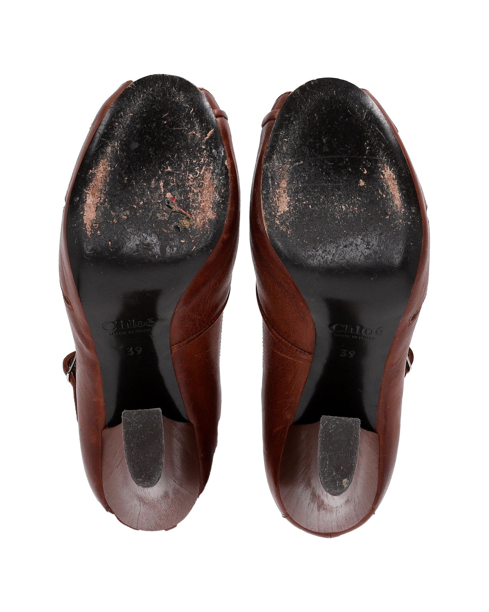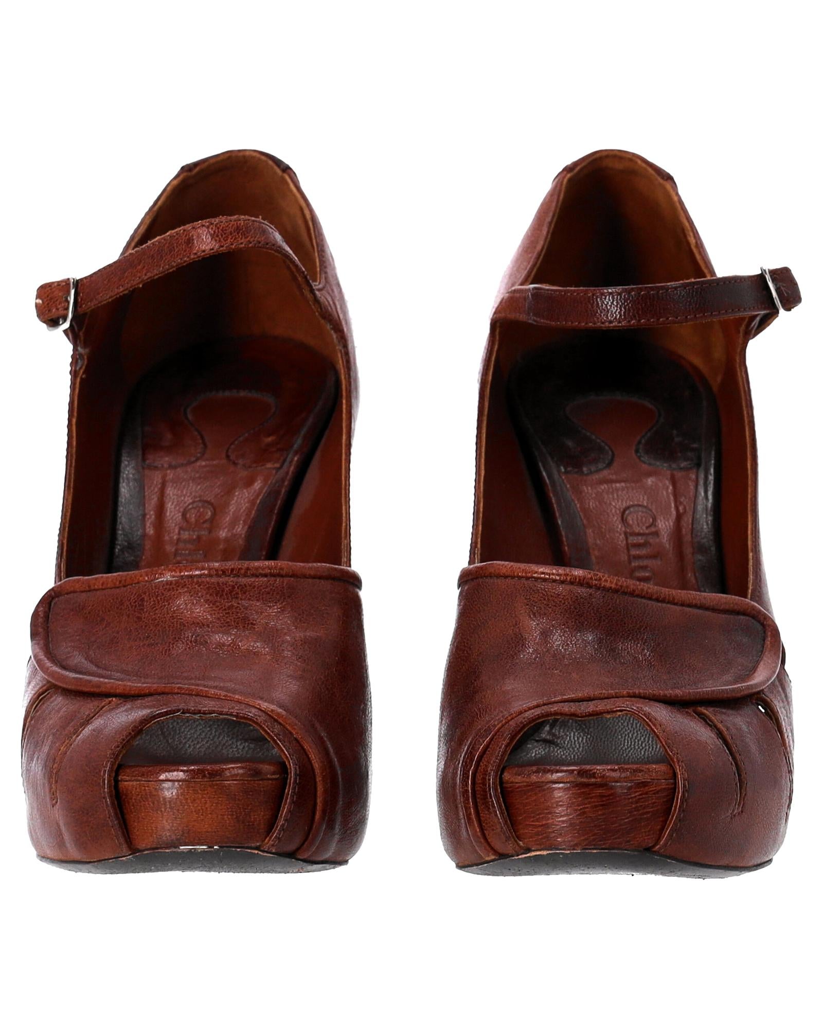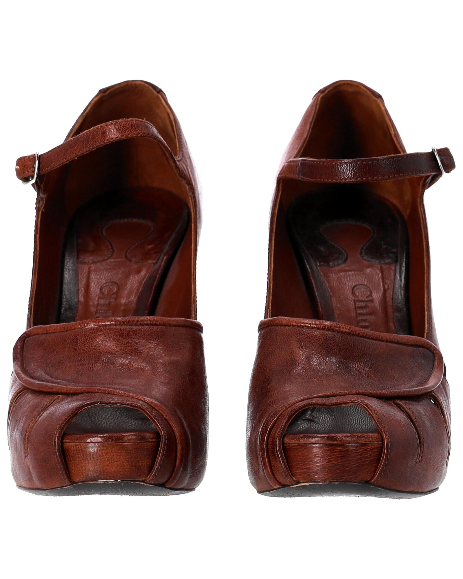 - Chloe Mary Jane Pumps in brown leather
