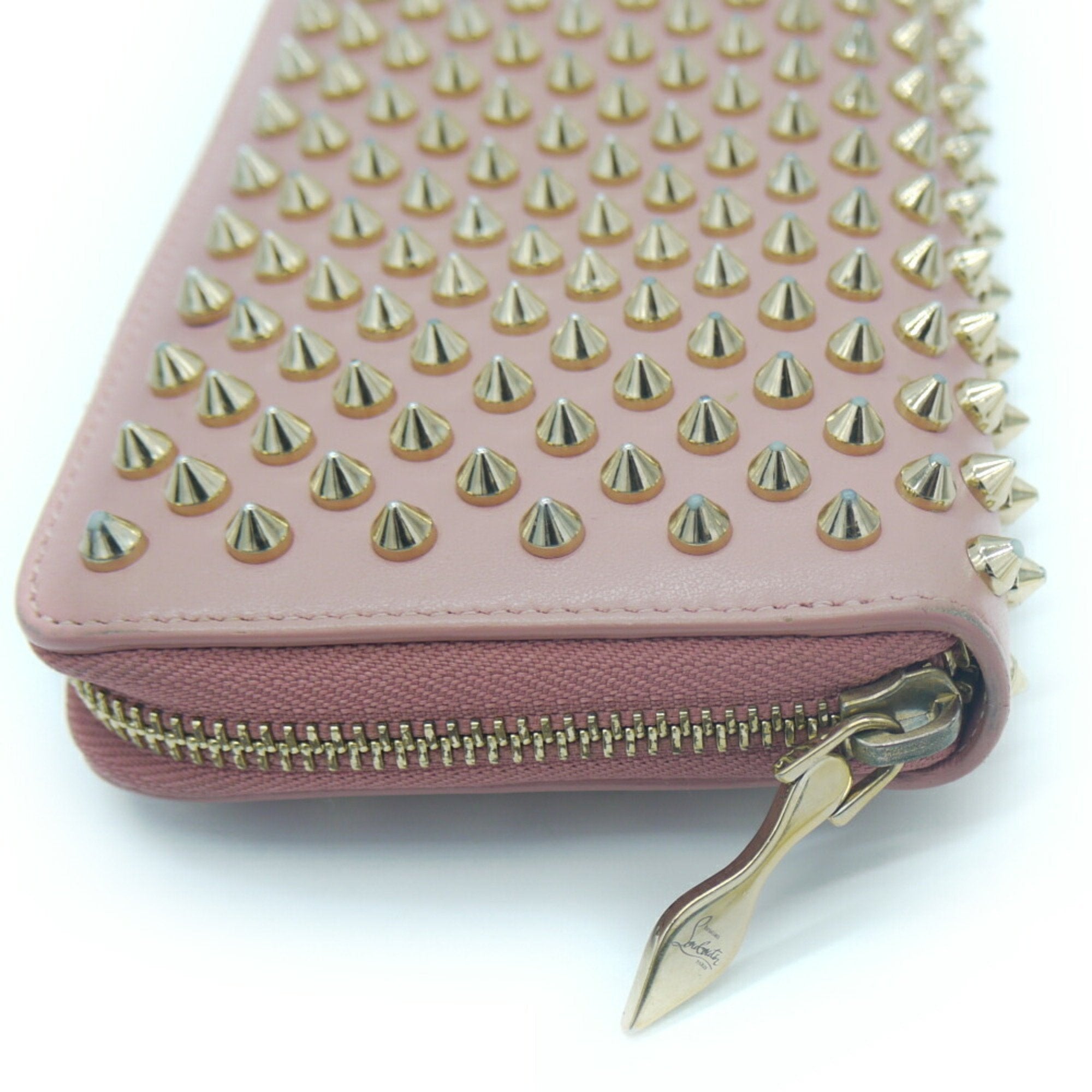 Brand: Christian Louboutin Model: Panettone Color: Pink Material: Leather Inclusions: / Dimensions: 10.5cm x 19cm x 2.5cm Serial number: NA Country of origin: France Condition: AB - good condition. The Panettone wallet from the famous Christian Louboutin brand is made from leather and has an elegant timeless design. It's a fashion accessory that's perfect for women. With its pink colour and high-quality material this wallet is both functional and aesthetically pleasing. The item is in very good condition with some light rubbing to the corners on the outside which is common for a second hand item. Tan disc inside shows light rubbing and some small light staining. We recommend that you look at all the pictures before making your purchase to ensure that you are satisfied with the condition of the item.
