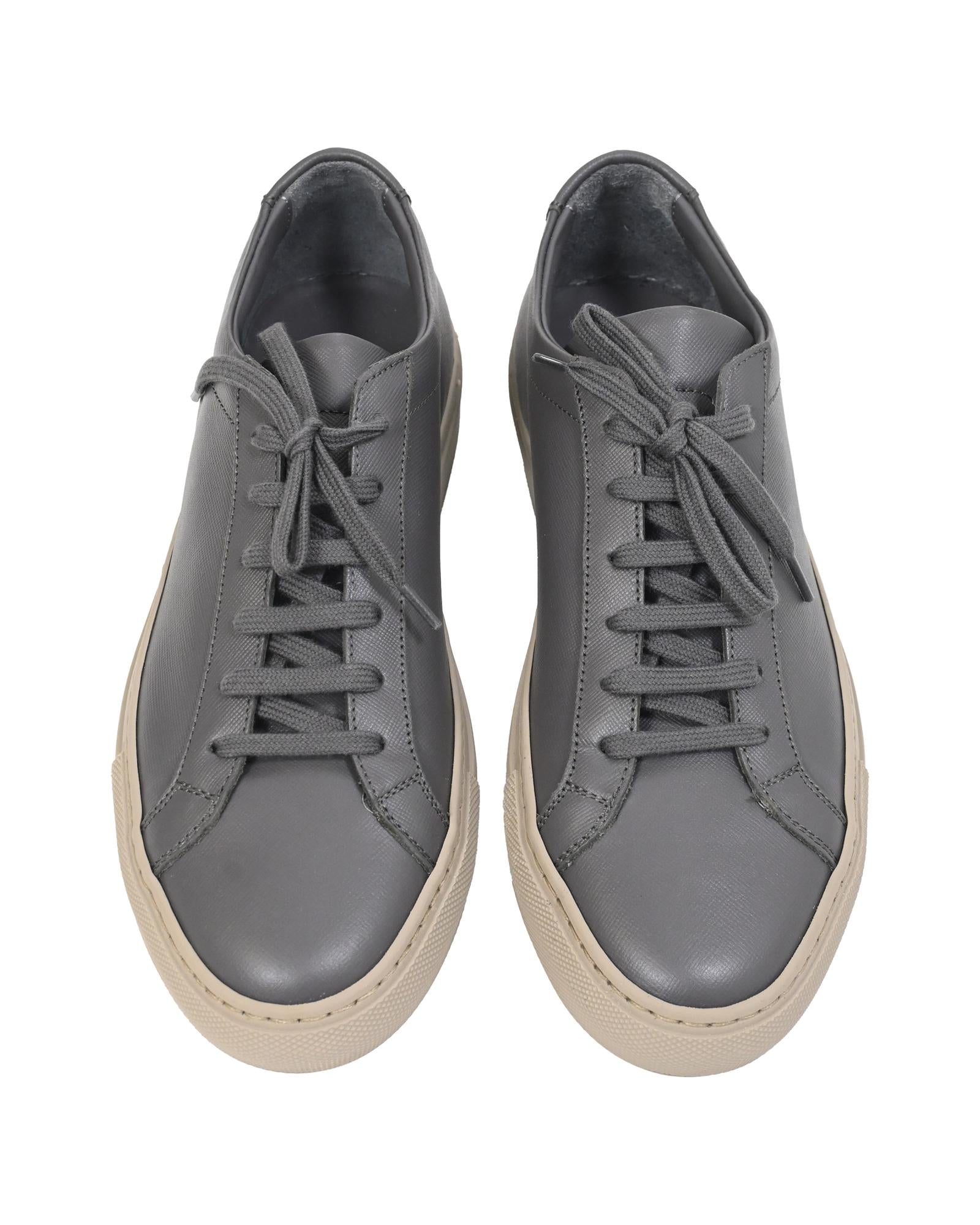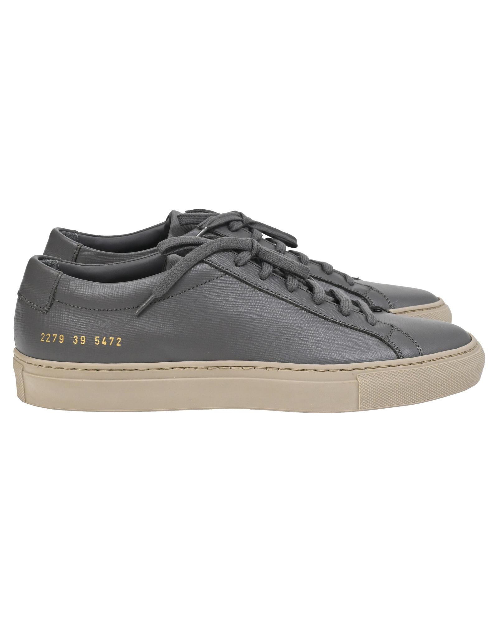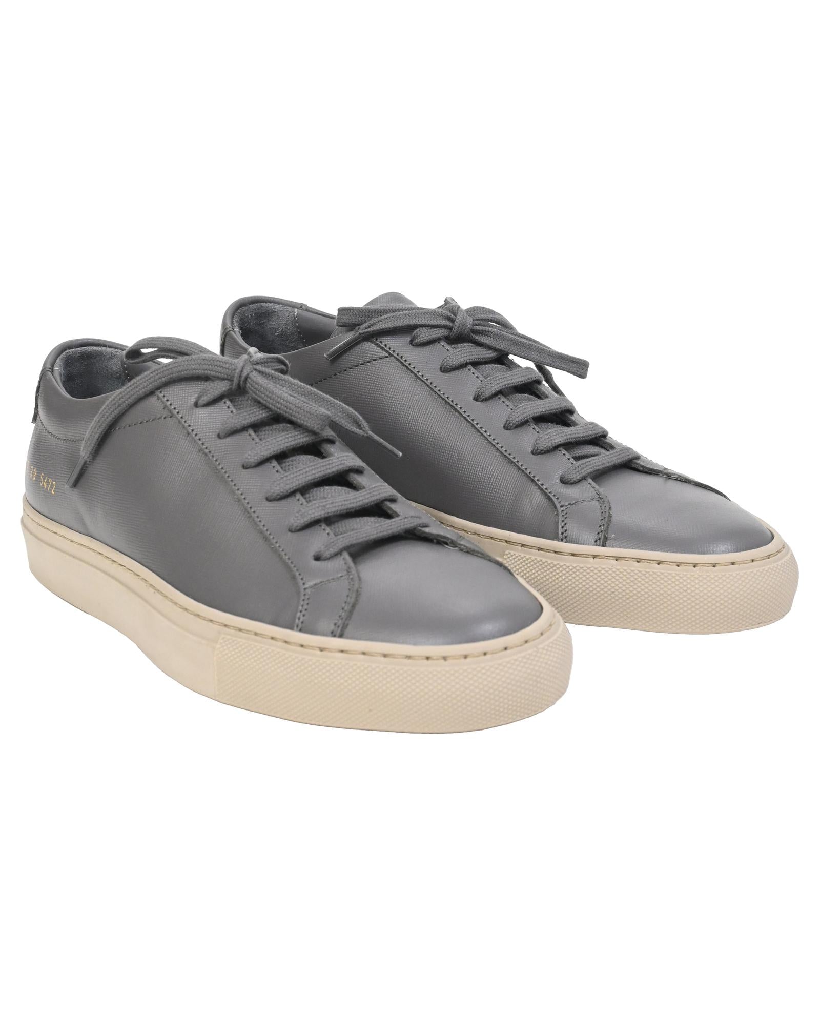 • Common Projects Achilles Sneakers in Grey Saffiano Leather