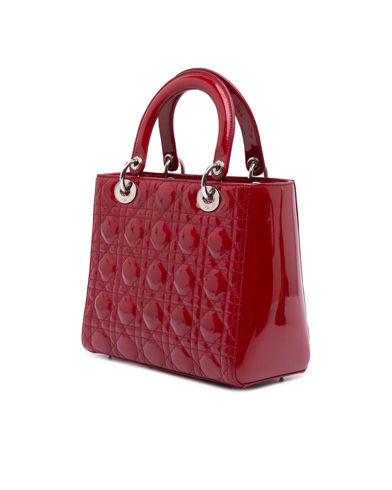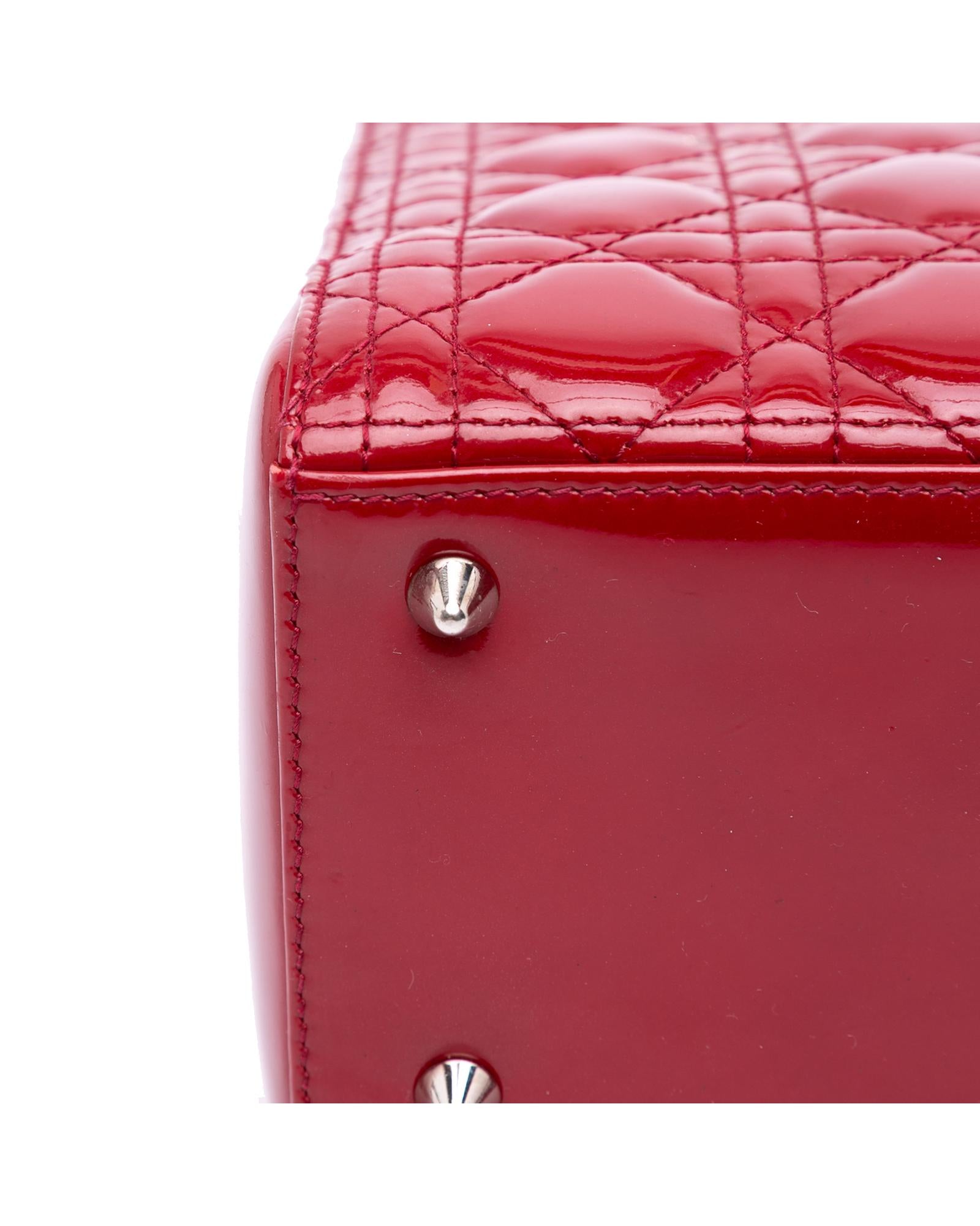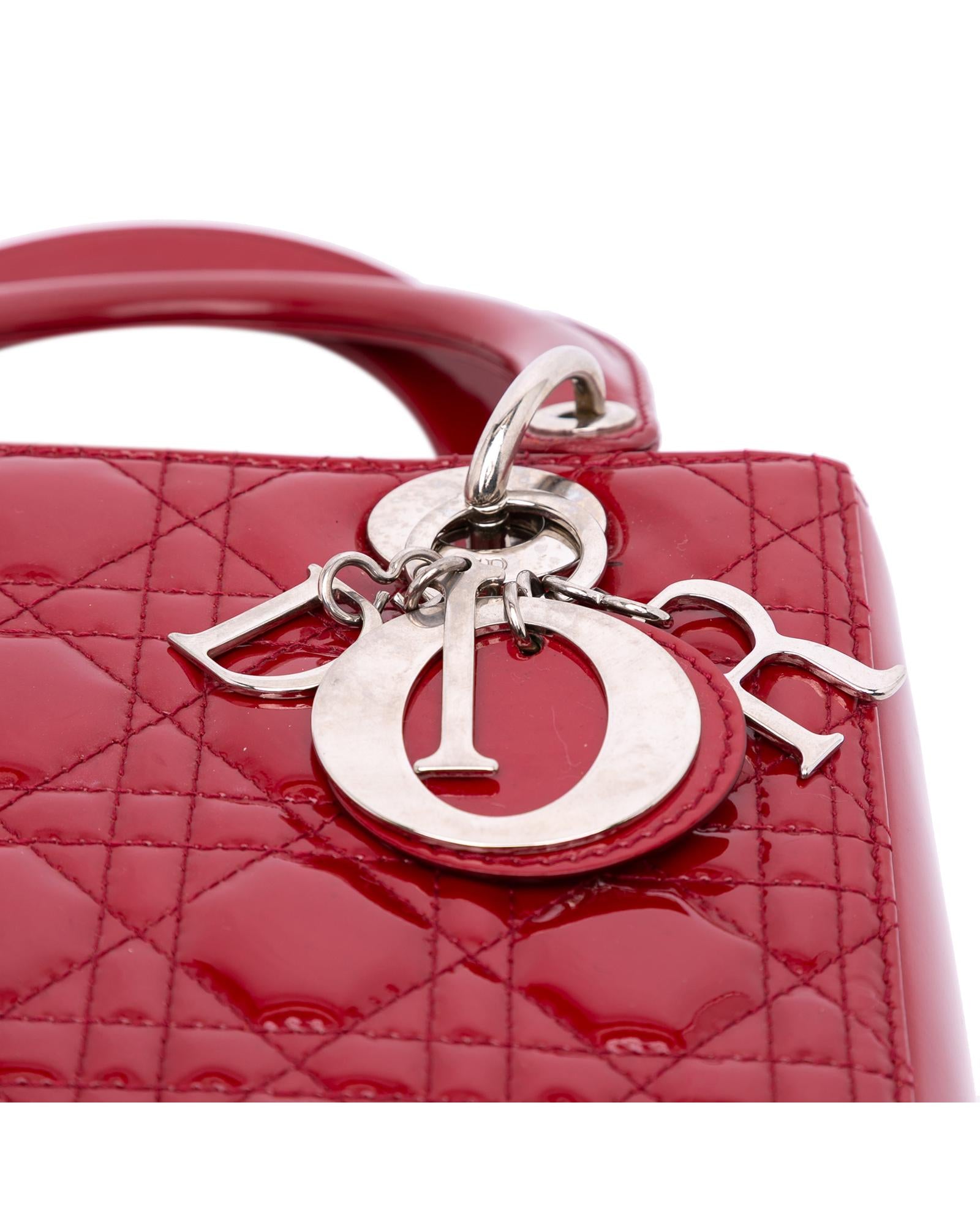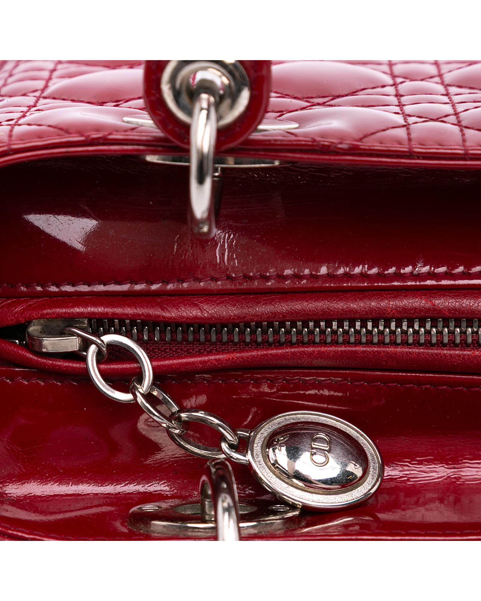 The Lady Dior features a quilted patent leather body flat leather top handles a detachable flat leather strap a top zip closure and an interior zip pocket.Brand: Dior