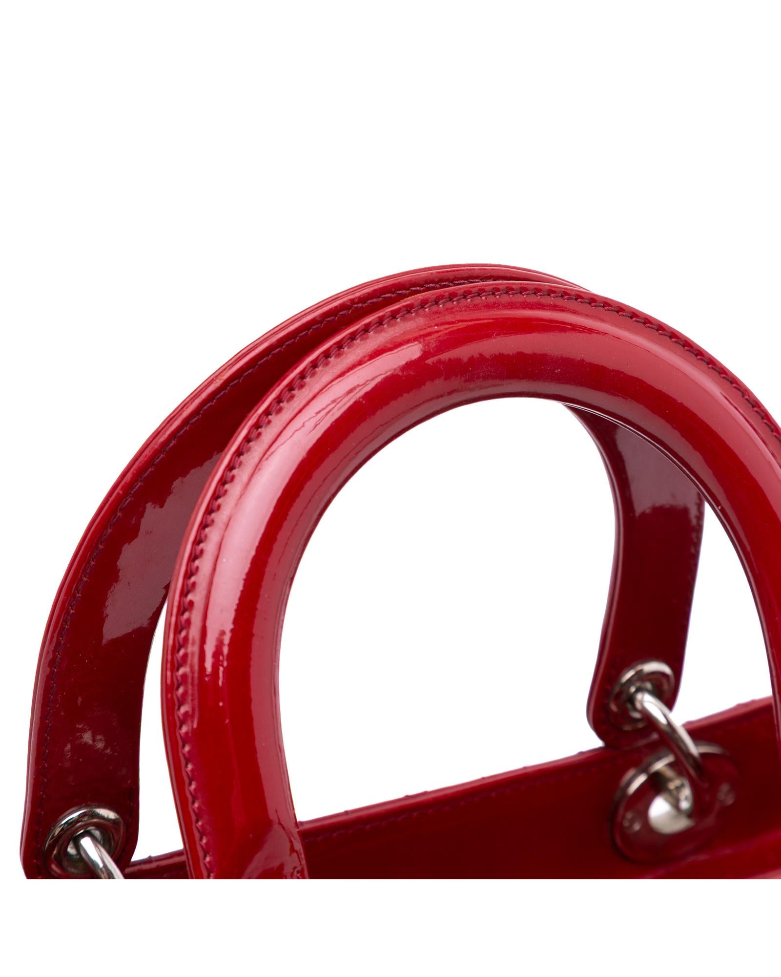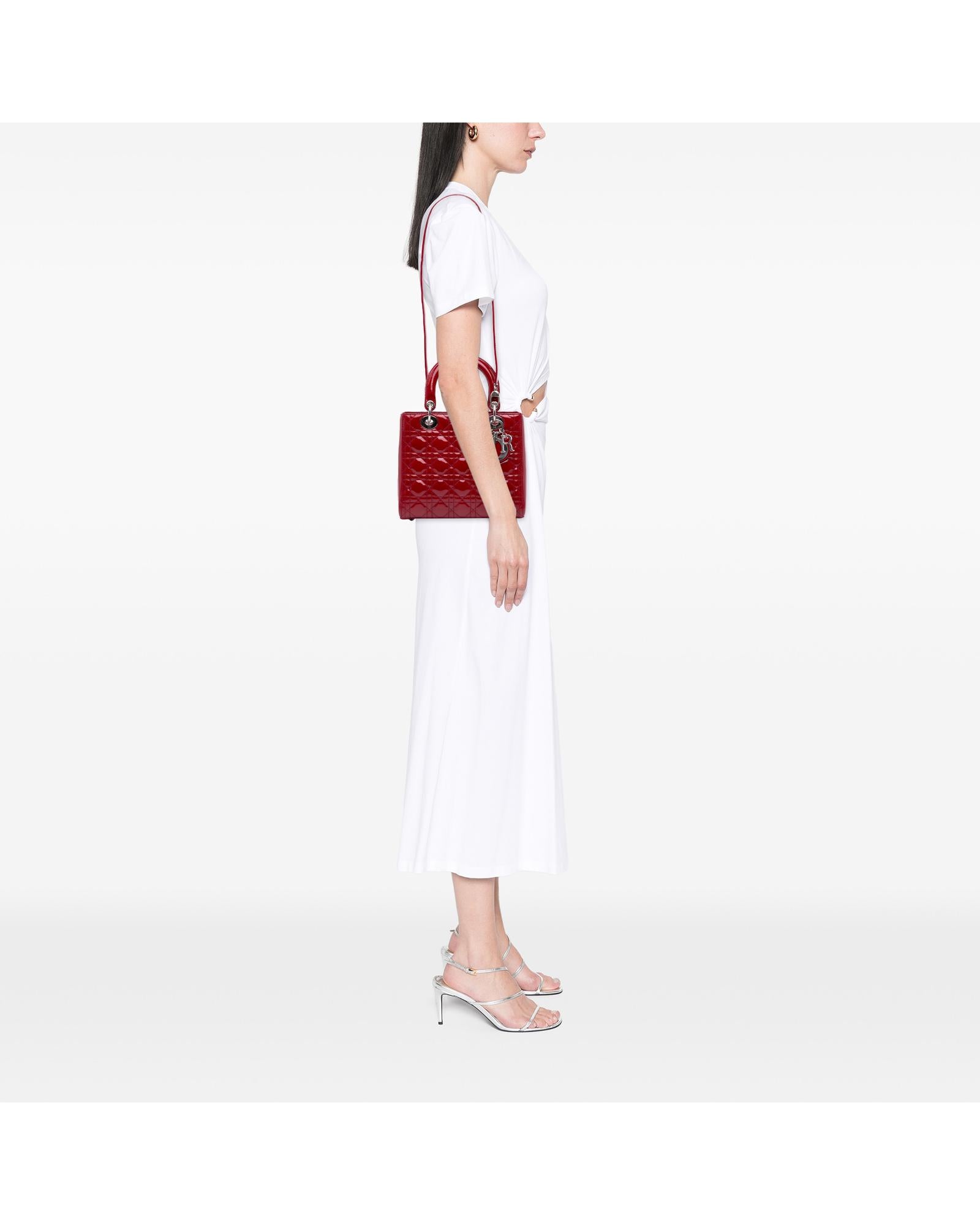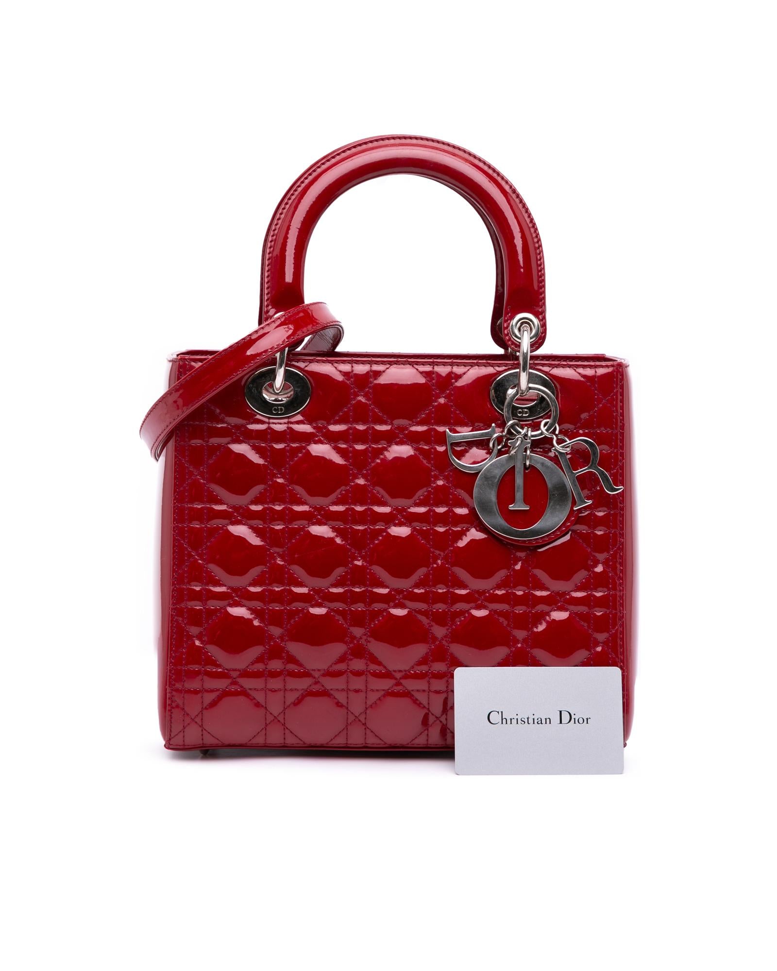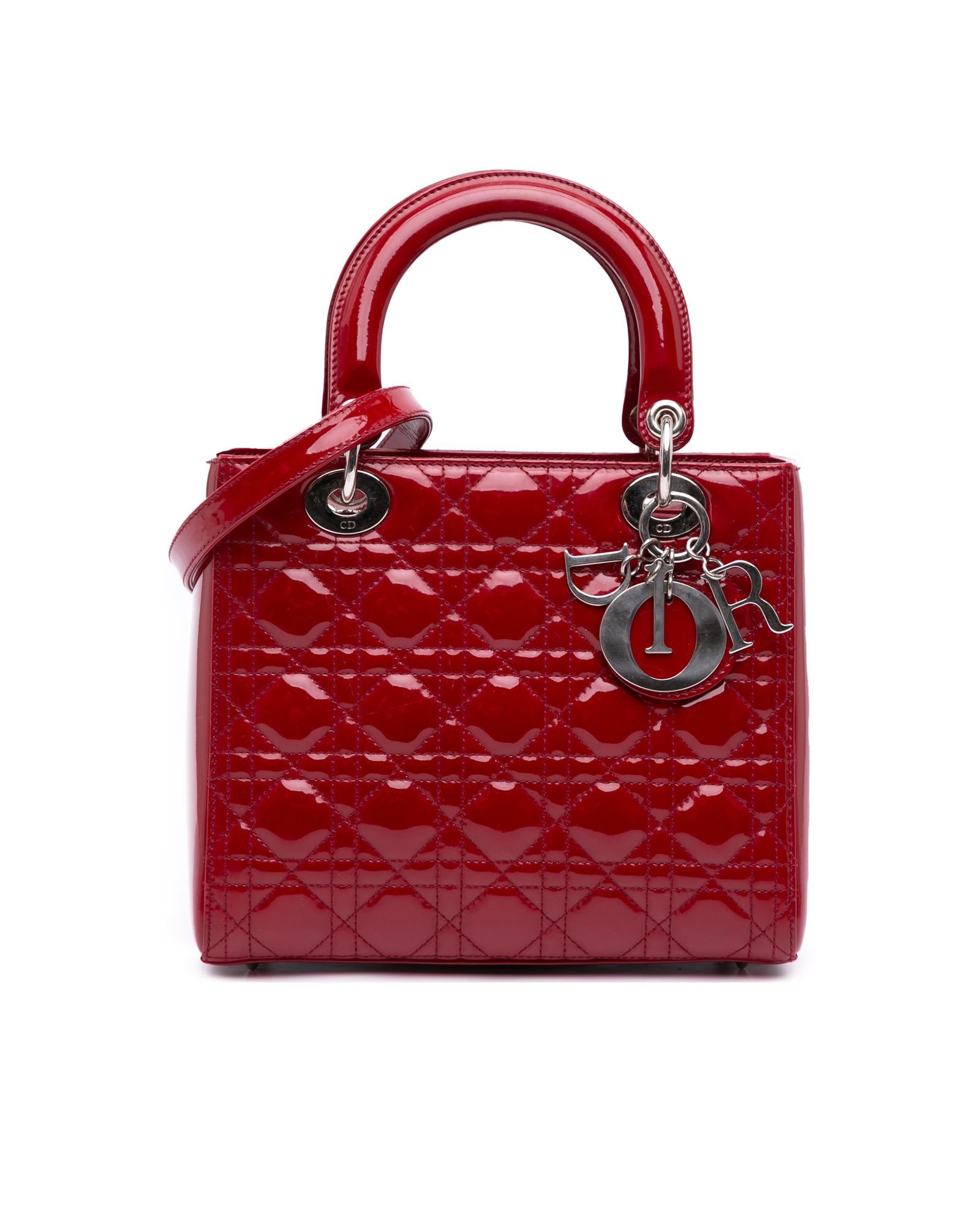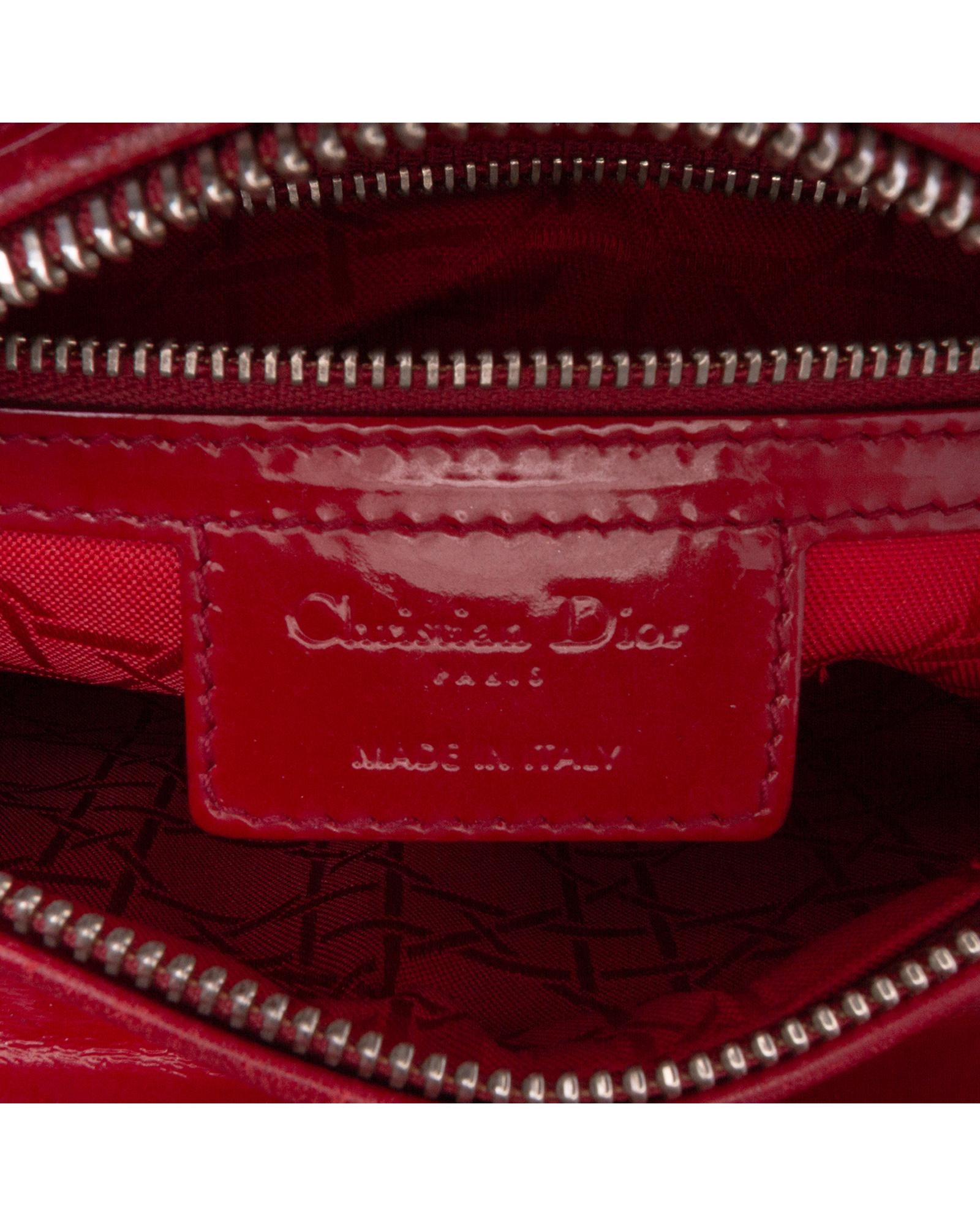 The Lady Dior features a quilted patent leather body flat leather top handles a detachable flat leather strap a top zip closure and an interior zip pocket.Brand: Dior