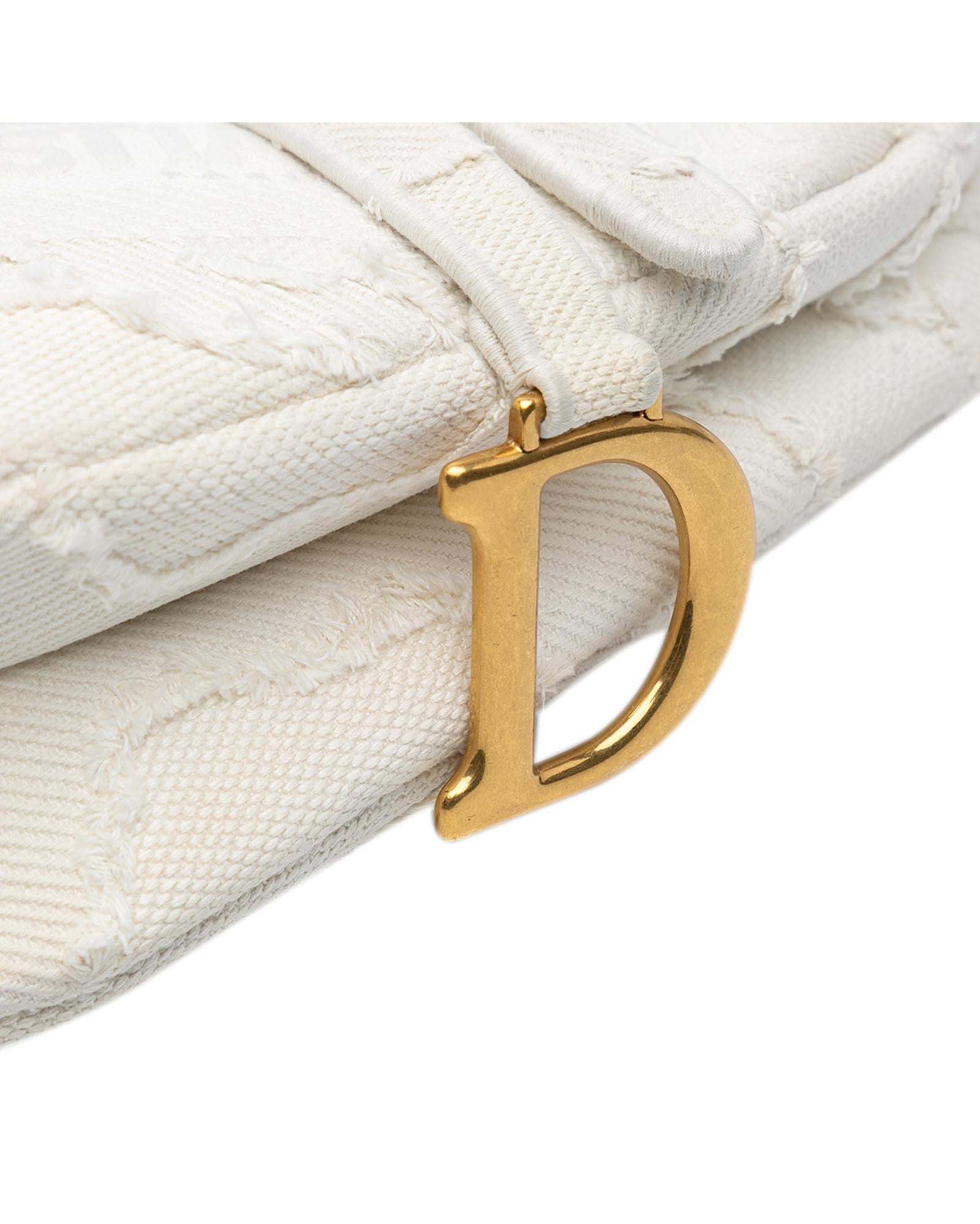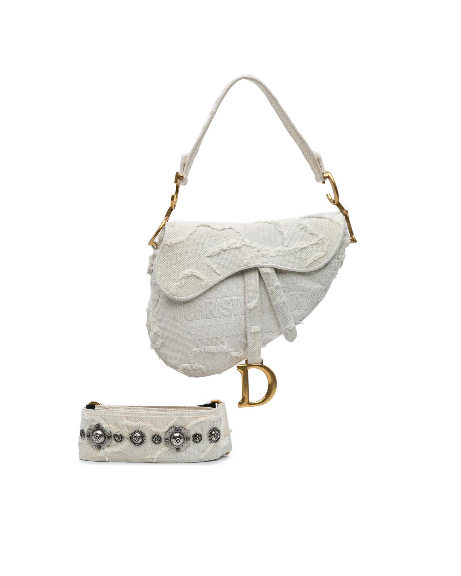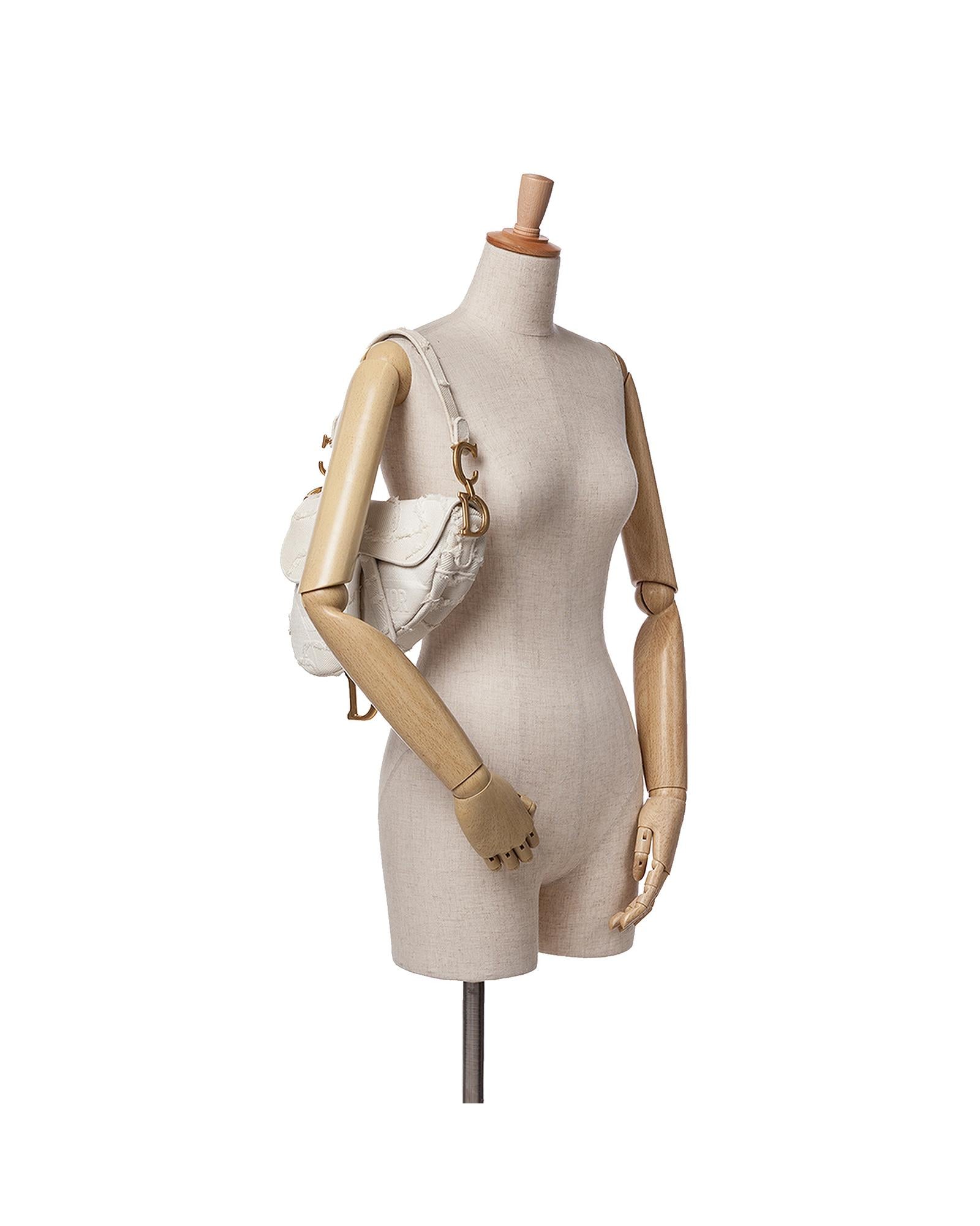 This Saddle features an embroidered canvas body a flat leather shoulder strap a detachable strap a flap closure and an exterior back slip pocket.Brand: Dior