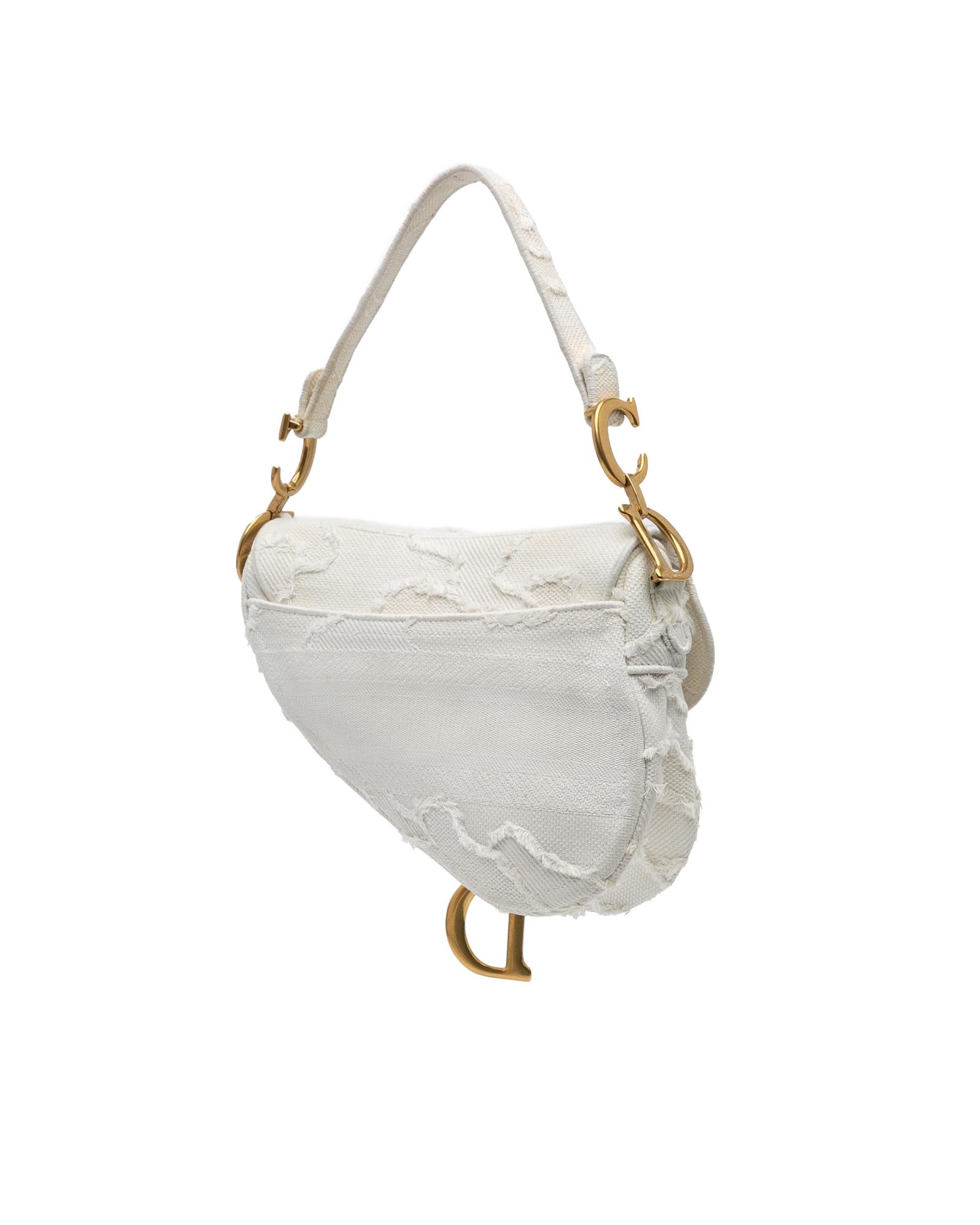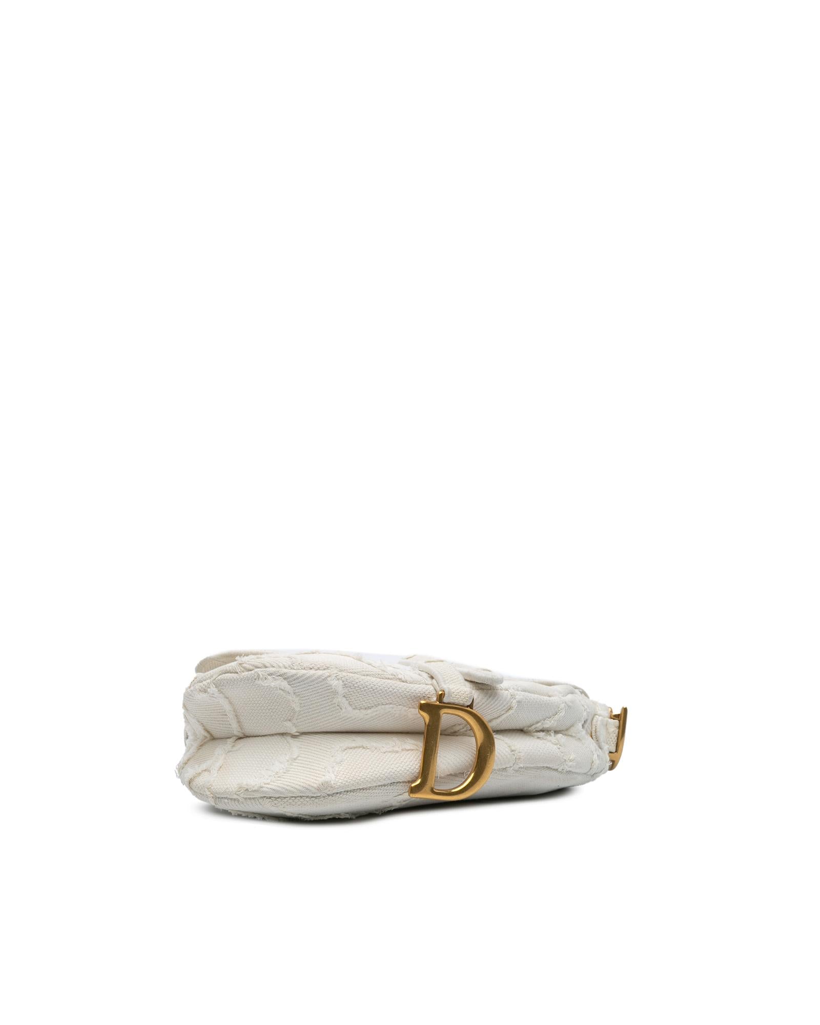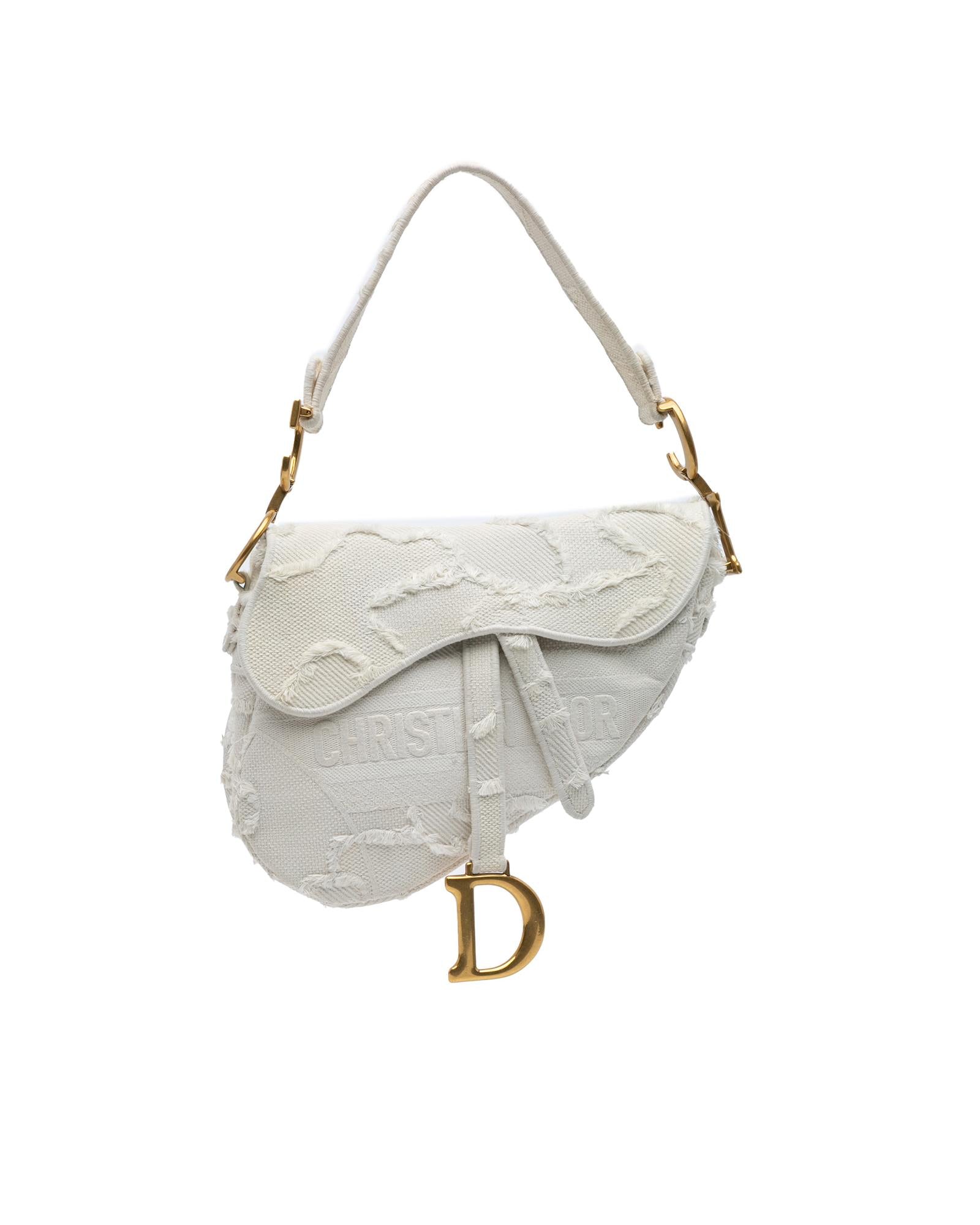 This Saddle features an embroidered canvas body a flat leather shoulder strap a detachable strap a flap closure and an exterior back slip pocket.Brand: Dior