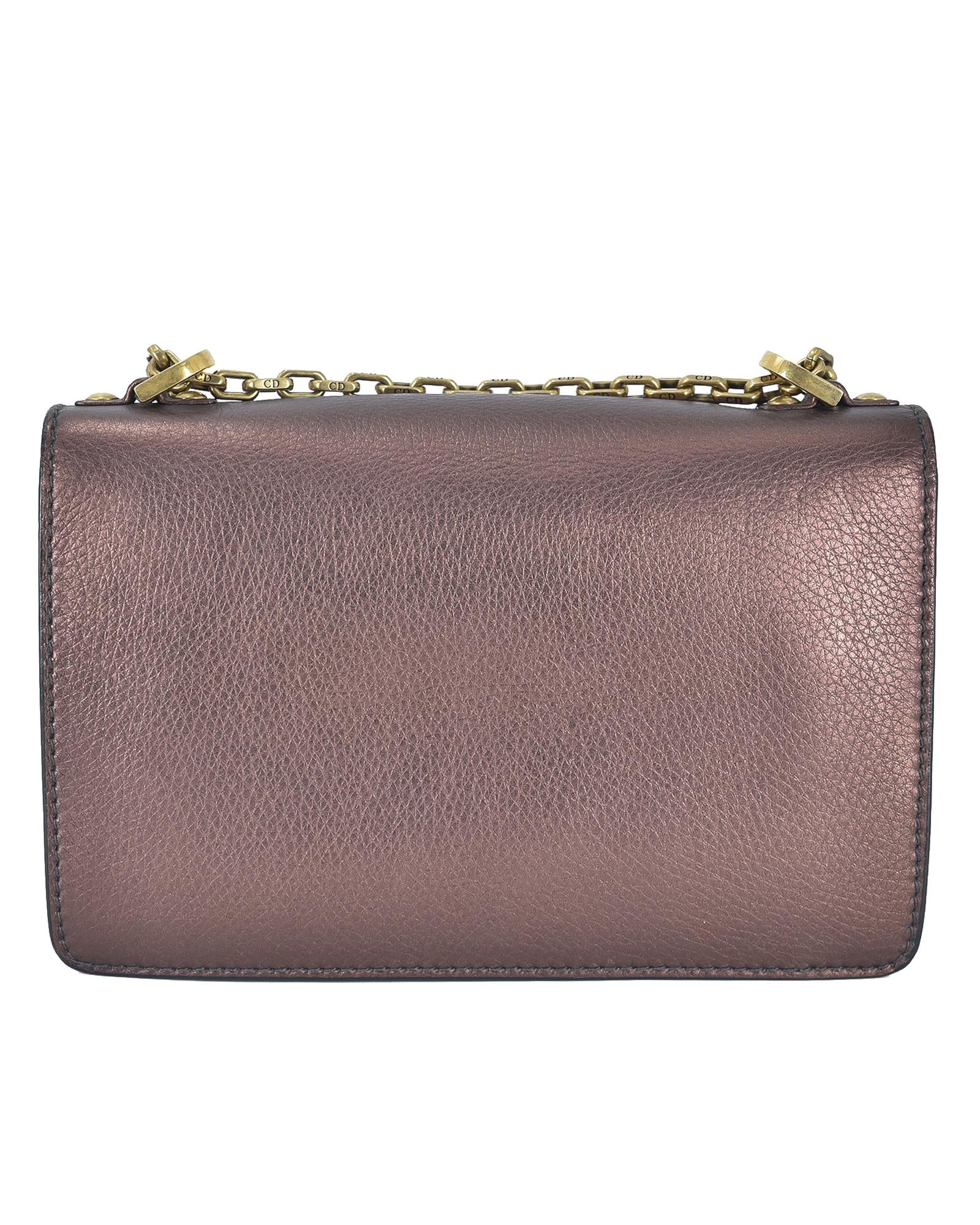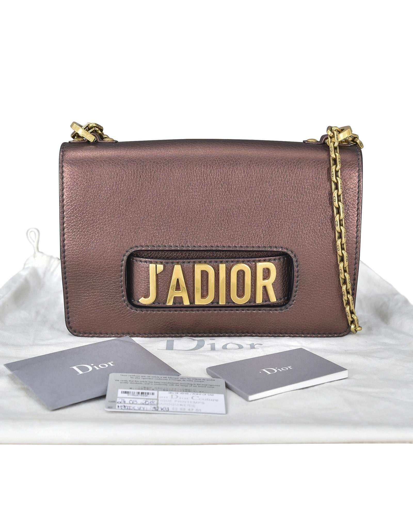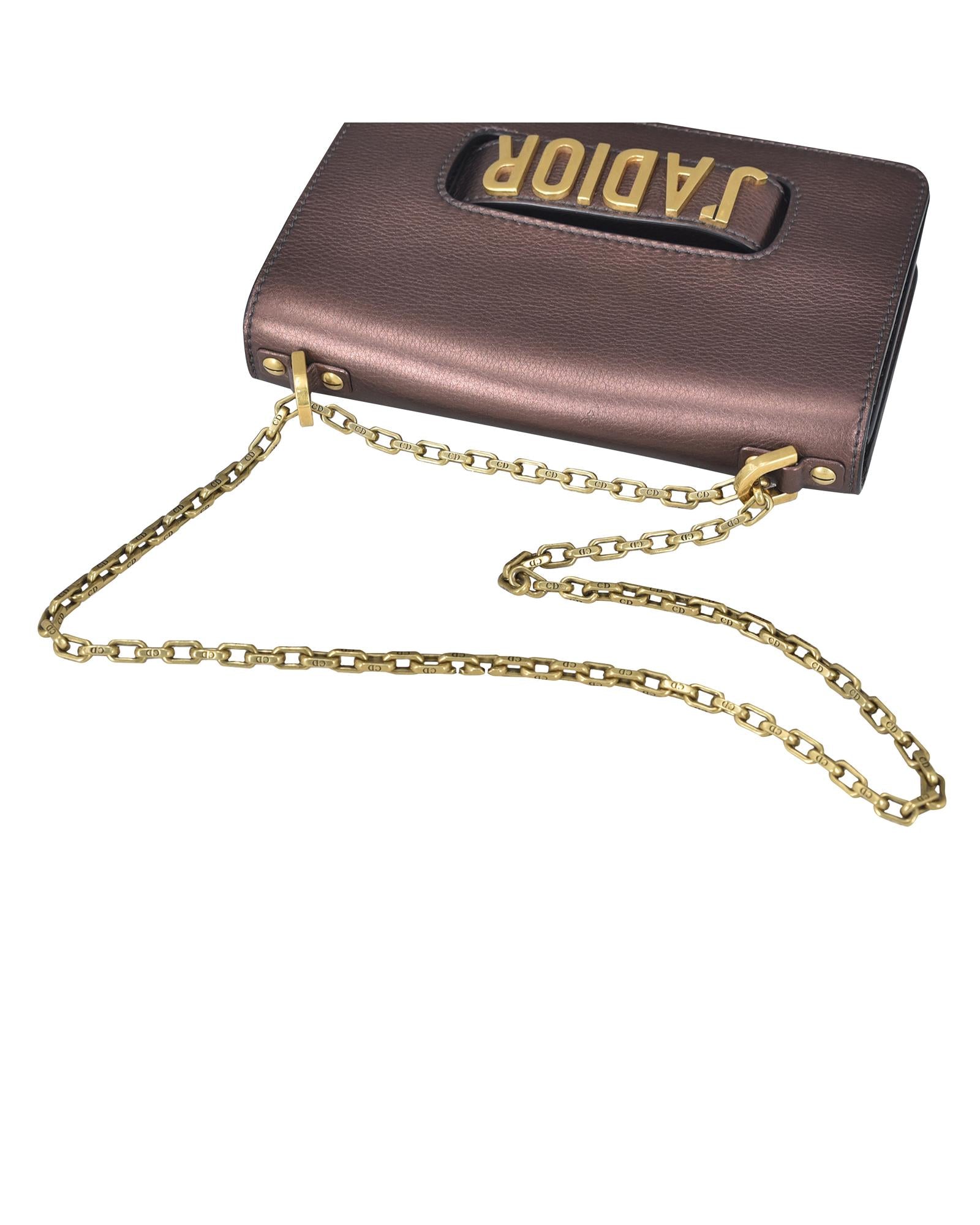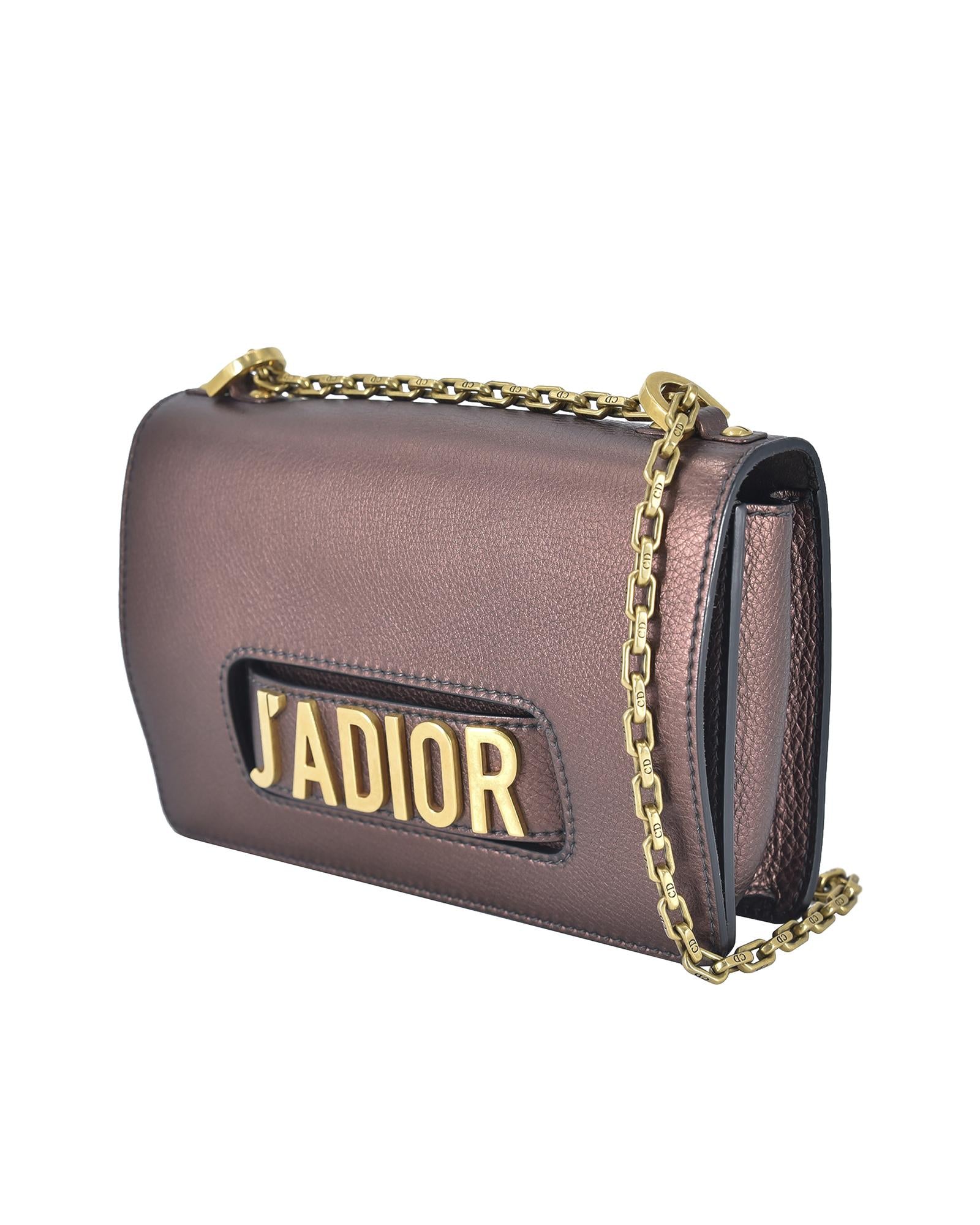 The J'Adior Chain Flap features a metallic leather body a chain strap a front flap closure an interior slip pocket and interior card slots.Brand: Dior