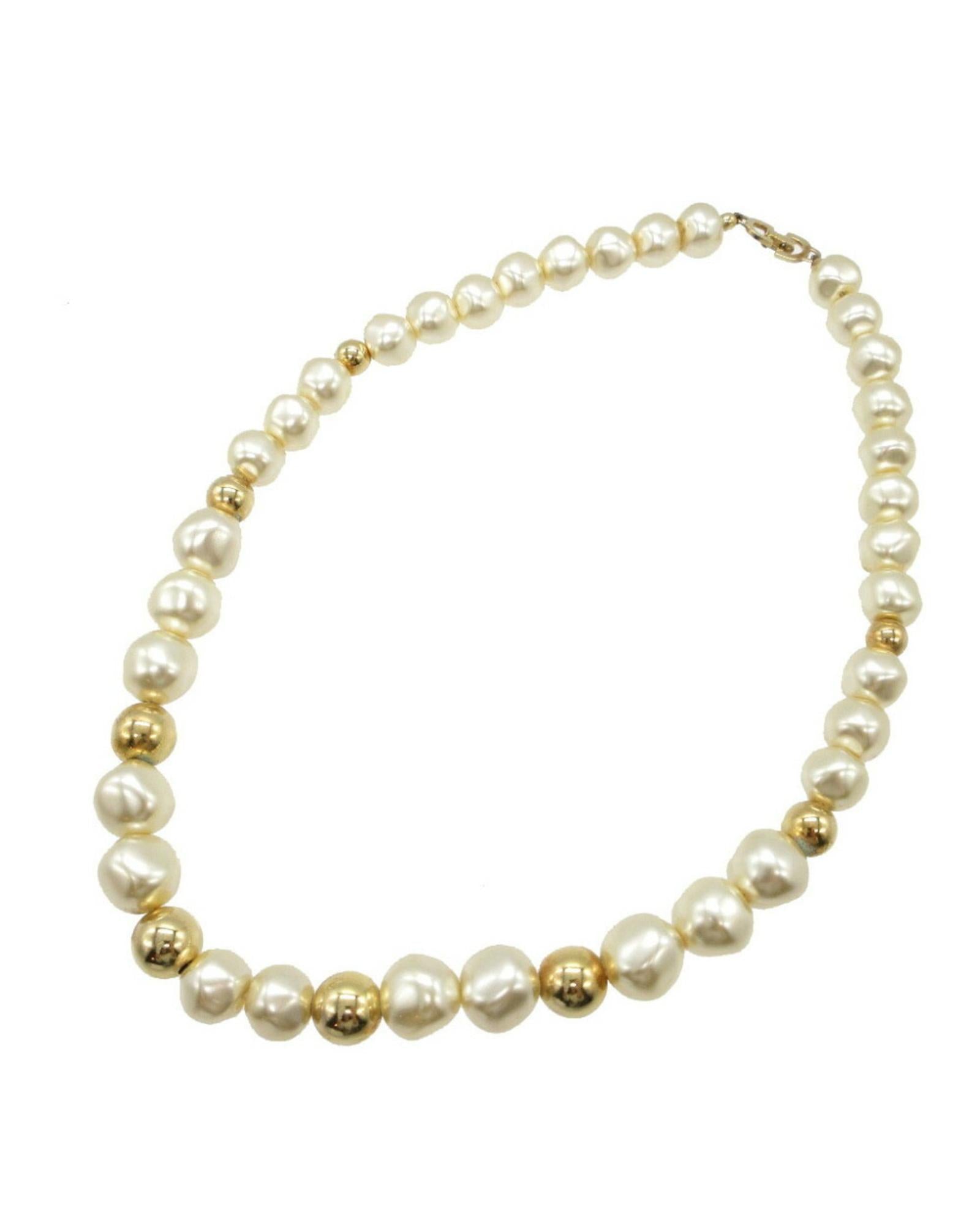 The Christian Dior brand necklace designed for women features a metallic finish in shades of gold and white.