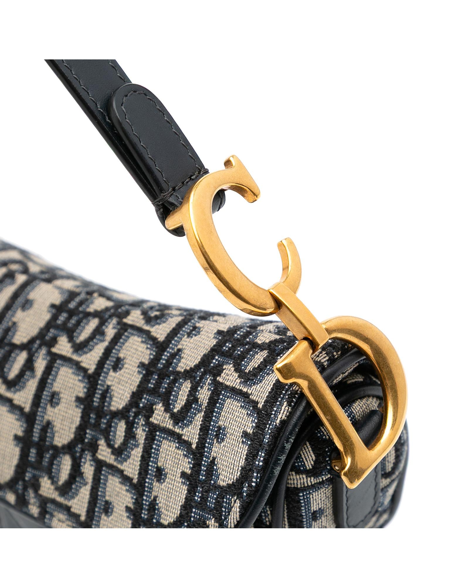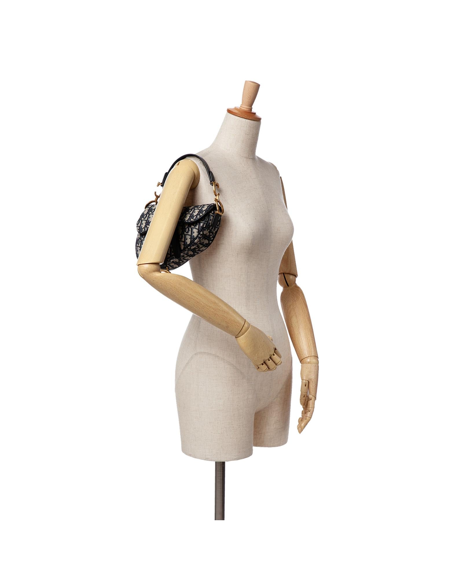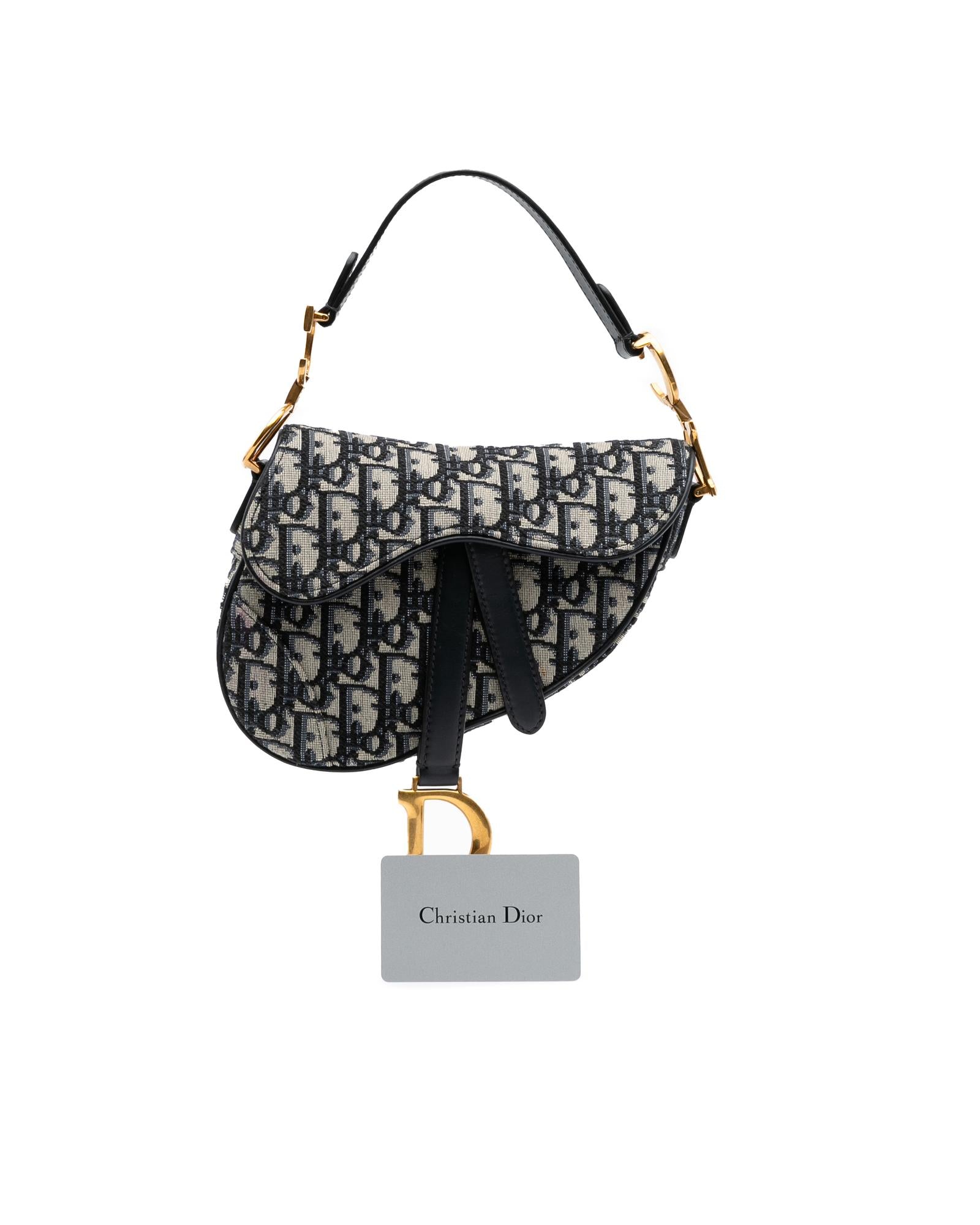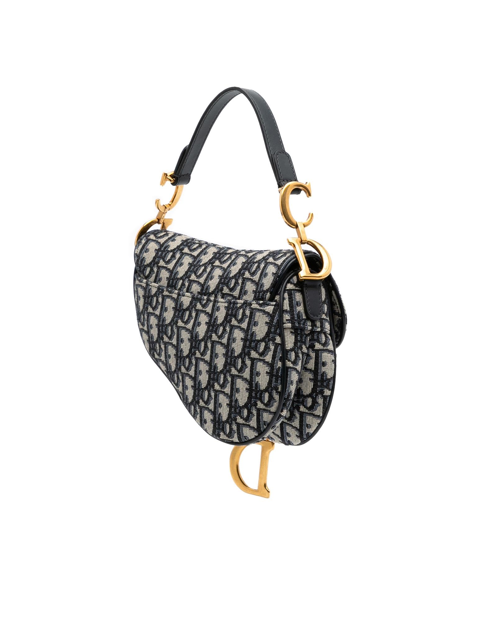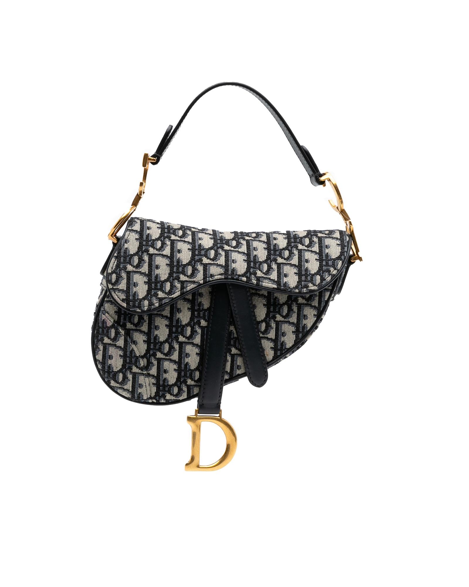 The Saddle features a canvas body a flat leather handle and a front flap.