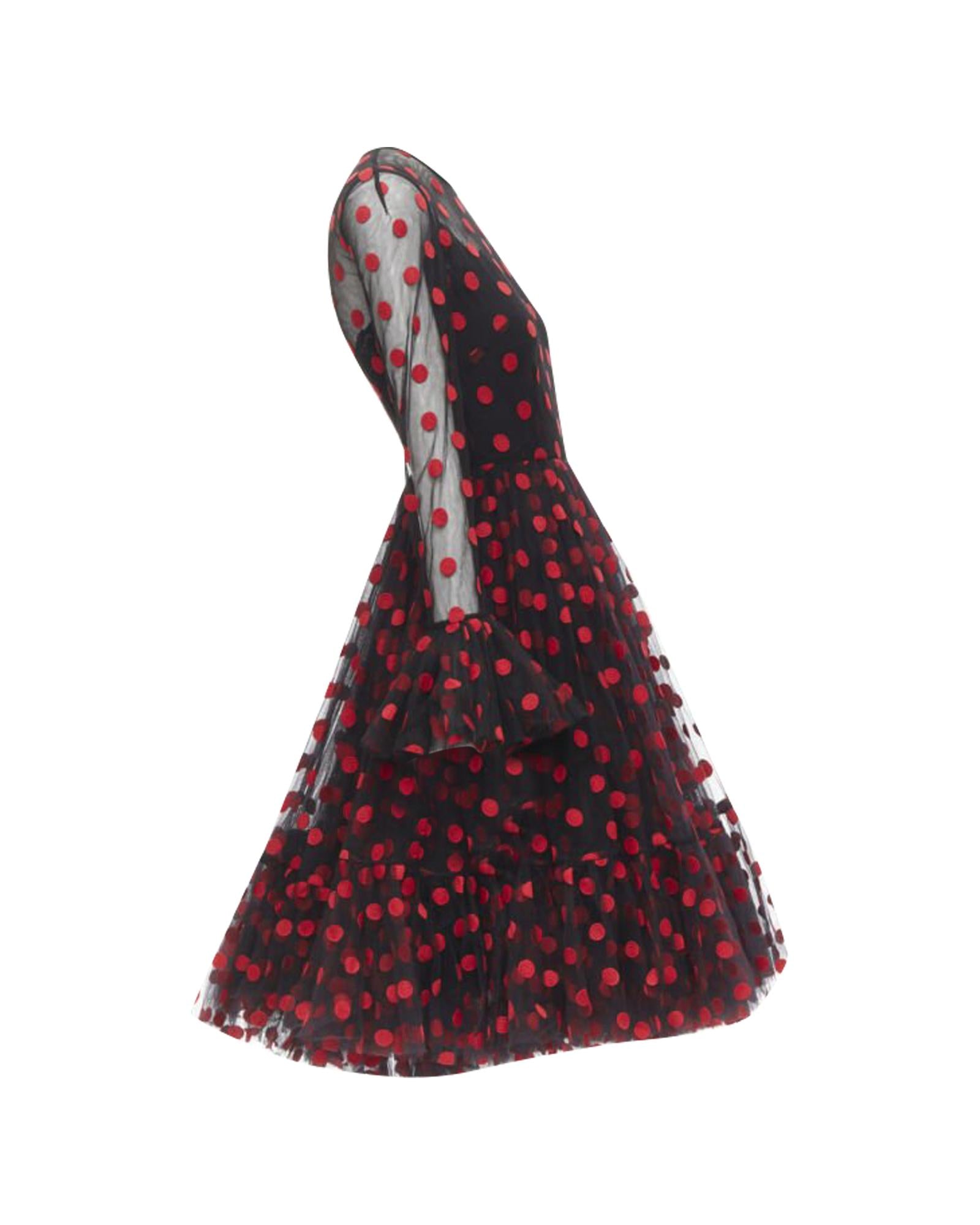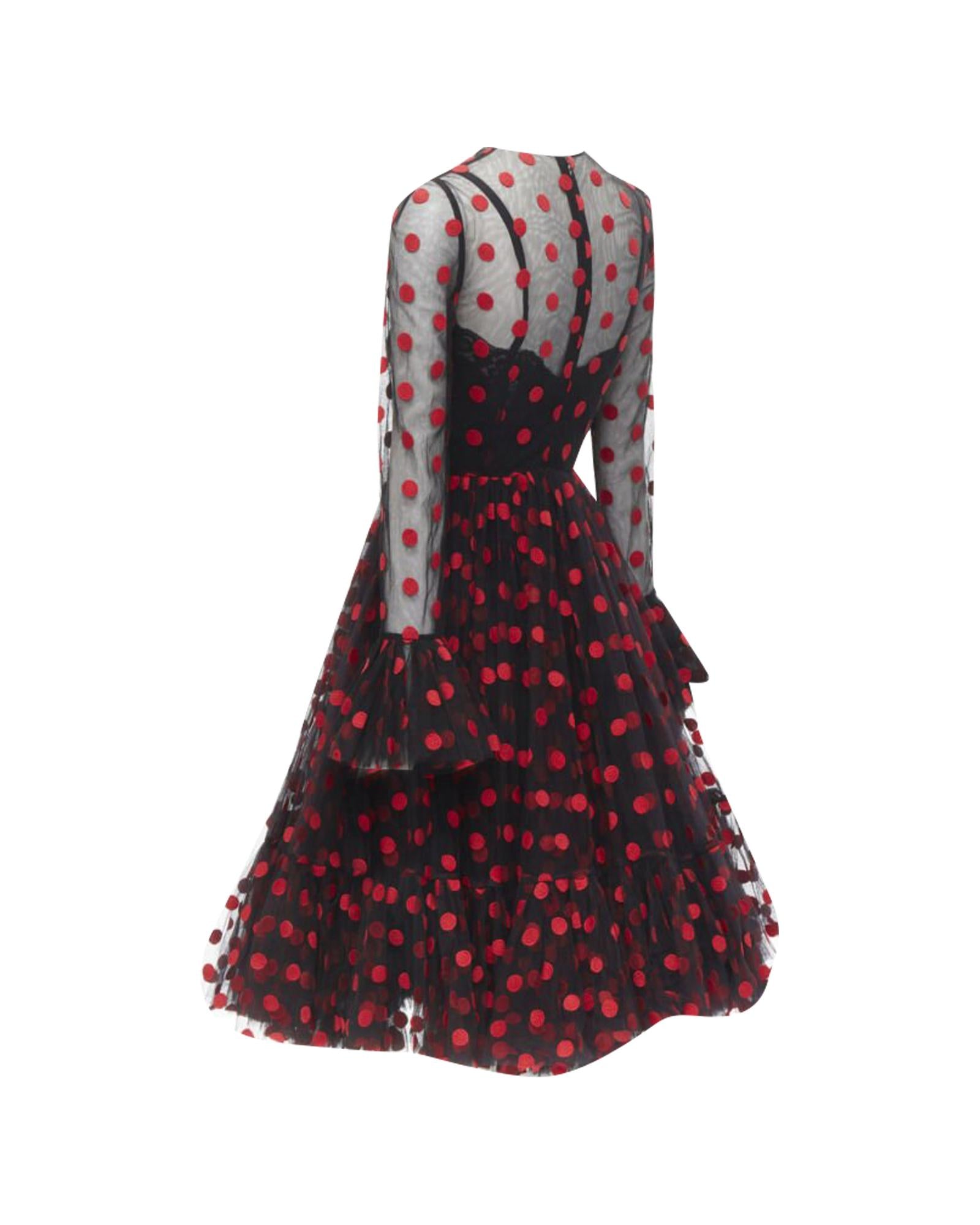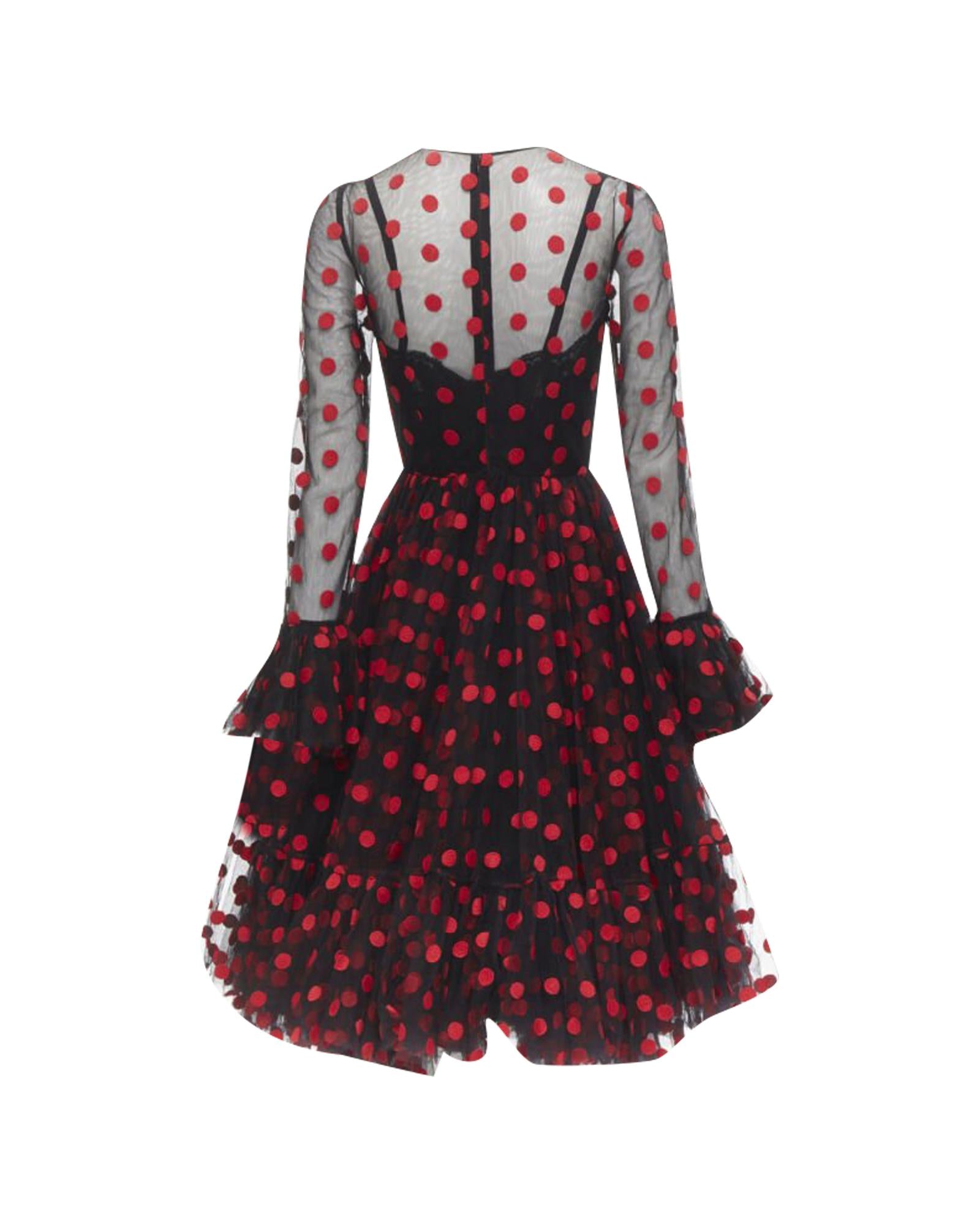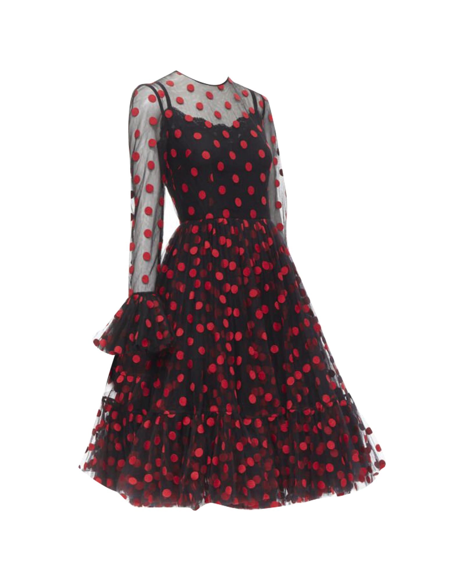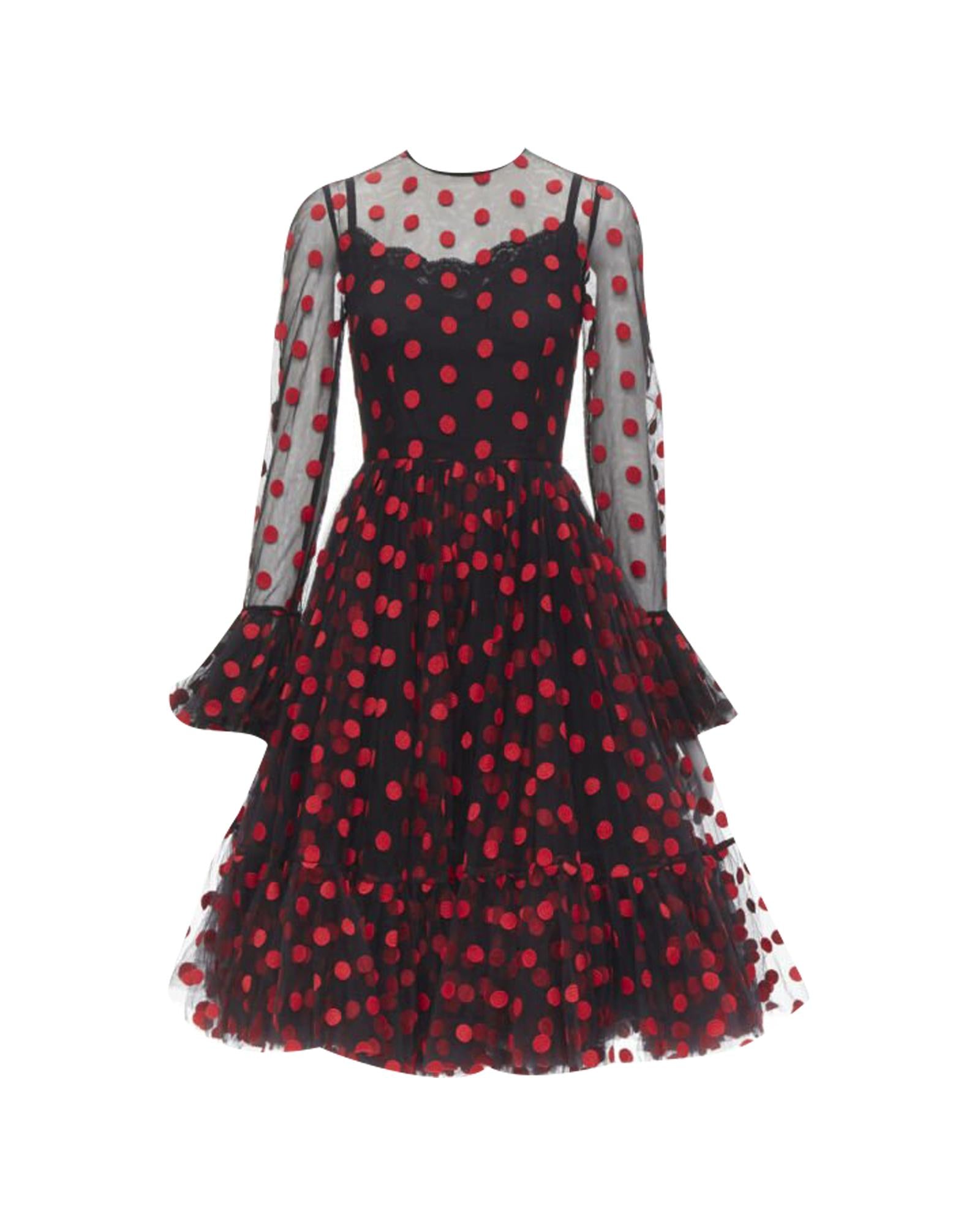 Pre-owned Polka Dot Mesh Dress with Long Sleeves