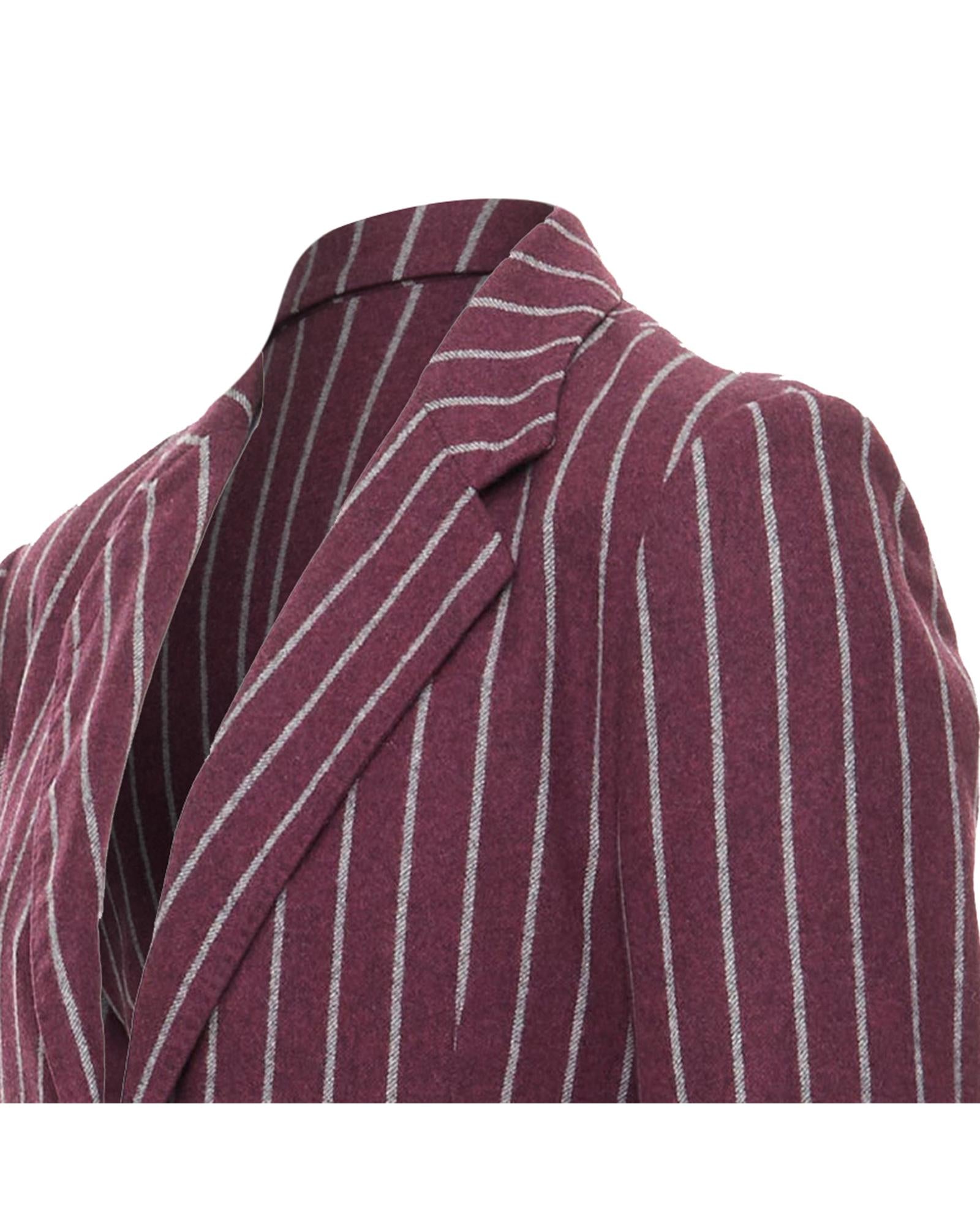 Pre-owned Striped Blazer Jacket with Notch Lapel and Two-Button Closure